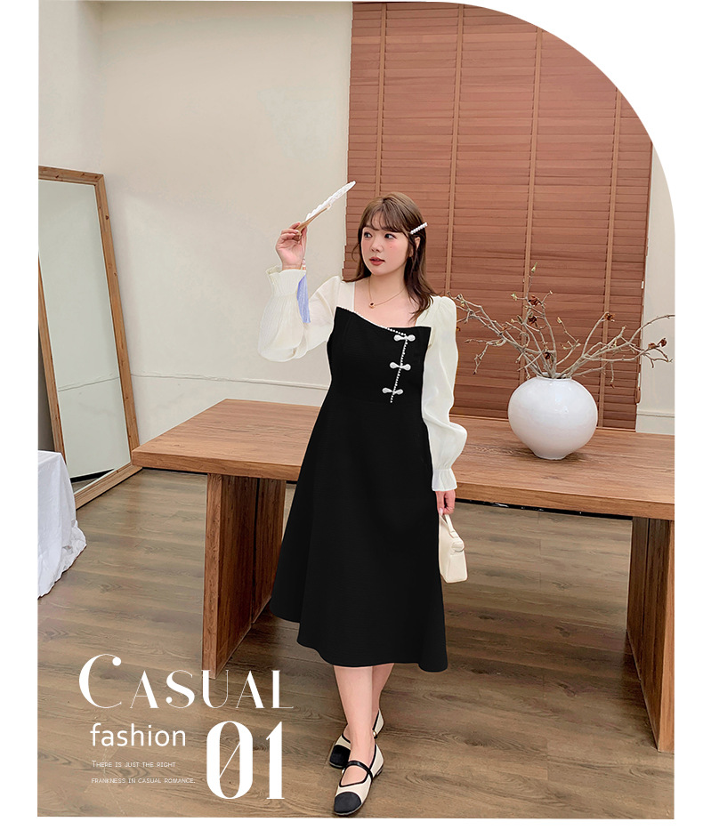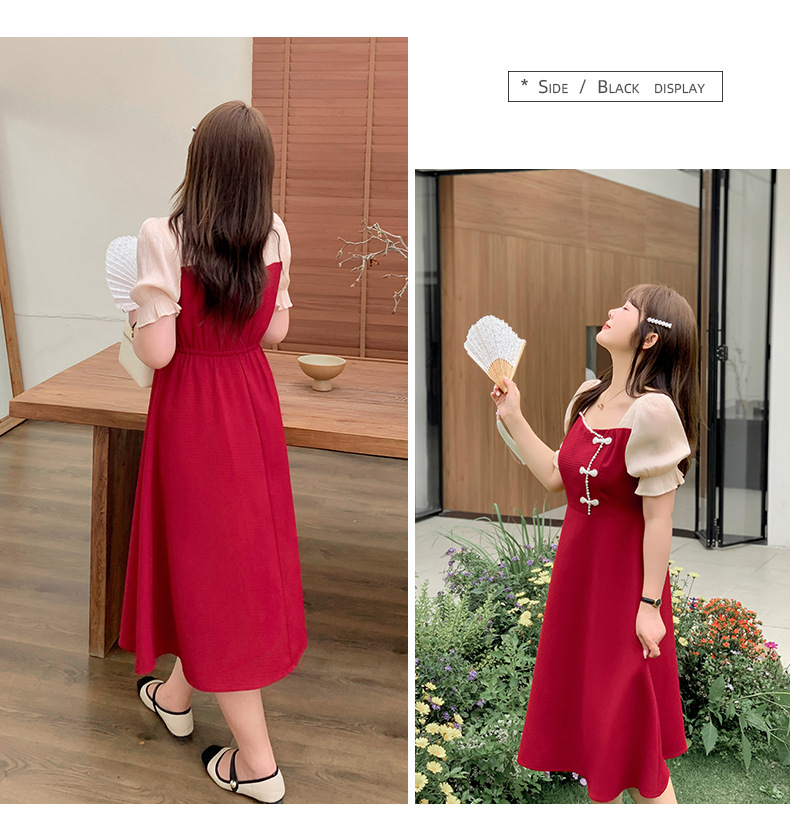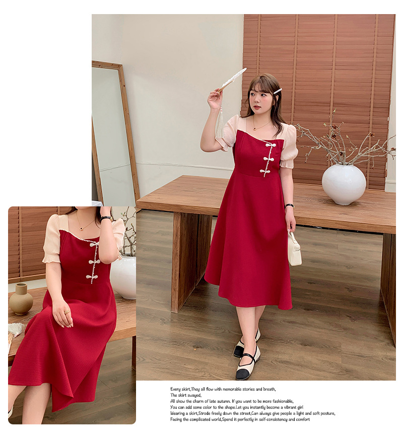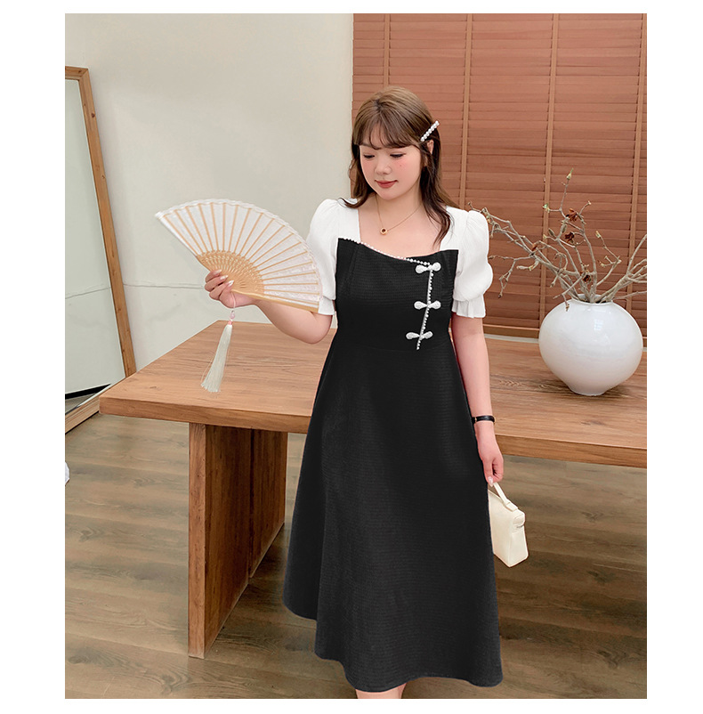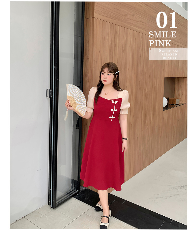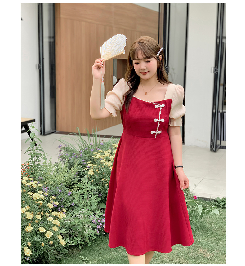 大きいサイズ レディース フレンチスクエアネックパフスリーブワンピース(半袖/長袖) LL 3L 4L 5L