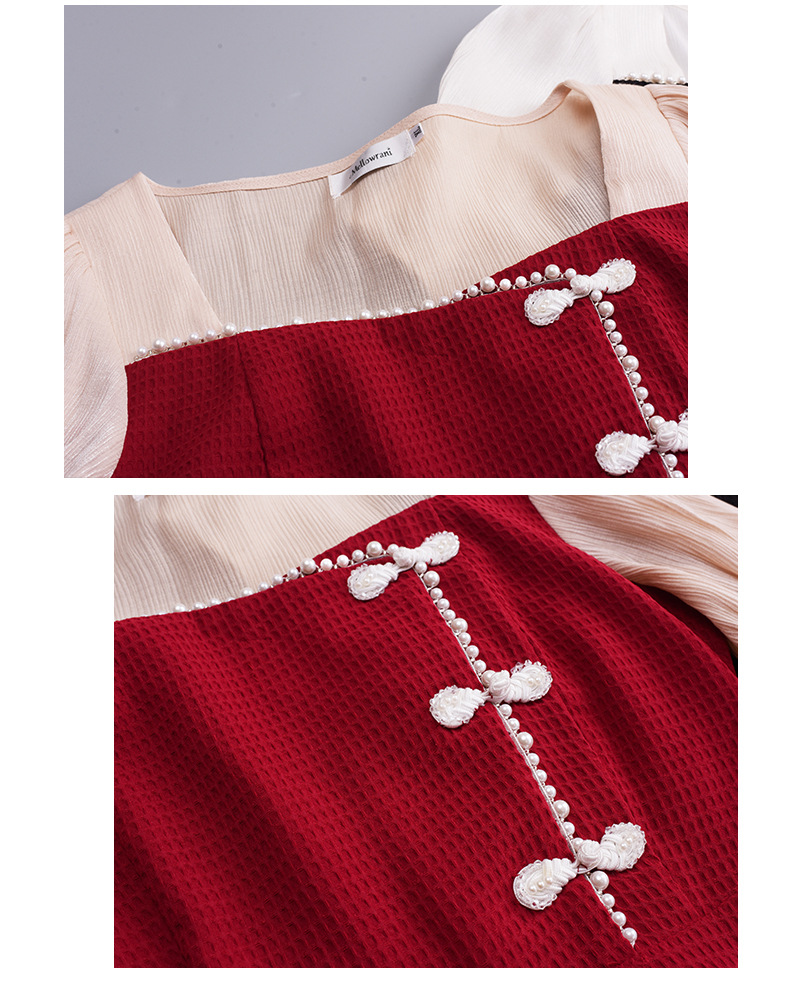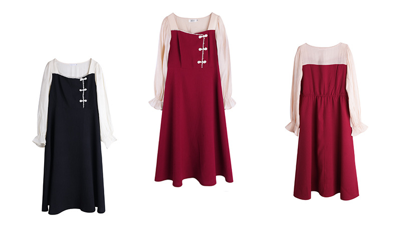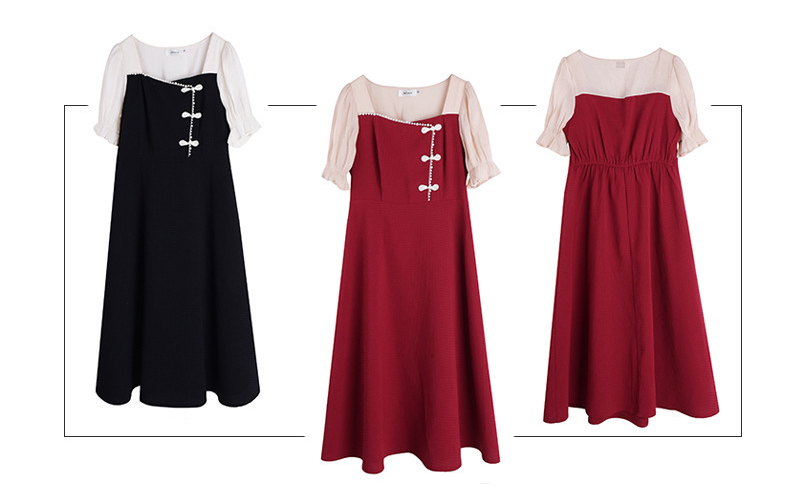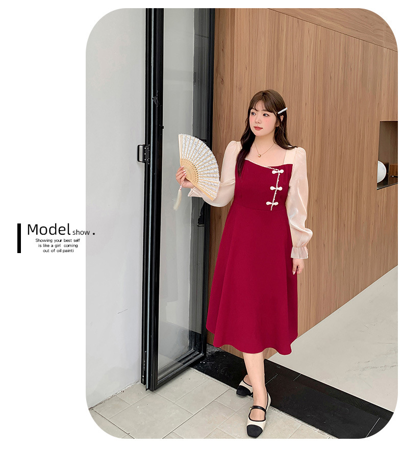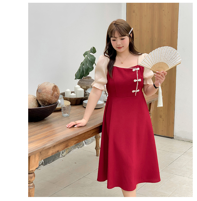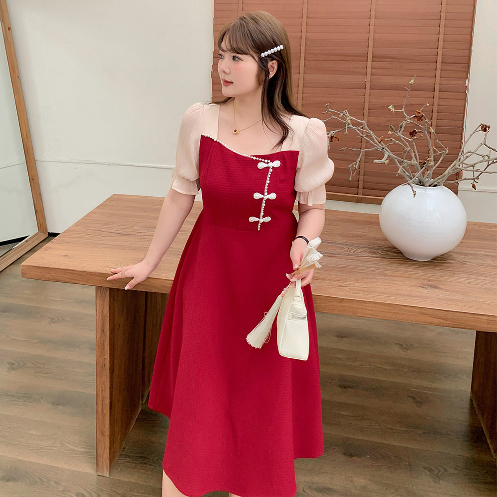 大きいサイズ レディース フレンチスクエアネックパフスリーブワンピース(半袖/長袖) LL 3L 4L 5L