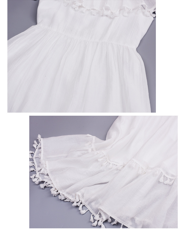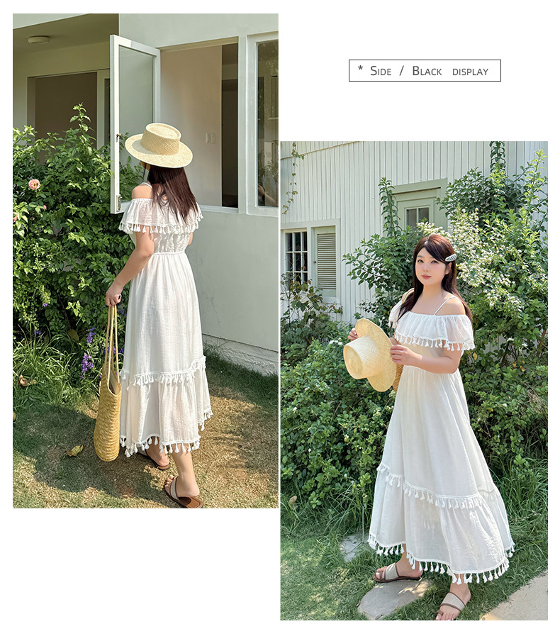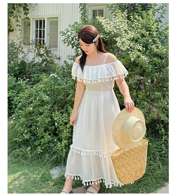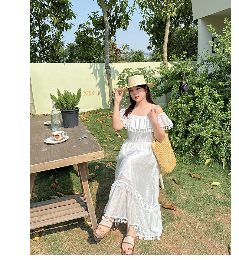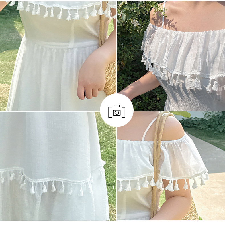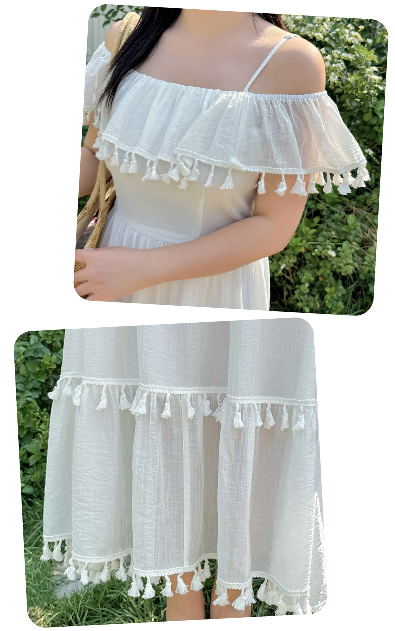 夏らしい2Wayロングウエストサスペンダーワンピース。肩を下ろしたり、上げたりいろいろな着こなしを楽しめます。テンセルのストリップ生地は、滑らかで通気性があり、縦プリーツの質感で上半身は涼しく、ドレープ性も優れています。ショルダーストラップは長さを調節でき、伸縮性のあるバックウエストで裏地付きの快適な着心地です。タッセルリボンのフリルで、ゆったりとしたエレガントなホリデービーチ気分のワンピースをぜひお試しください。