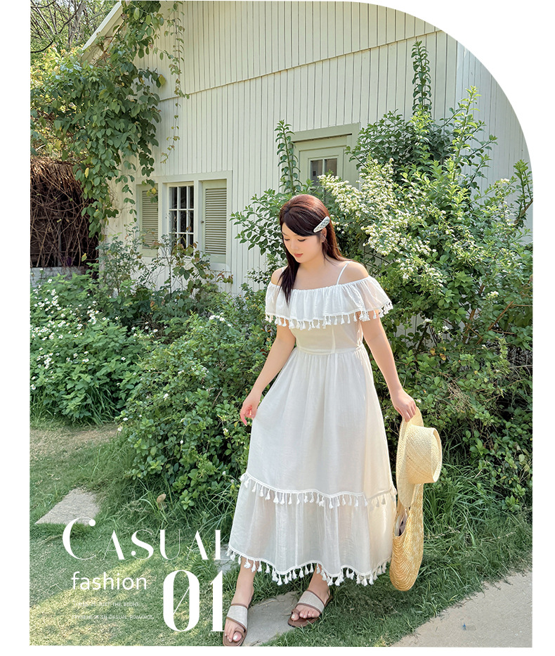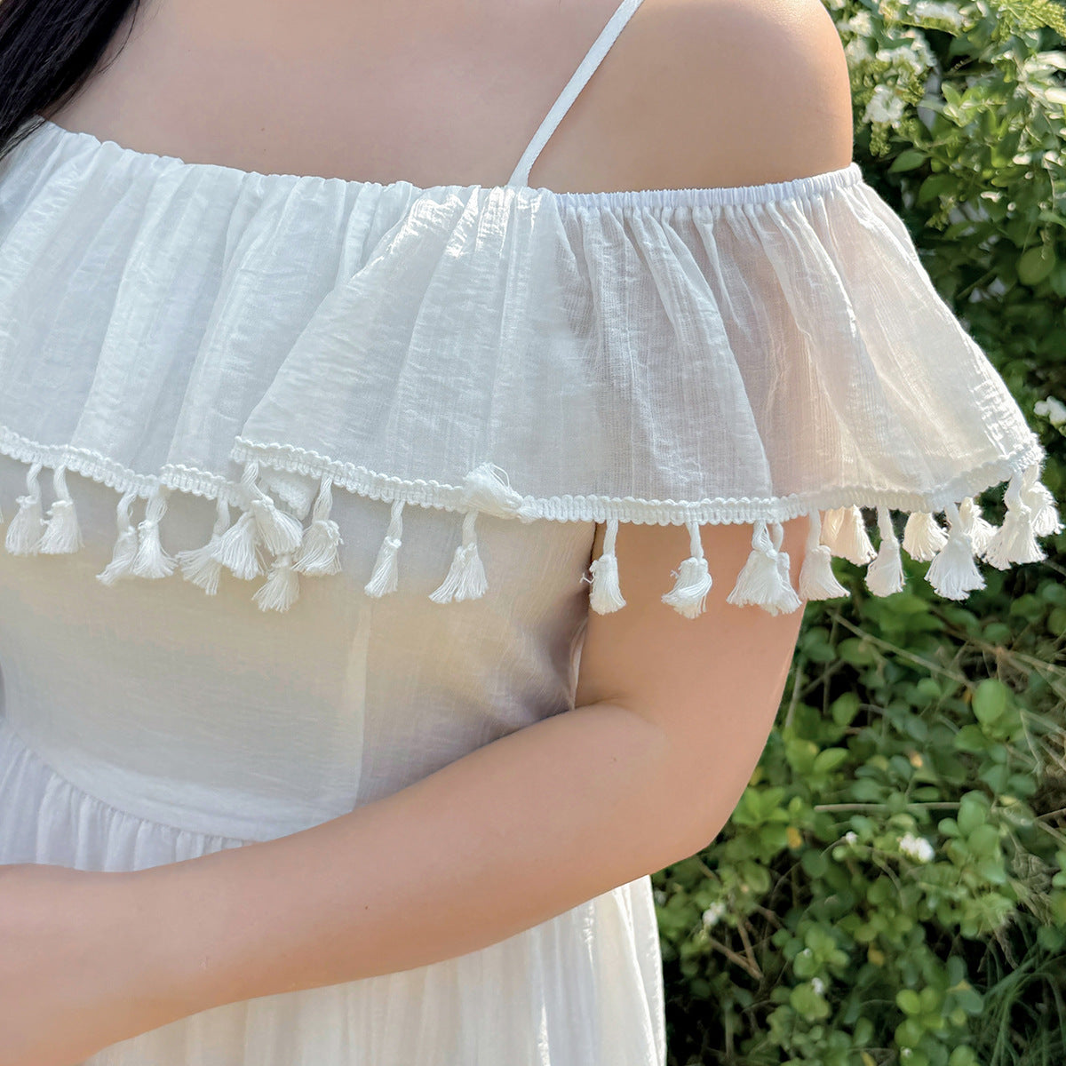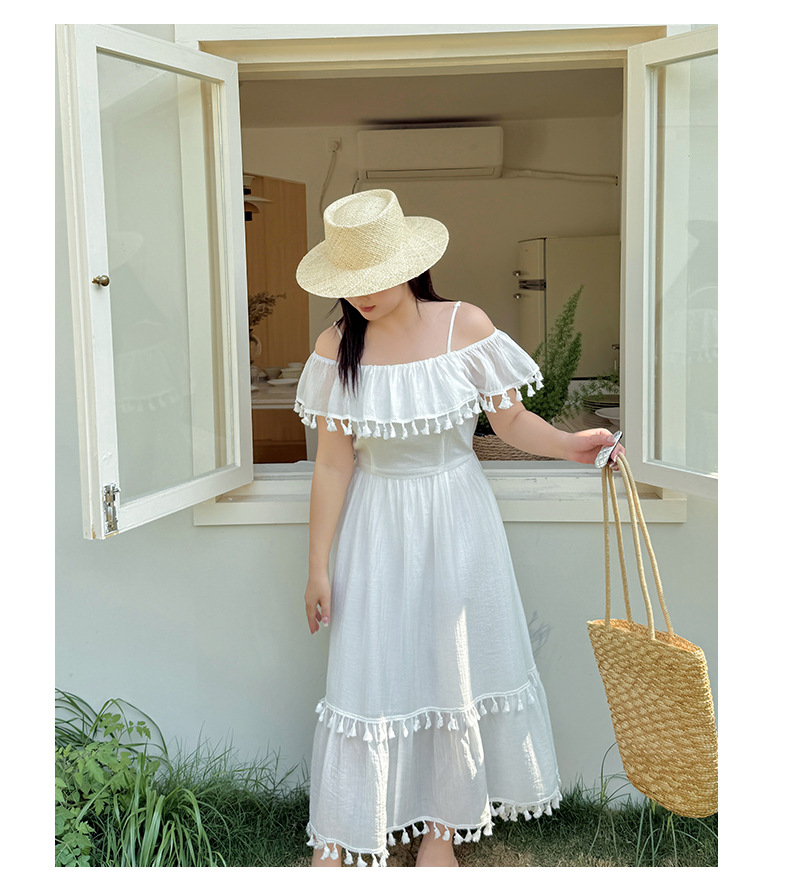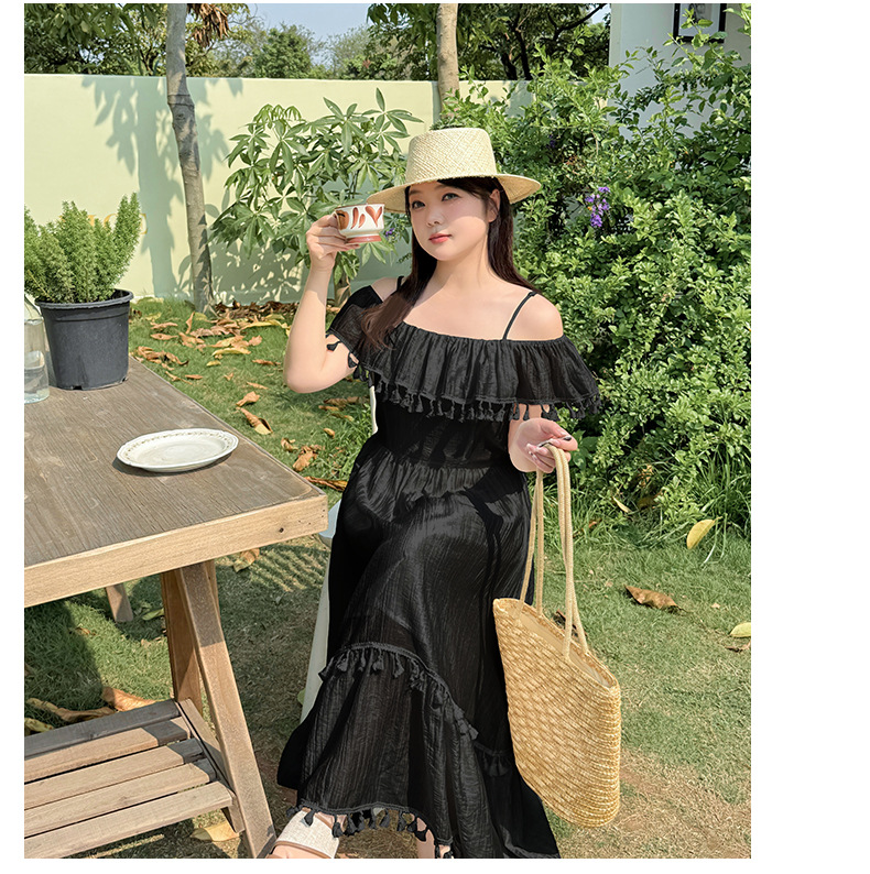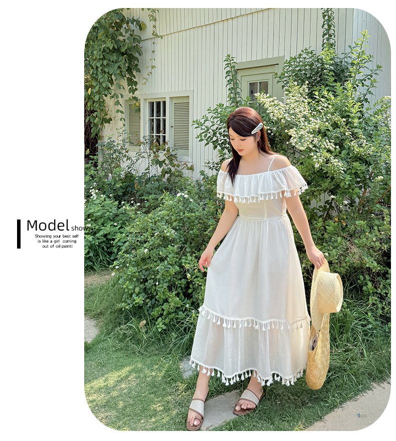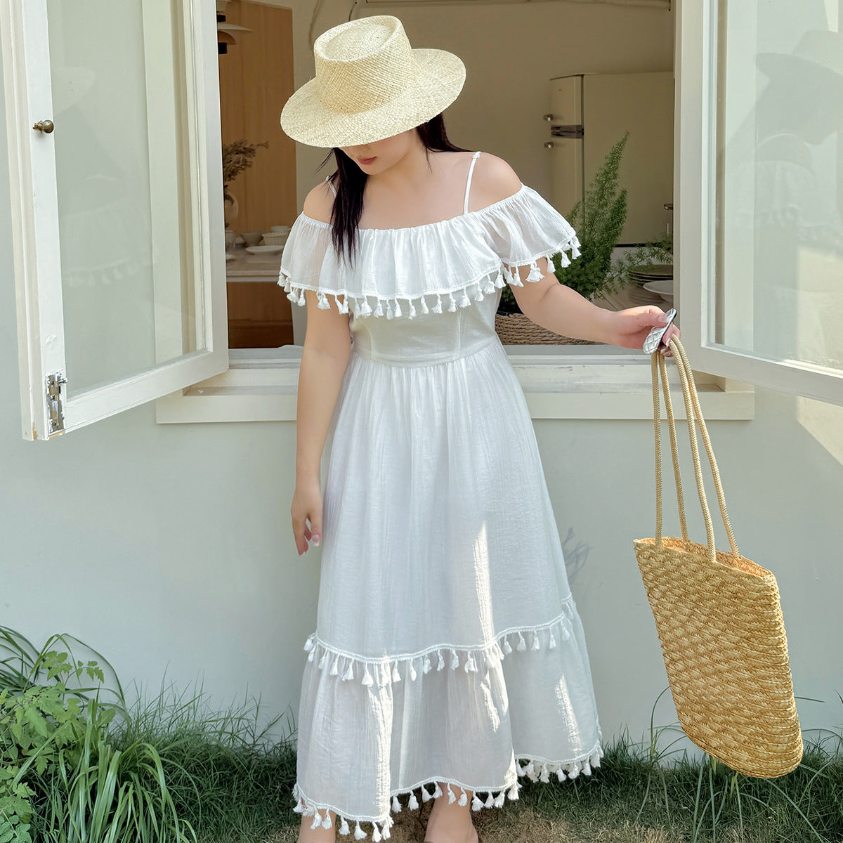 夏らしい2Wayロングウエストサスペンダーワンピース。肩を下ろしたり、上げたりいろいろな着こなしを楽しめます。テンセルのストリップ生地は、滑らかで通気性があり、縦プリーツの質感で上半身は涼しく、ドレープ性も優れています。ショルダーストラップは長さを調節でき、伸縮性のあるバックウエストで裏地付きの快適な着心地です。タッセルリボンのフリルで、ゆったりとしたエレガントなホリデービーチ気分のワンピースをぜひお試しください。
