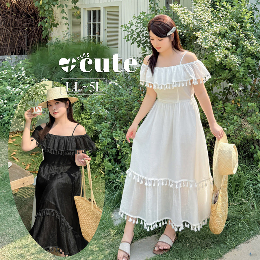 大きいサイズ レディース タッセルリボンフリル2Wayサスペンダーワンピース LL 3L 4L 5L
