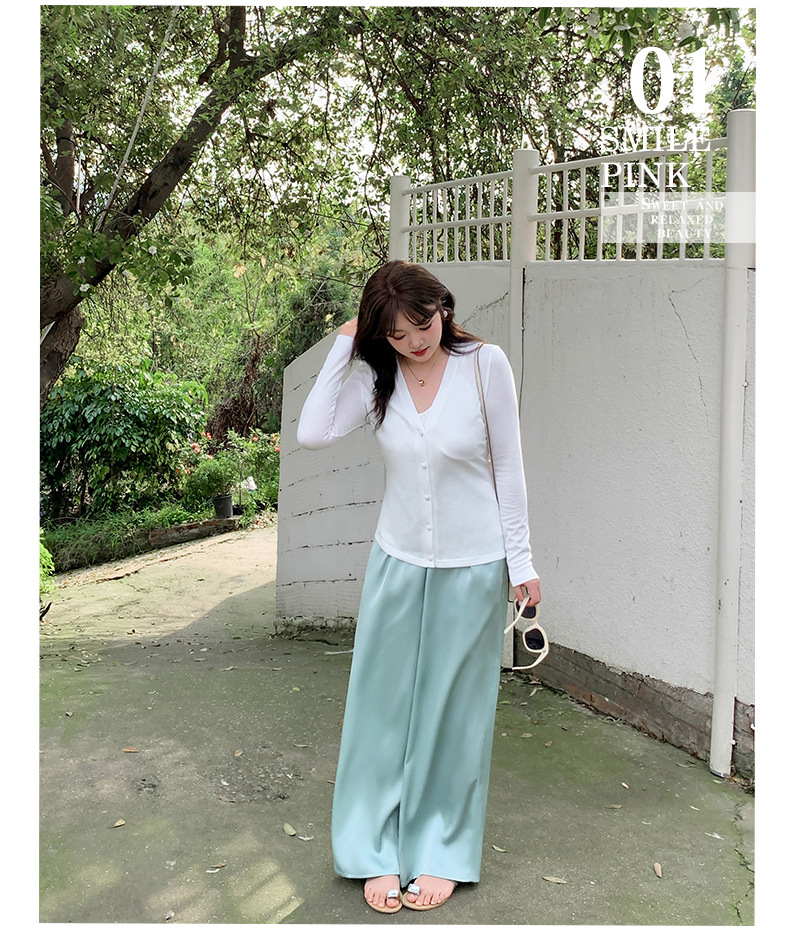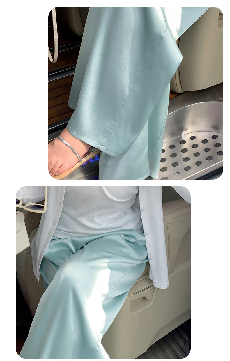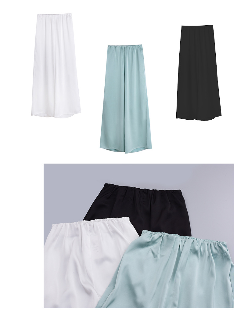 ワイドクールロングパンツの素材は、軽くて上品でドレープ感がある涼しい肌触りです。レングスは長めで、ウエストはゴムで伸縮性があります☆シンプルなスタイルですが、モードな雰囲気を演出できるので、どんなトップスとも相性抜群!おしゃれ好きな方必見のマストバイアイテムです♪