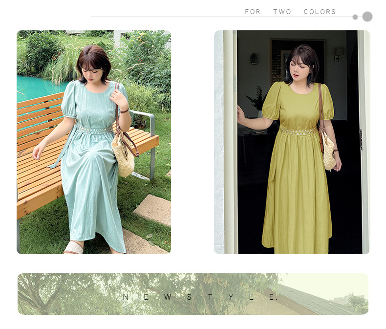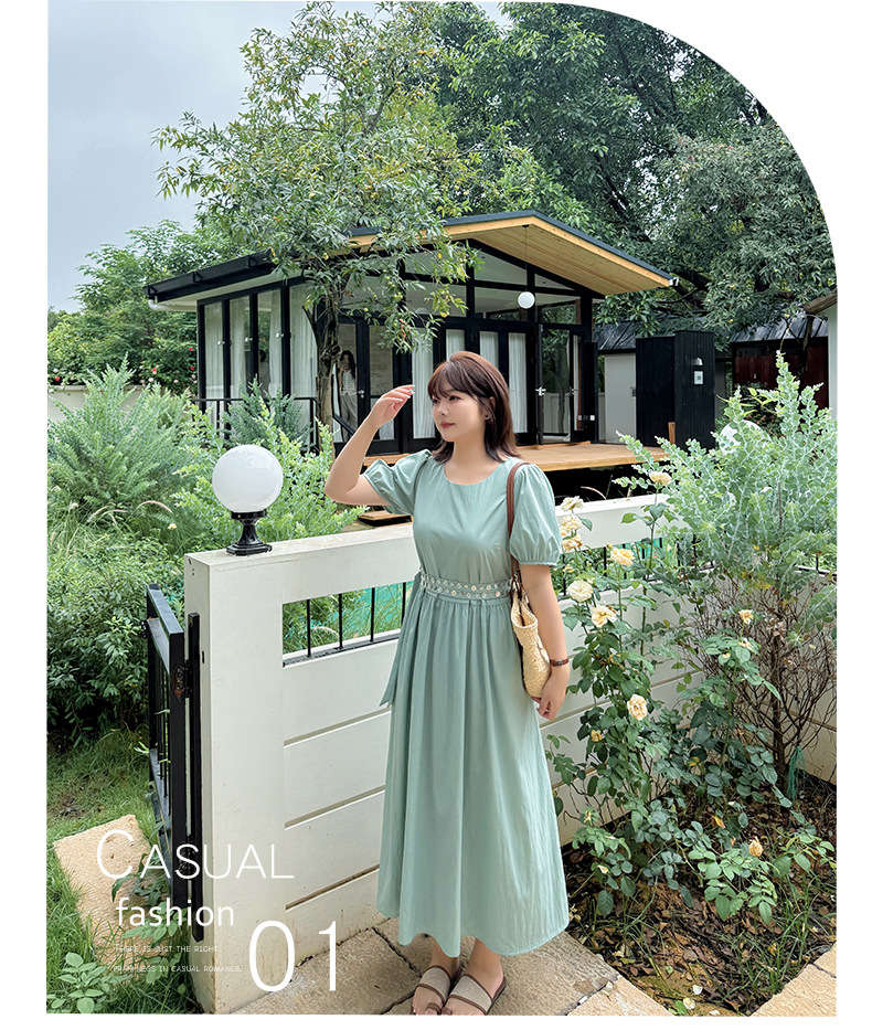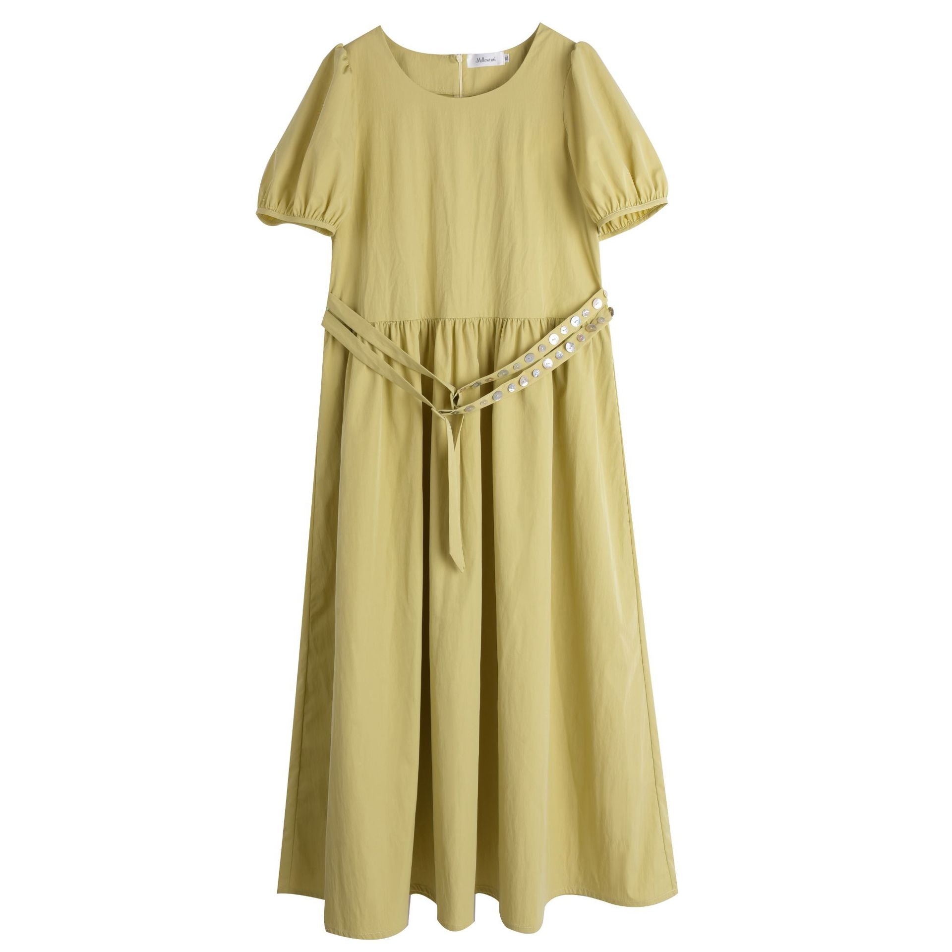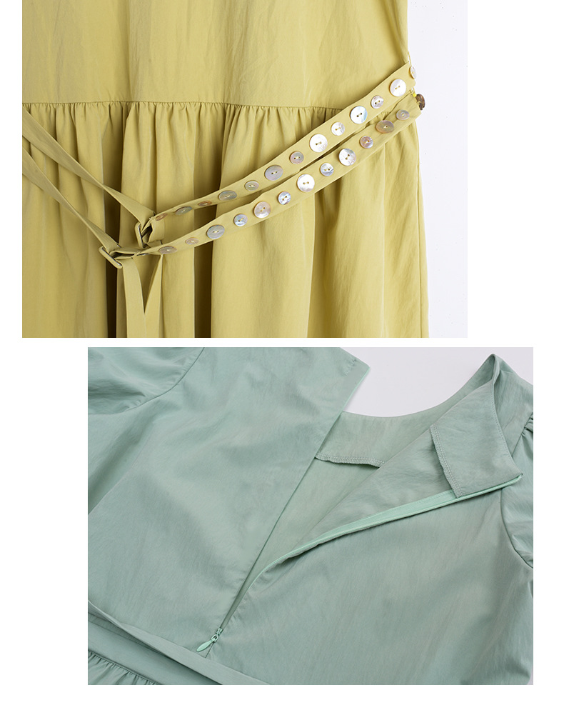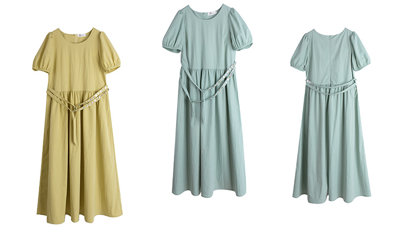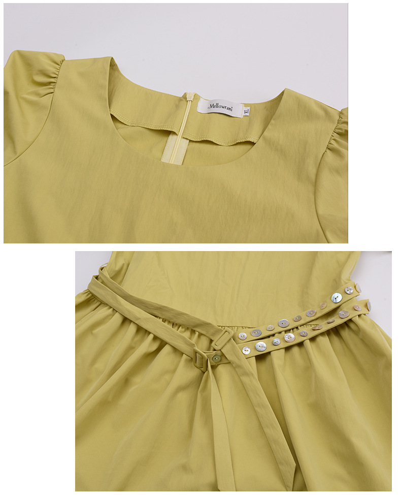 ゆったりとしたラウンドネックのカジュアルワンピースのハイライトは、ウエストのダブルベルトデザインです。貝殻風の装飾バックルで飾られ、光沢感があり、それぞれの異なる質感がおしゃれです。レリクレープ生地の表面はわずかにしわがあり、パリッとしていて、爽やかで通気性に優れています。シンプルで小さなラウンドネック、パフスリーブ、ゆったりした快適な着心地です。ベルトにはサイズ調整用のバックルが付いています。後ろには隠しファスナーデザインがあり、着脱が簡単です。シンプルで大人おしゃれなゆったりワンピースを是非お試しください。