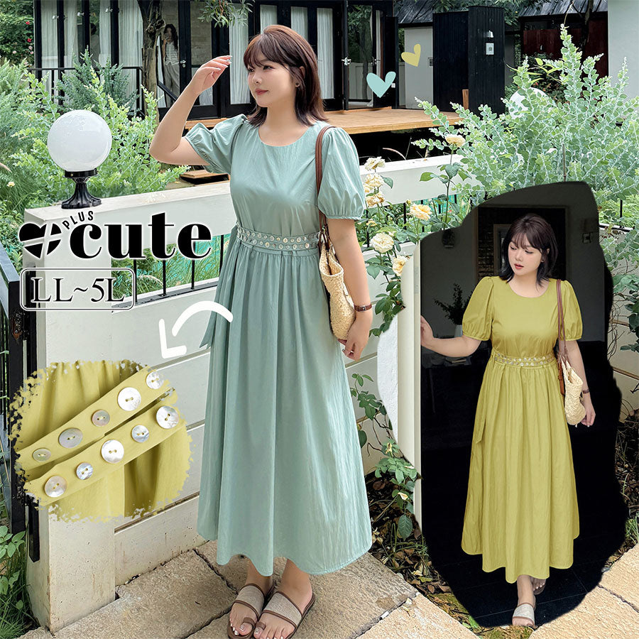 大きいサイズ レディース ラウンドネックダブルベルトカジュアルワンピース LL 3L 4L 5L