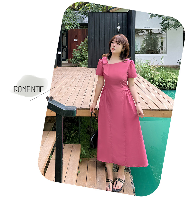 大きいサイズ レディース リボンアシンメトリーコットンワンピース LL 3L 4L 5L