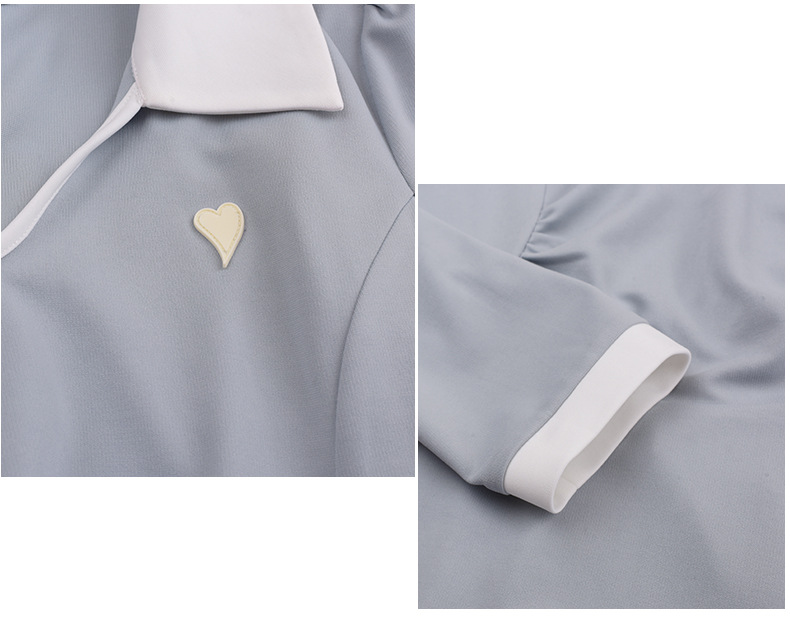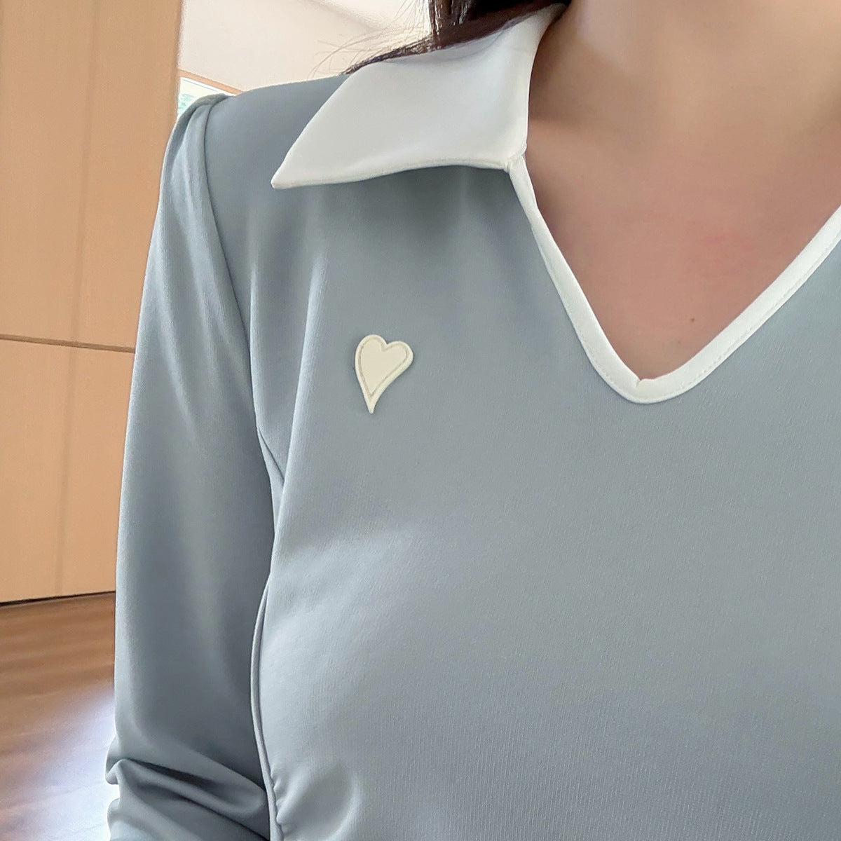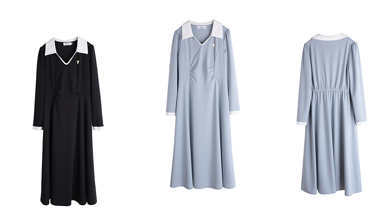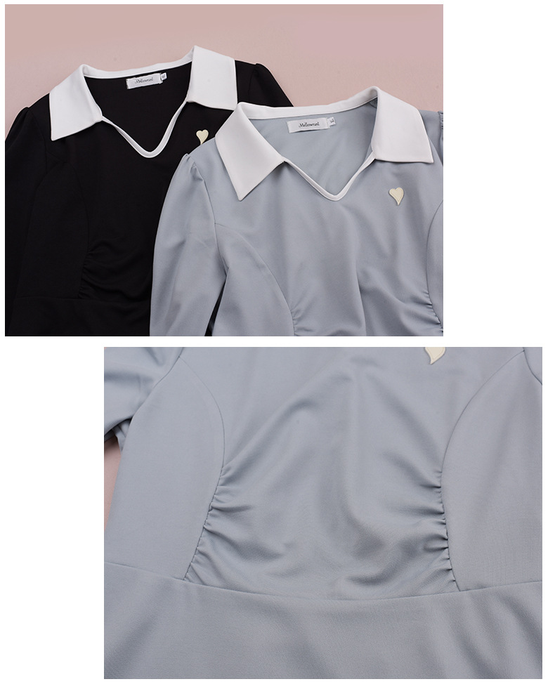 ラペルスリムフィットワンピースは、ストレッチツイストローマン生地で作られています。優れたドレープ性を持ち、滑らかで柔らかく快適な着心地です。ホワイトのミニラペルが特徴的で、胸に小さなハートが飾られています。フロントウエスト部分はプリーツになっており、 バックウエストは伸縮性がありスッキリとしたスタイルです。ウエストにフィットし、スリムフィットの美しいスタイルのデザインです。シンプルでリラックスした雰囲気のカジュアルワンピースを是非お試しください。