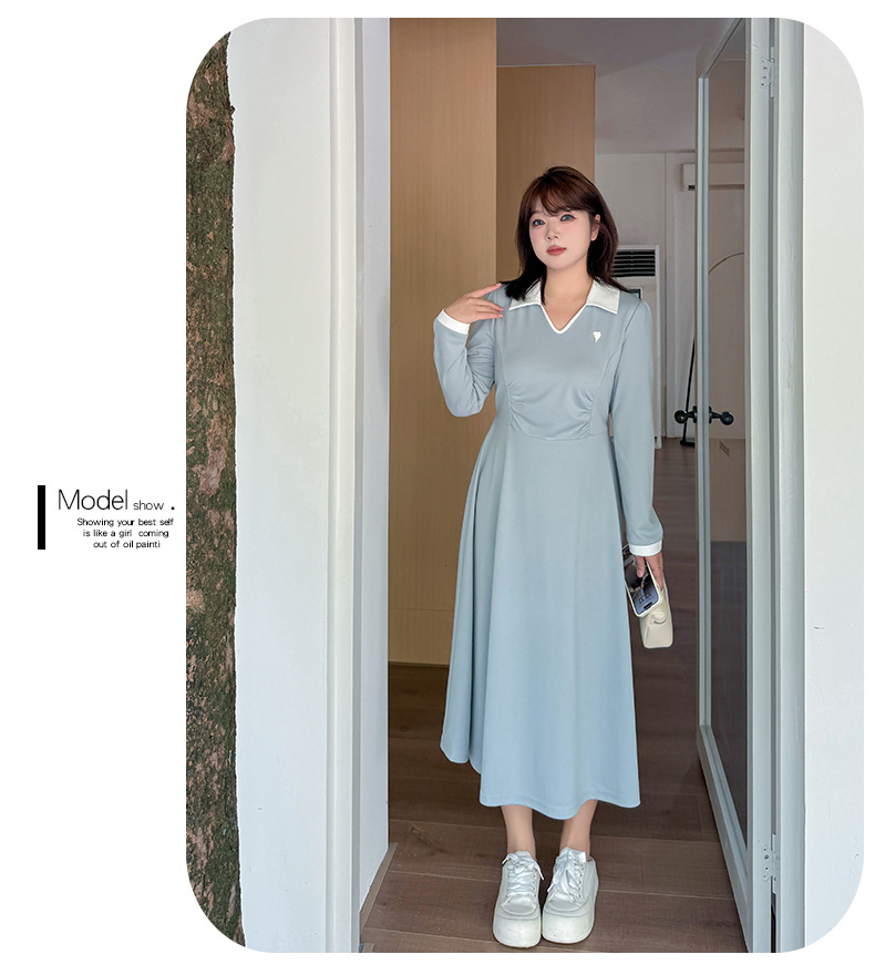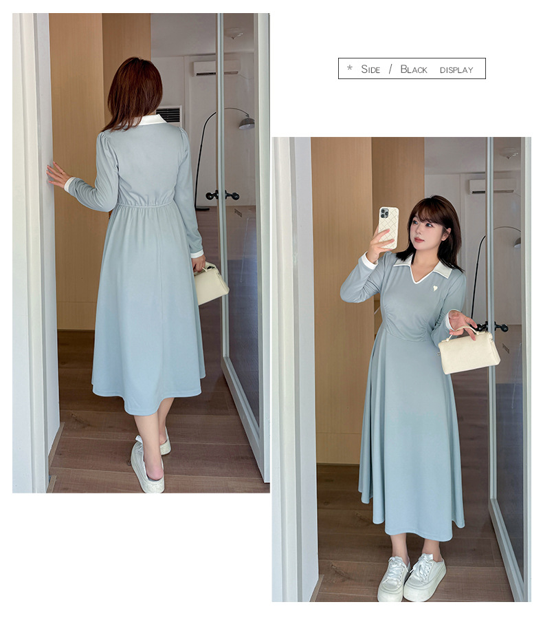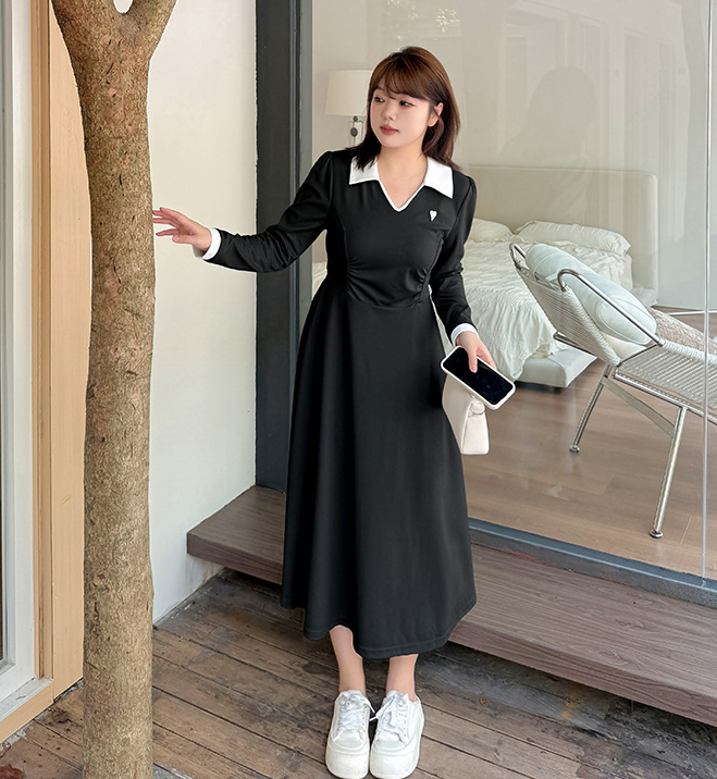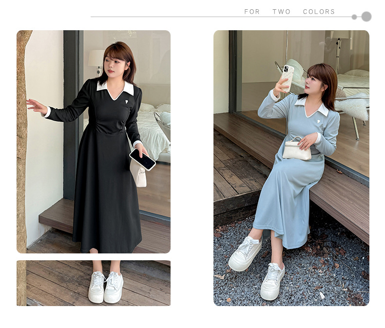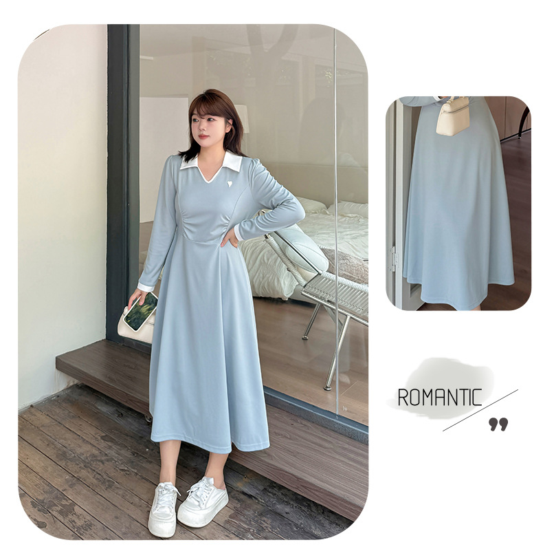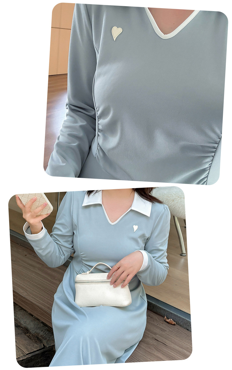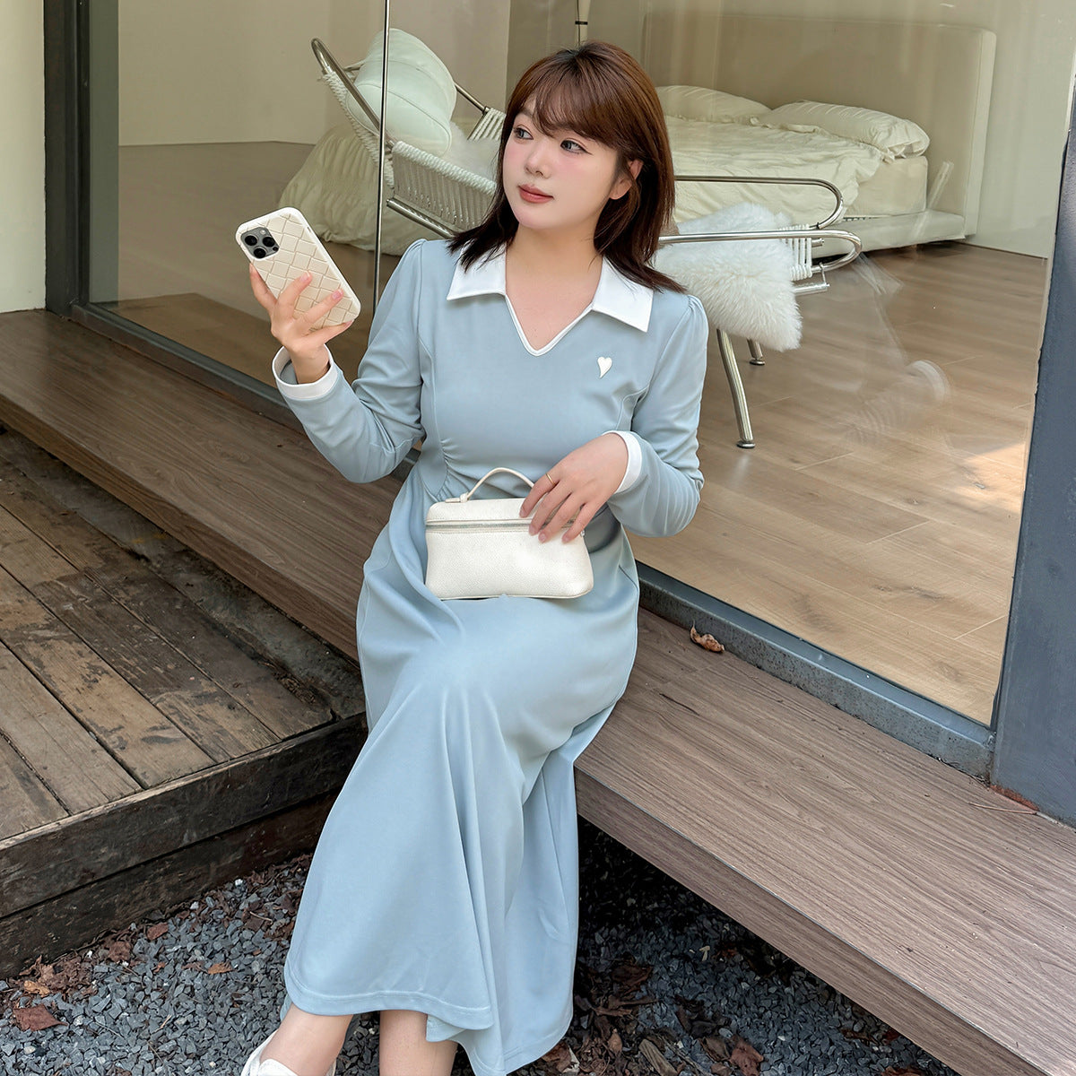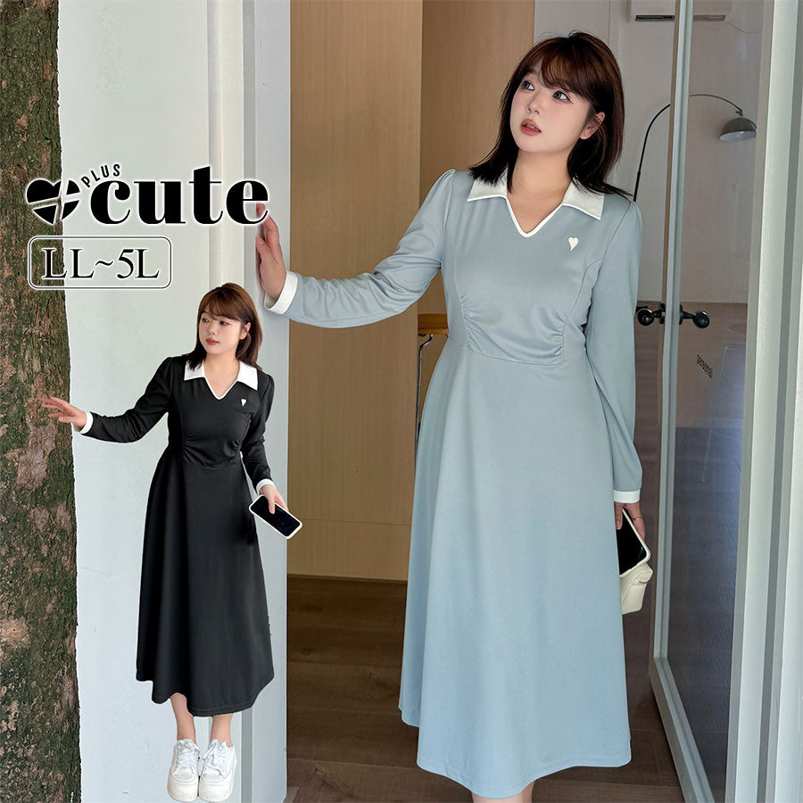 大きいサイズ レディース ハート飾りホワイトラペルスリムフィットワンピース LL 3L 4L 5L