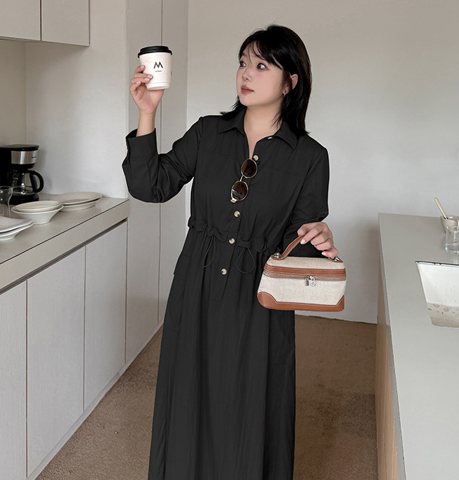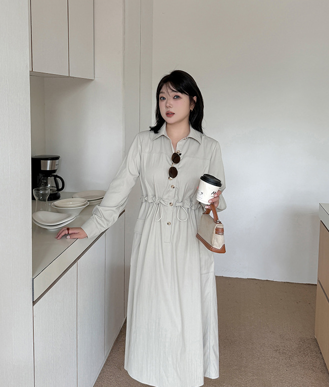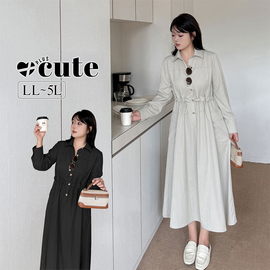 大きいサイズ レディース シャツカラーオフィスカジュアルウエストワンピース LL 3L 4L 5L