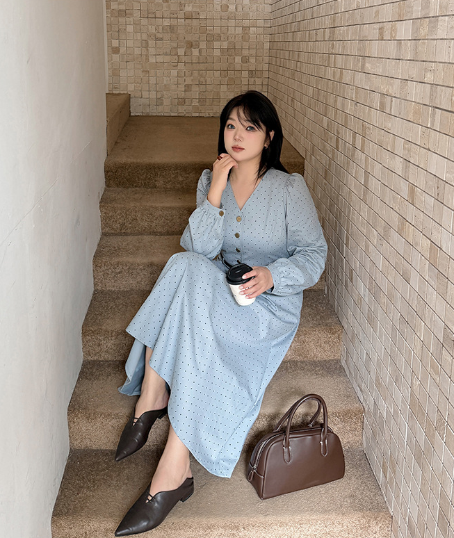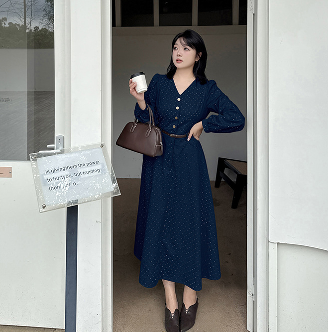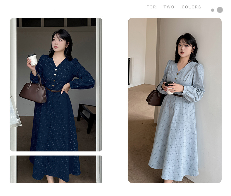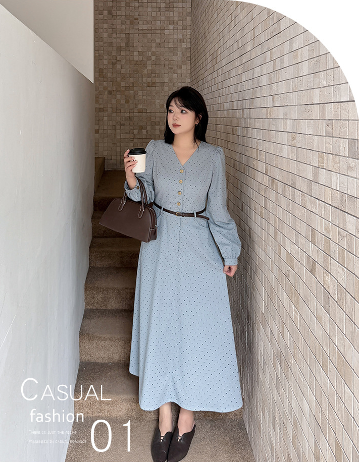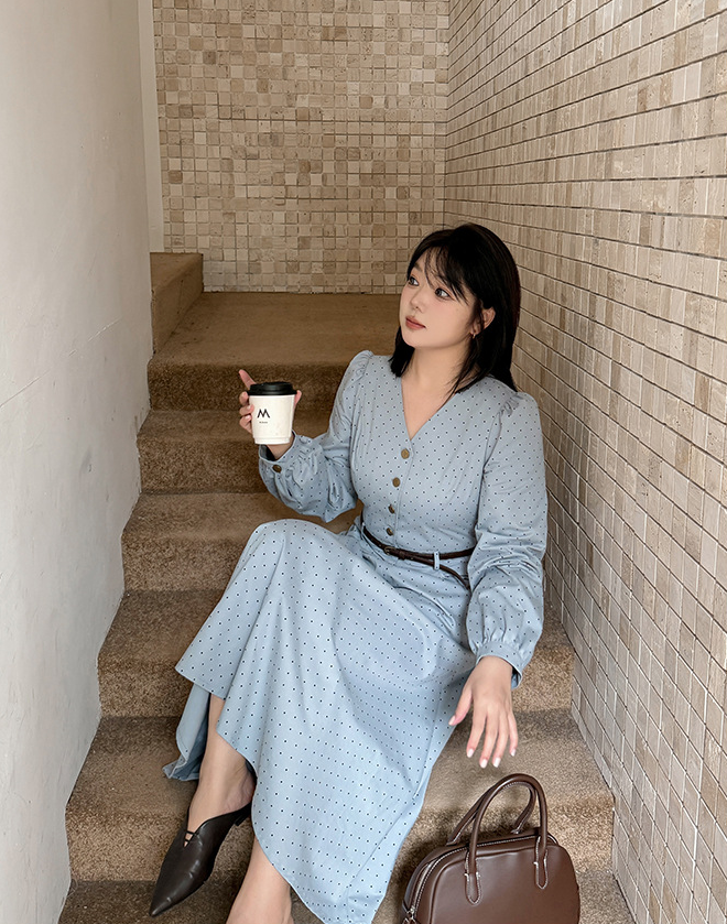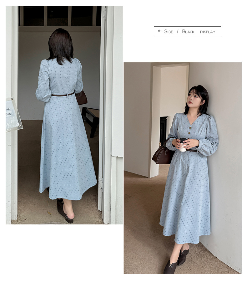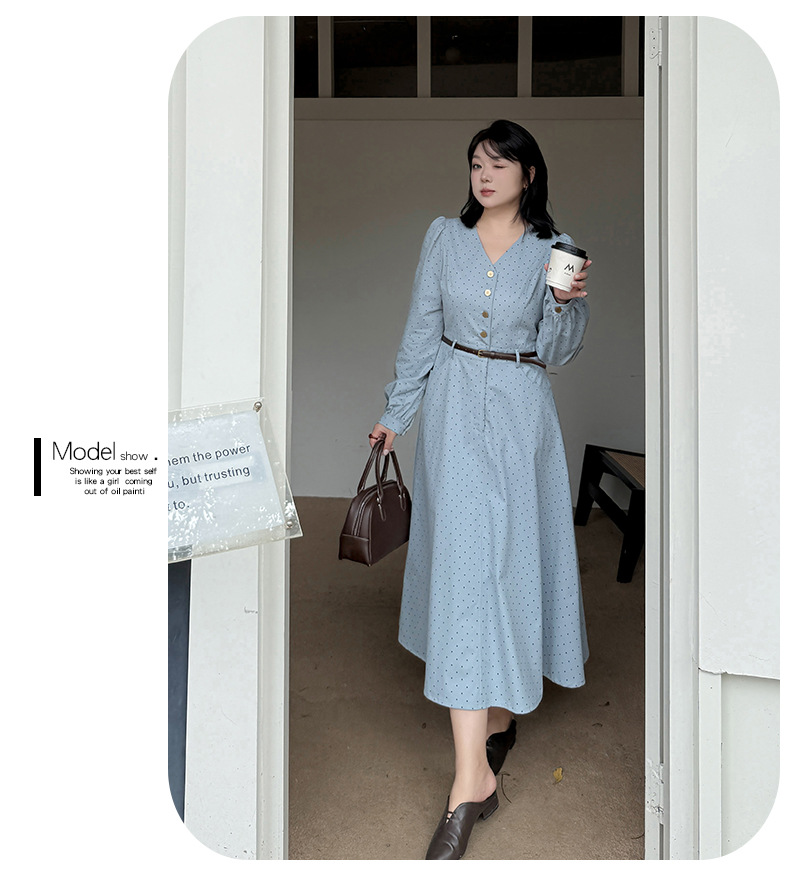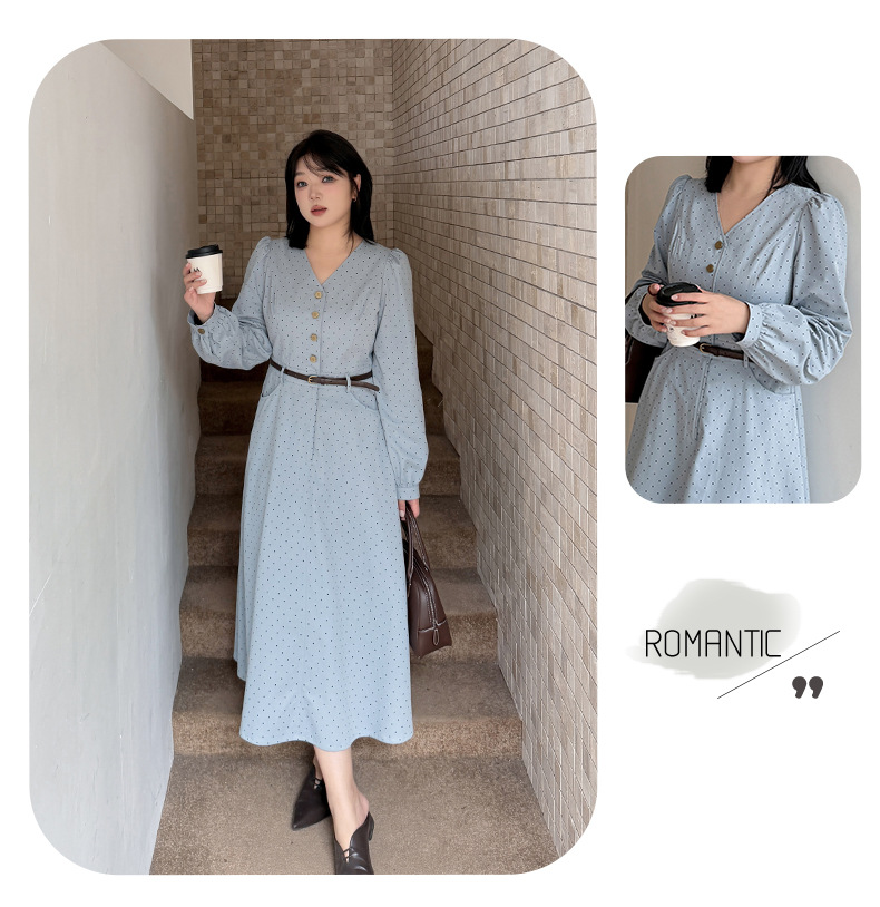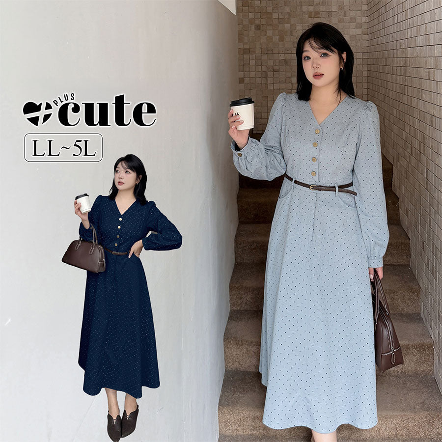 大きいサイズ レディース Vネックハイセンス水玉ドットウエストワンピース(ベルト別売) LL 3L 4L 5L