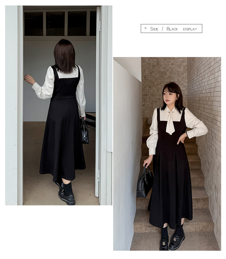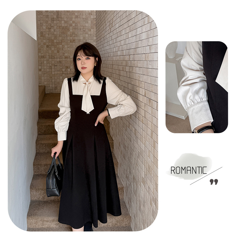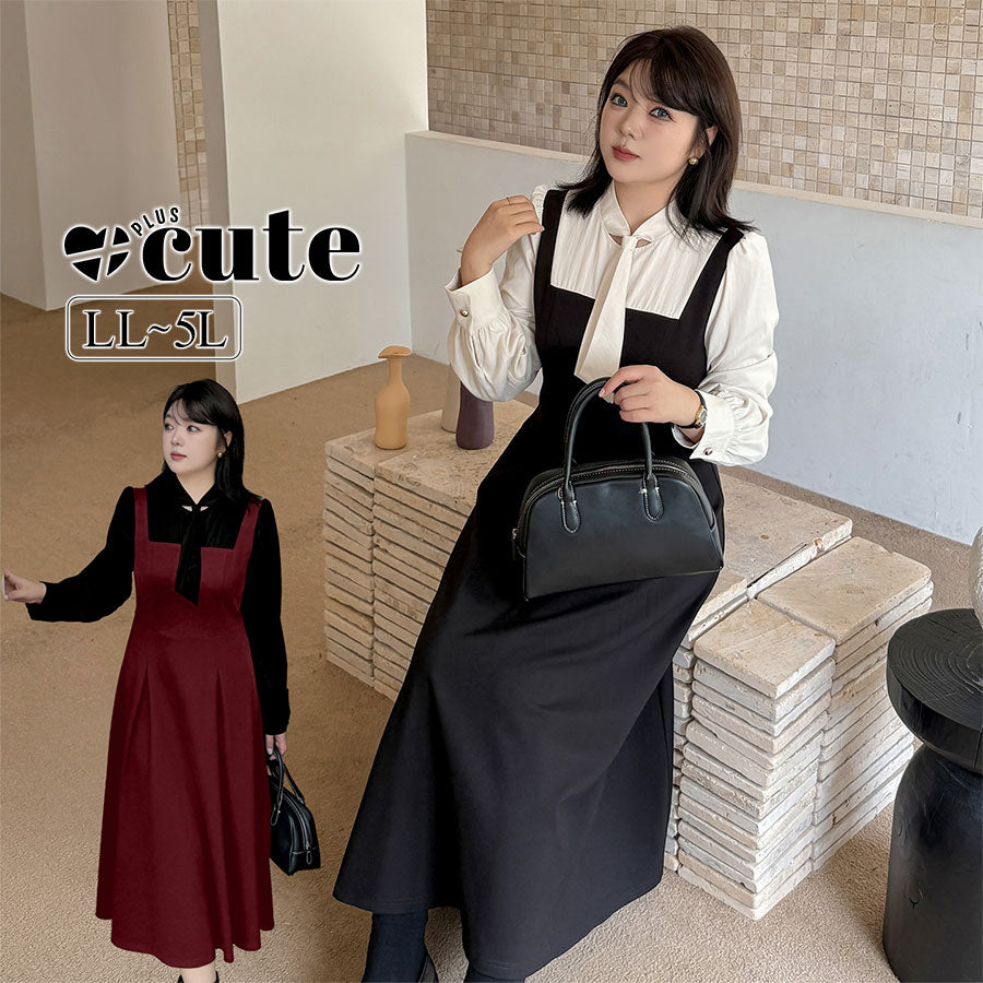 大きいサイズ レディース リボンタイフェイクツーピースエレガントワンピース LL 3L 4L 5L