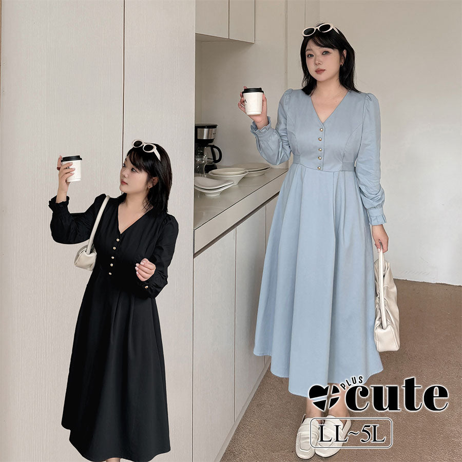 大きいサイズ レディース Vネックウエストバックリボンフレンチワンピース LL 3L 4L 5L