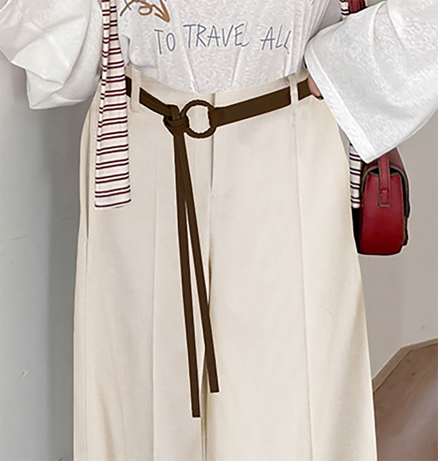 春秋にぴったりのストレートレッグパンツ。ストレートで立体的なロングレッグシルエットを演出します。カチオン素材を使用し、柔らかくベルベットのような肌触りと美しいドレープが魅力です。ハイウエストで、フロントはフックとジッパー、ウエストバックはゴム仕様です。ミニマリストスタイルのエッセンスを表現し、女性らしく優雅で控えめな美しいシルエットのパンツを是非お試しください。 ※この商品のベルトは別売です。写真のコーディネートをご希望の方は、パンツ・ベルトそれぞれをご購入ください。
