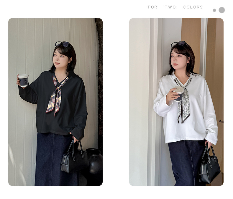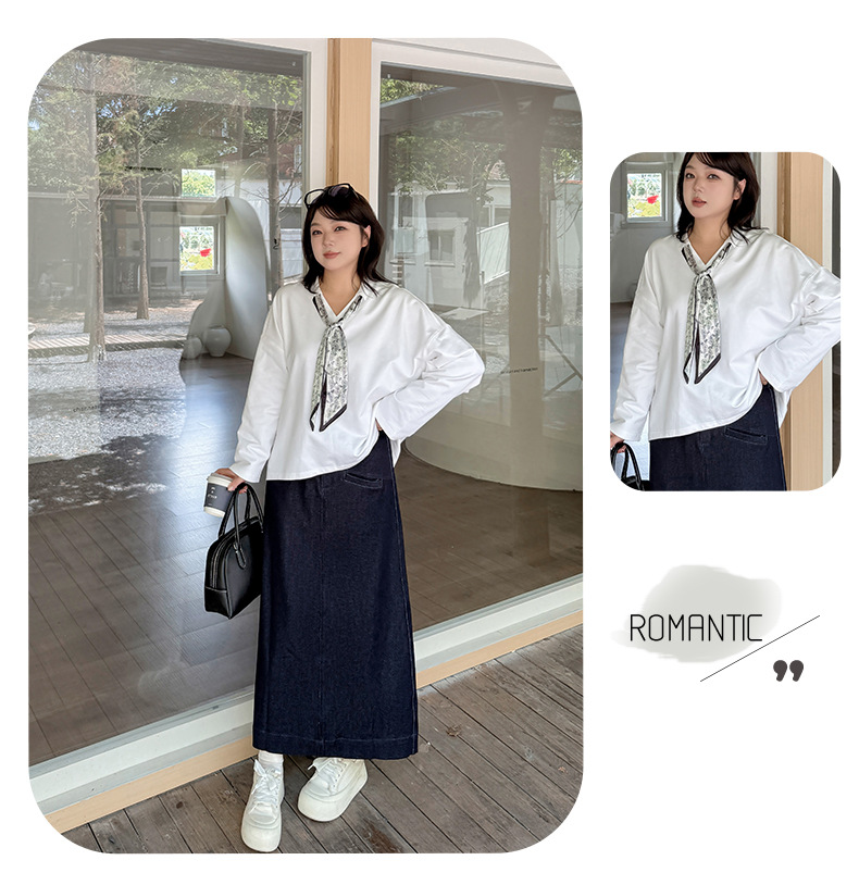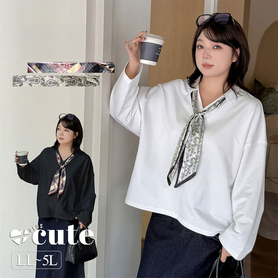 大きいサイズ レディース スカーフリボン付きVネックニットスウェットシャツ LL 3L 4L 5L