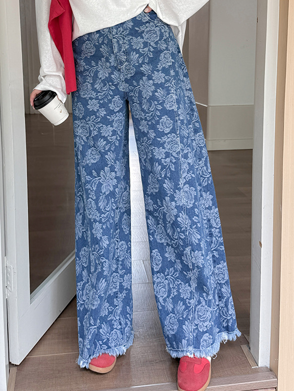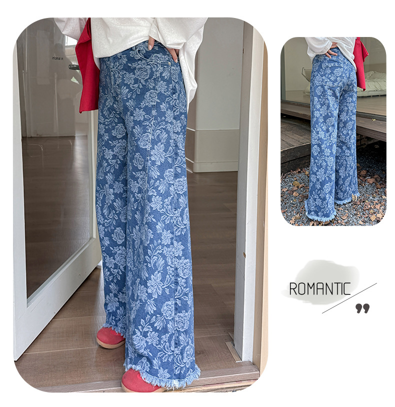 ヴィンテージ風のジャカードデニムワイドレッグパンツは、ファッショナブルな着こなしを叶えてくれる頼れる一枚。柔らかくハリのあるジャカードデニム生地は、程よいストレッチ性があり、スタイリッシュで快適な着心地です。ワイドレッグシルエットは着心地も良く、サイドはポケット付きで、裾は切りっぱなしの仕様です。トップスはストレートですっきりとしたシルエット、ヴィンテージ感のあるデニムパンツを是非お試しください。