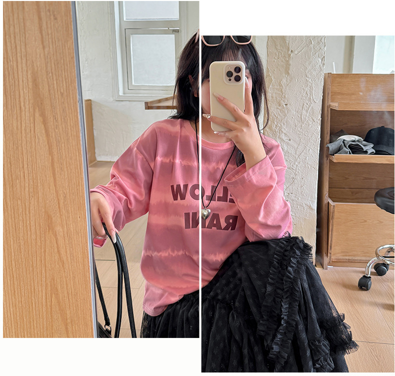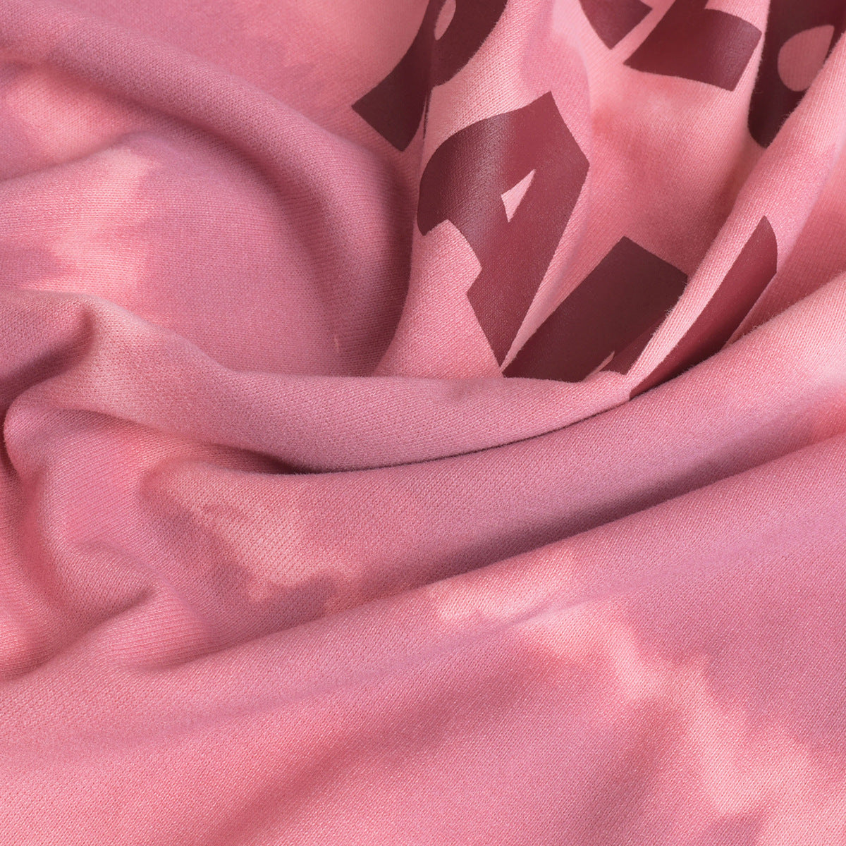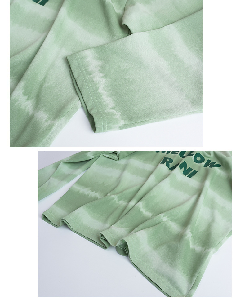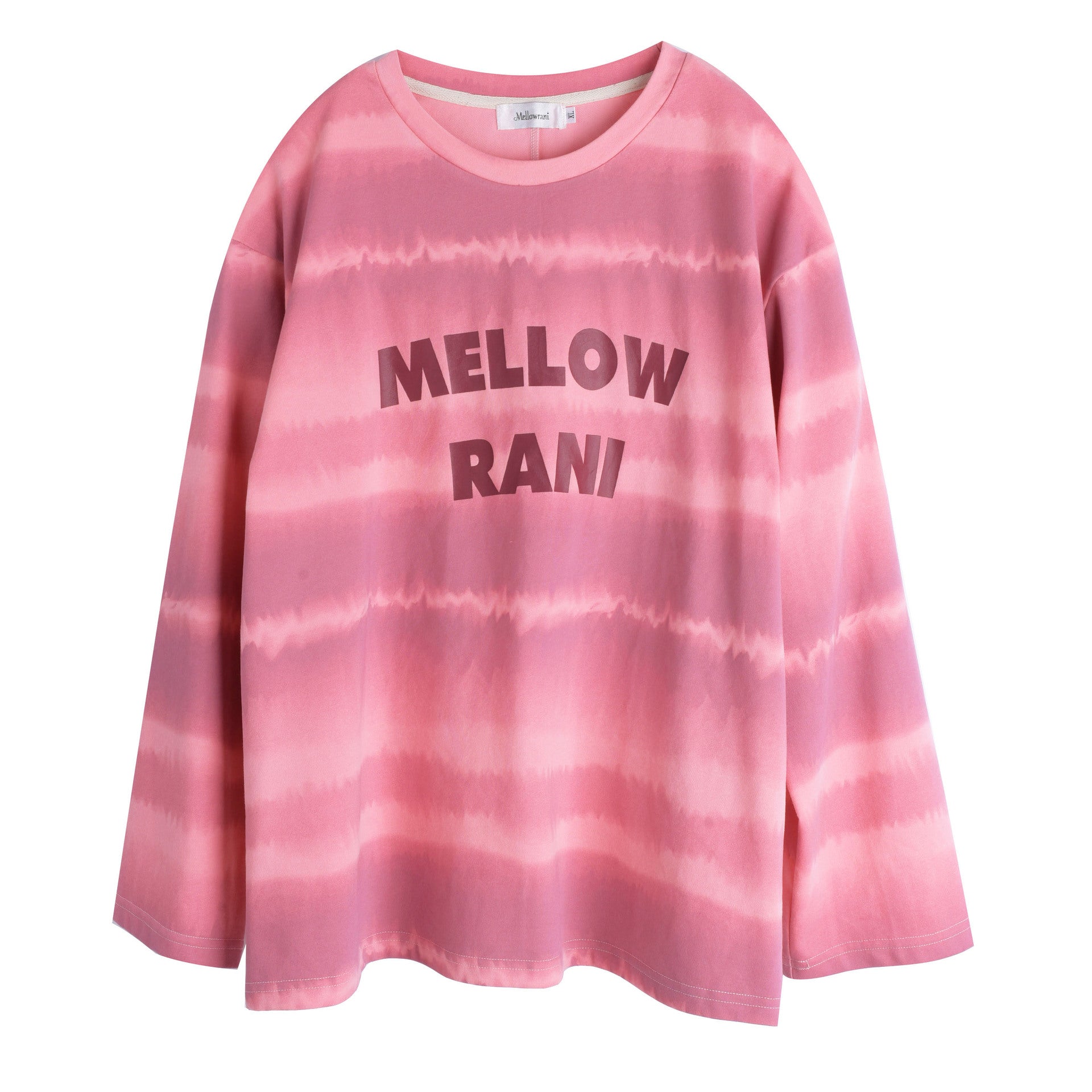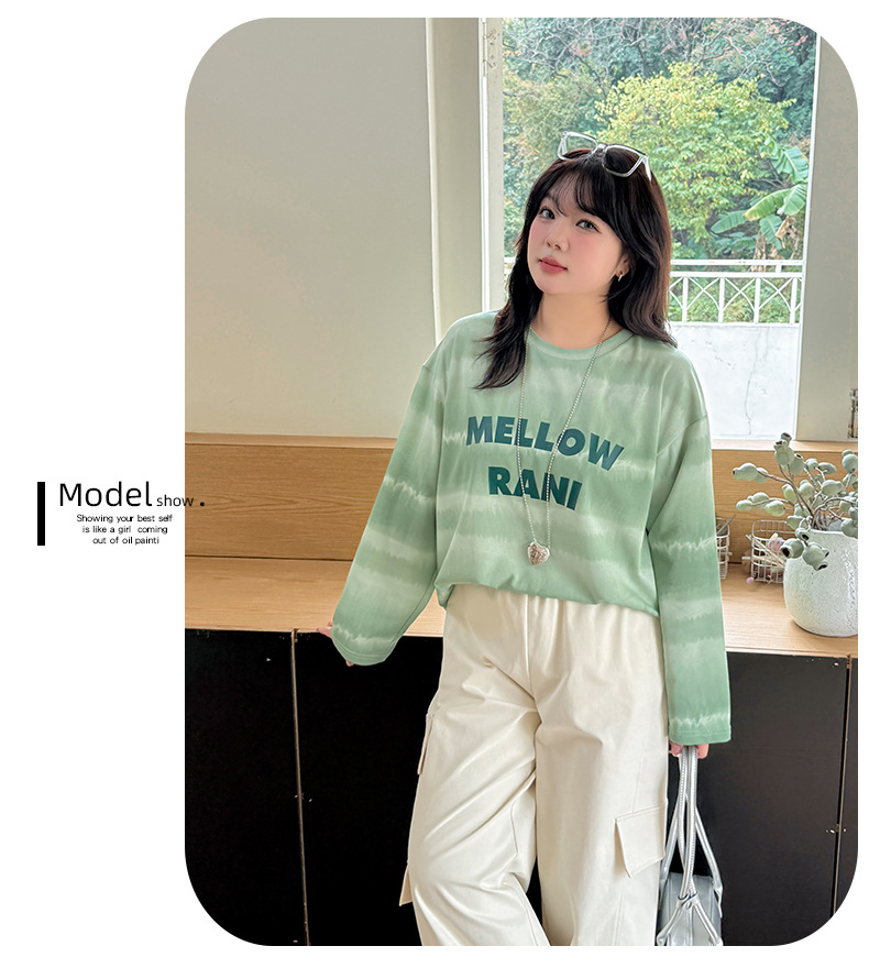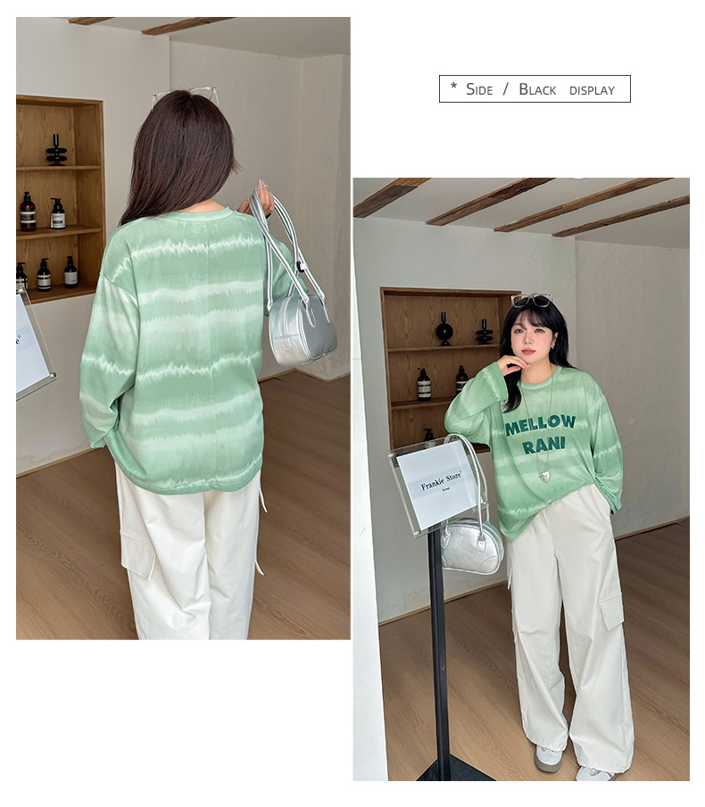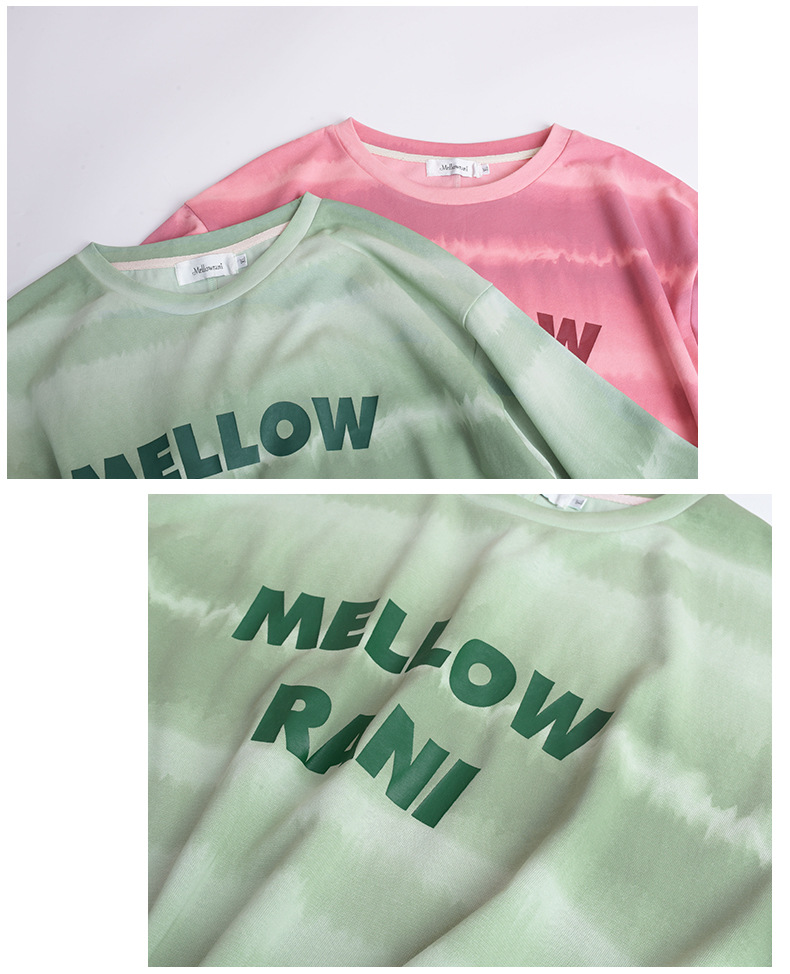 ワイドストライプグラデーションプリントロングTシャツの生地は、カスタムバティックデザインで、ストライプ間のグラデーションが特徴的でオシャレなデザインです。ニット生地は柔らかく伸縮性があり、非常に快適な着心地です。ラウンドネックで、フロントにロゴプリントがあり、デイリーカジュアルにお使いいただける一着です。