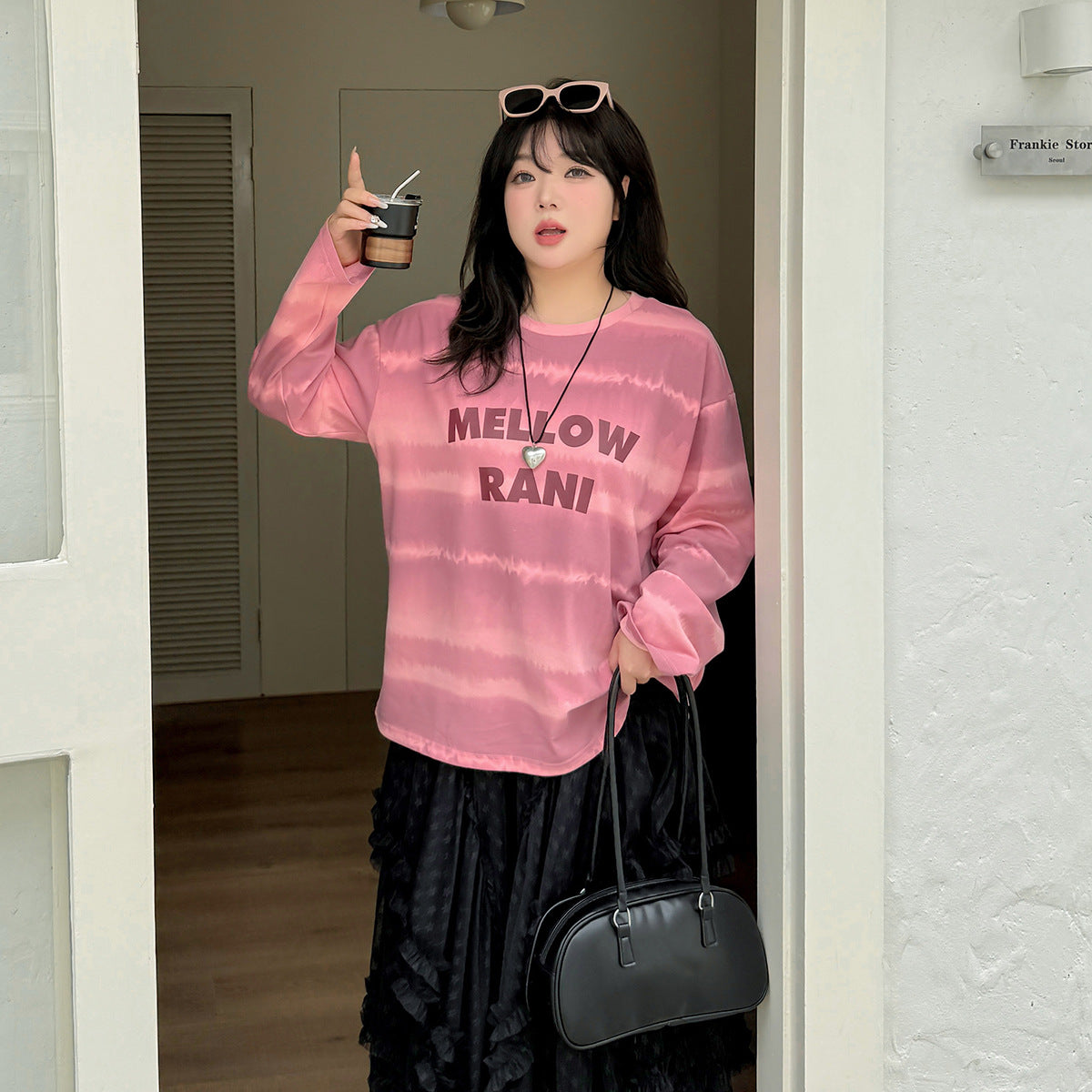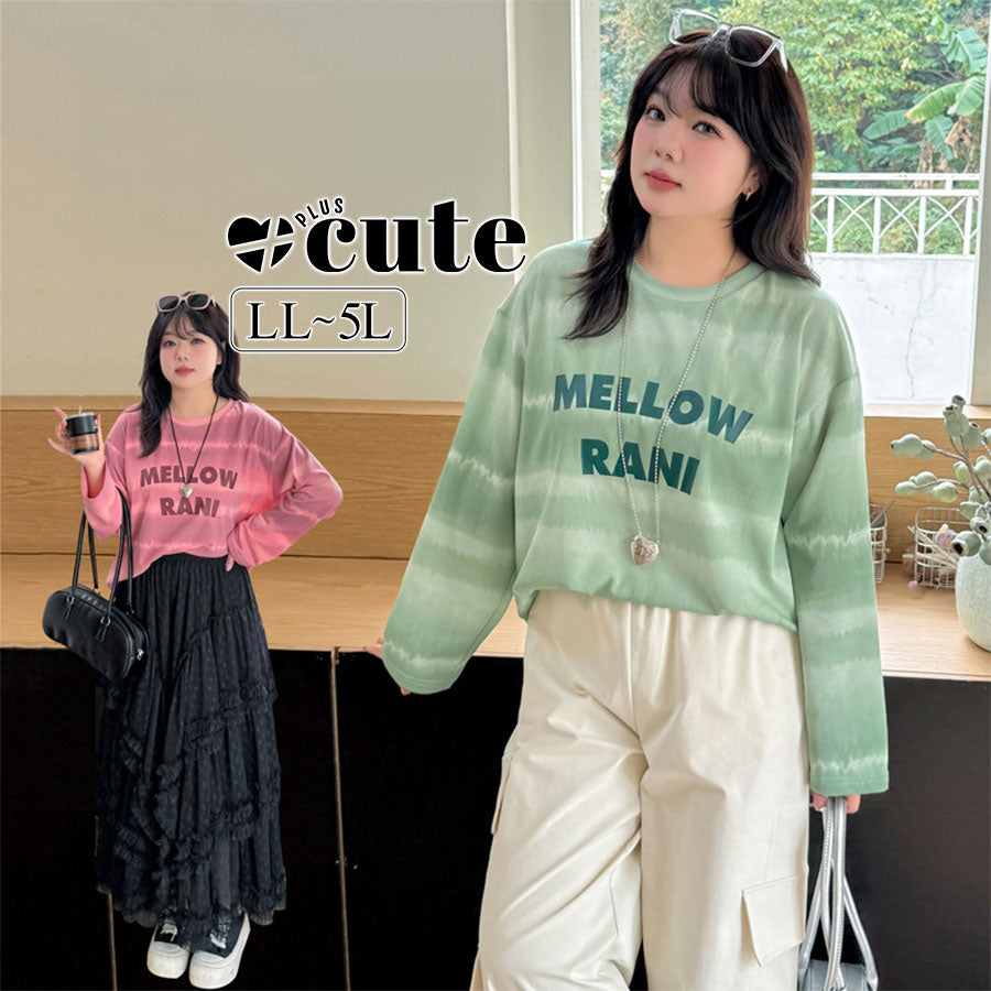 大きいサイズ レディース ワイドストライプグラデーションプリントニットロングTシャツ LL 3L 4L 5L