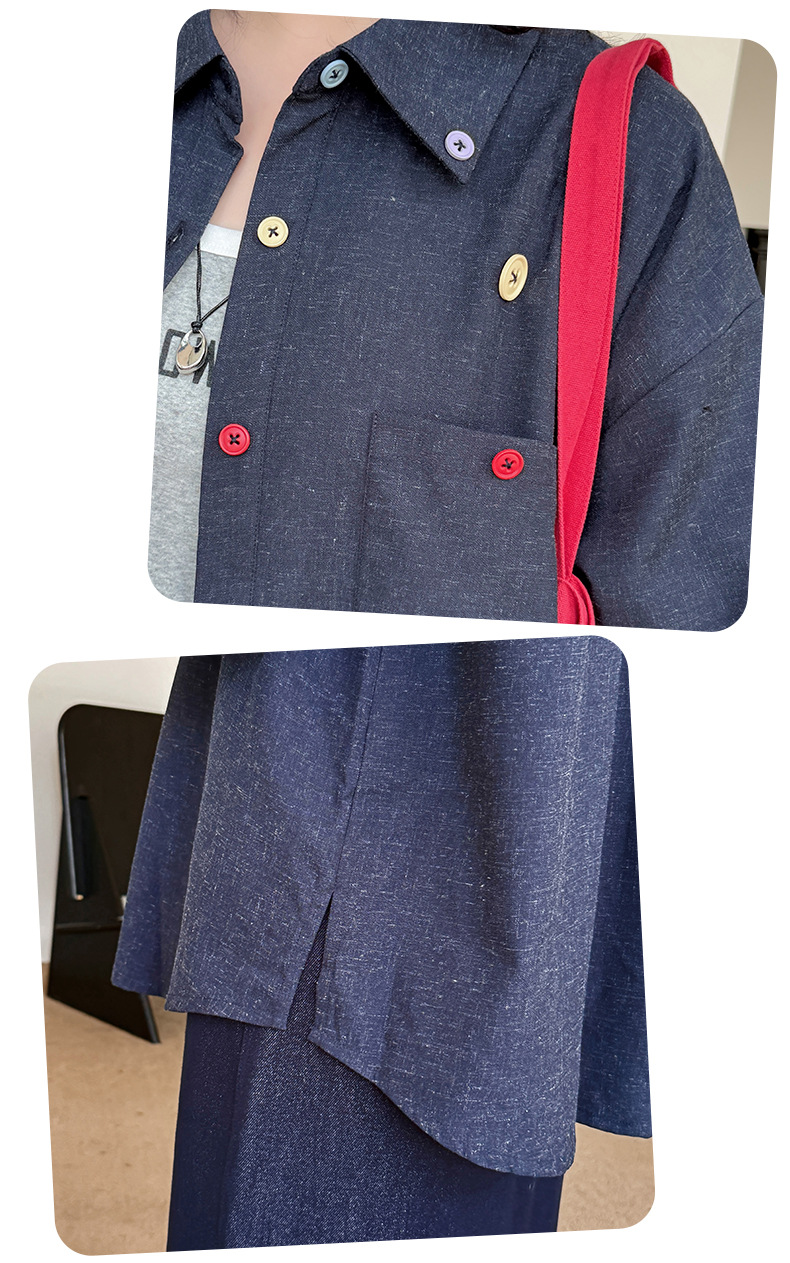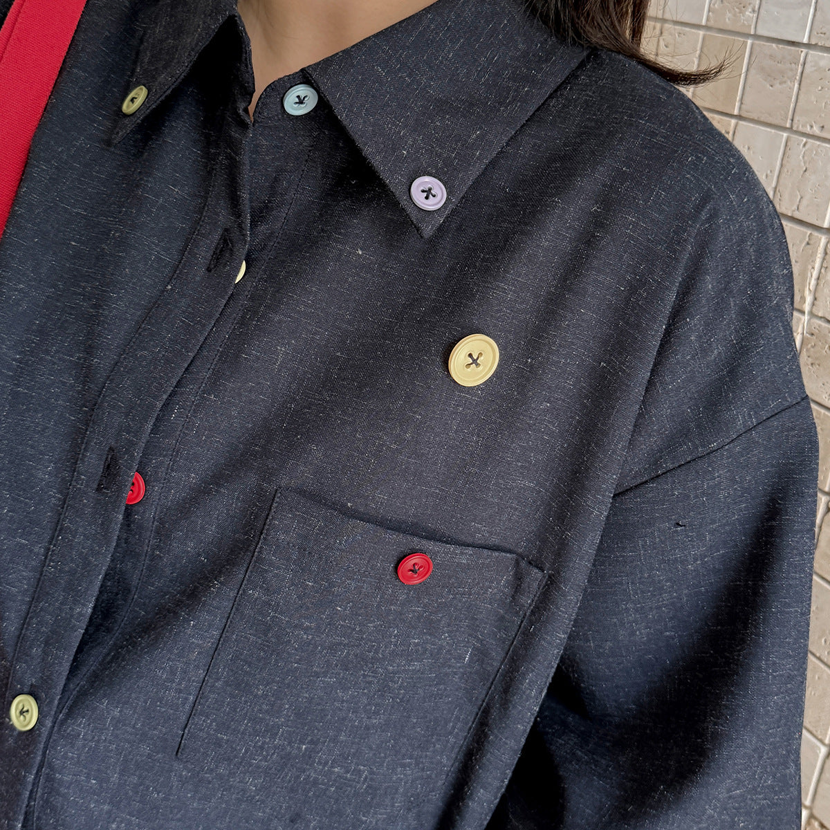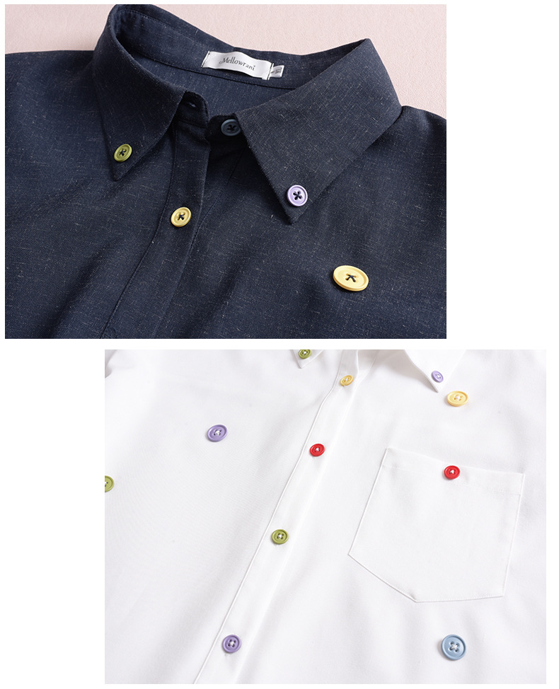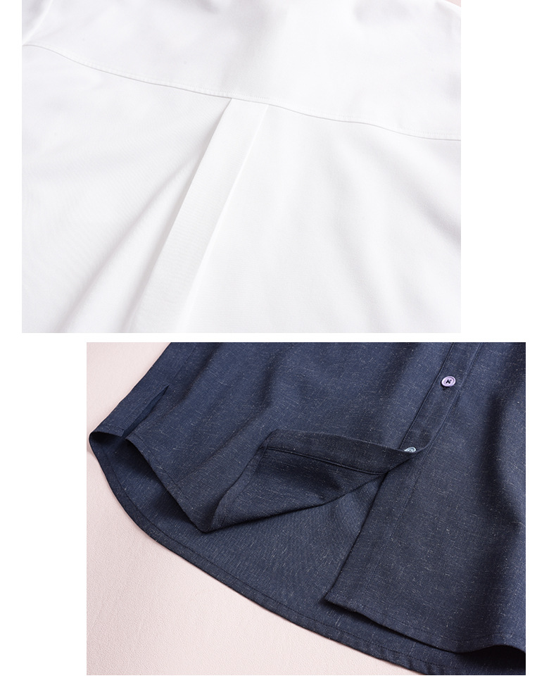 ラペルリネンボタンダウンシャツは、テクスチャードリネンダブルツイル生地で作られています。ゆったりとした着心地で、少し伸縮性があります。後ろにゆるいプリーツがあり、色の違うボタン、左前にポケット、カーブした裾、両サイドのオープンフラッグが付いたオシャレなデザインです。袖口のボタンは外すことができます。カジュアルでデイリーに着こなせるボタンダウンシャツを是非お試しください。