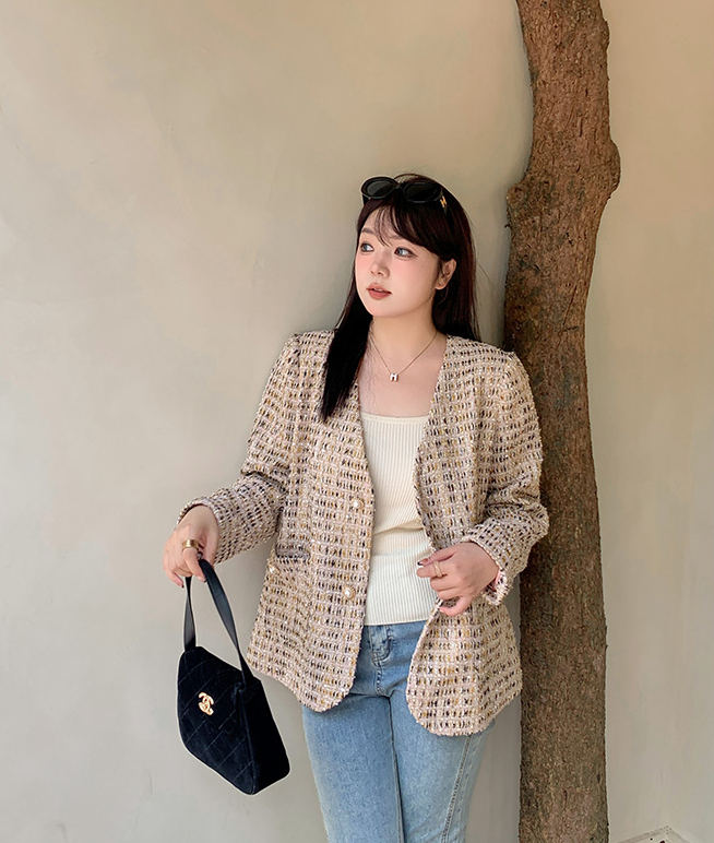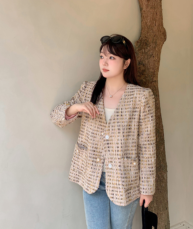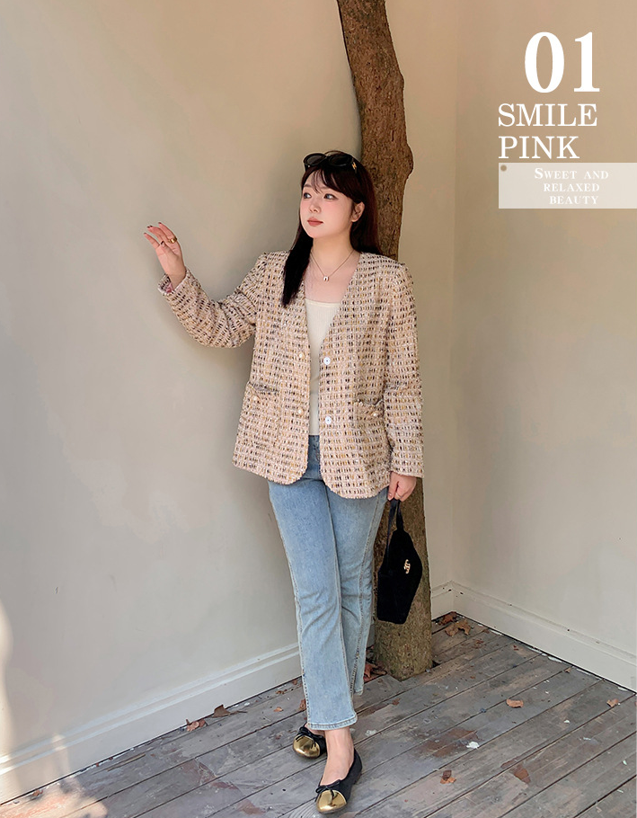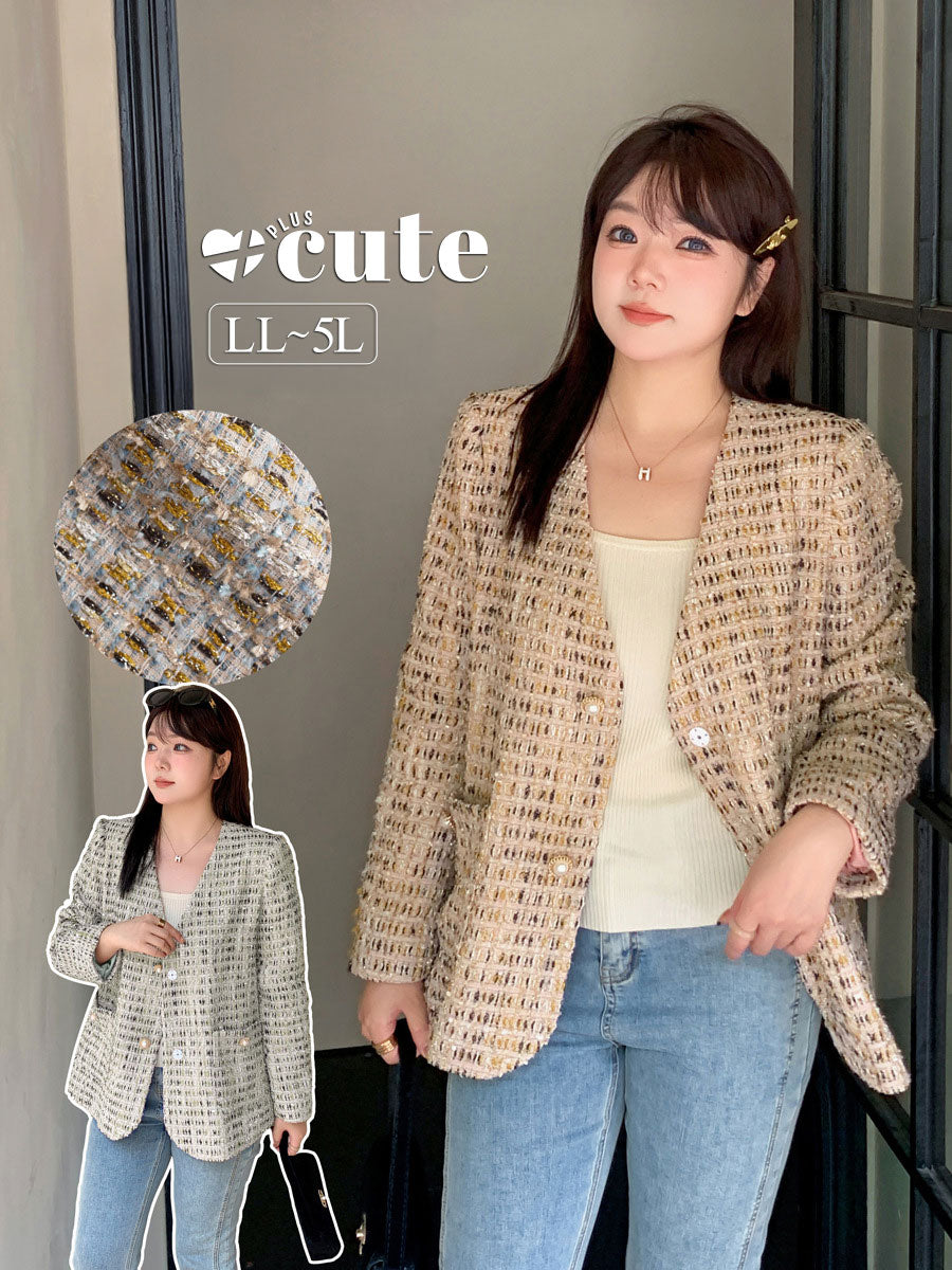 大きいサイズ レディース Vネックツイードジャケット LL 3L 4L 5L