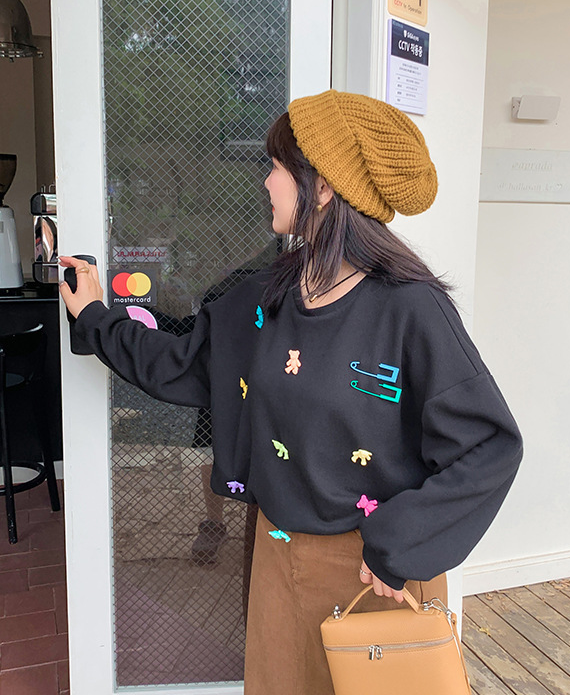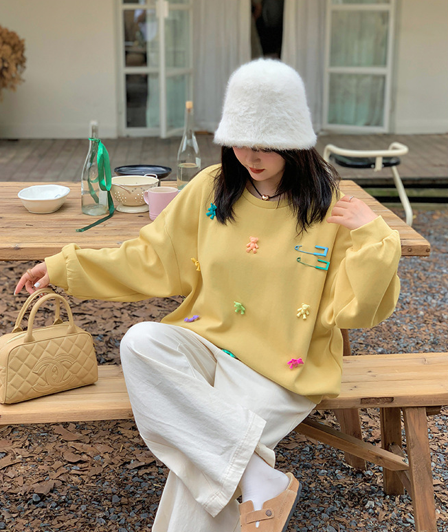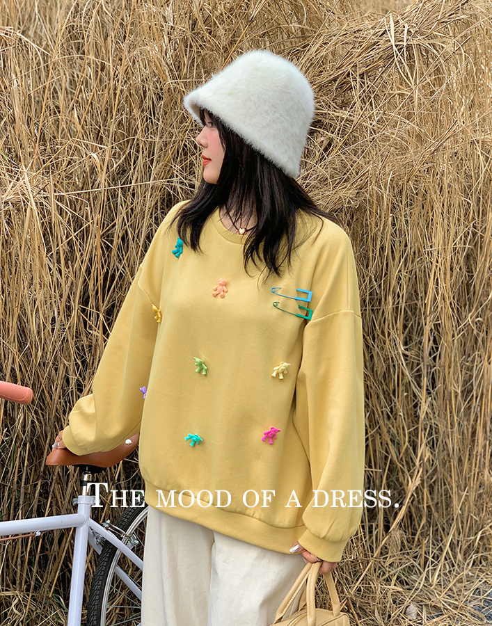 ベアー飾りルーズスウェットシャツトレーナーは、通気性に優れたニットメッシュ素材を使用し、ドライで柔らかく、伸縮性があります。フロント部分にはドーパミンカラーのベアーが縫い付けられ、胸元にはカラフルな大きなピンバッジが付いています。ラウンドネックで、ゆったりとしたデザインです。遊び心溢れるスウェットシャツで、着るだけで気持ちまで弾みます!