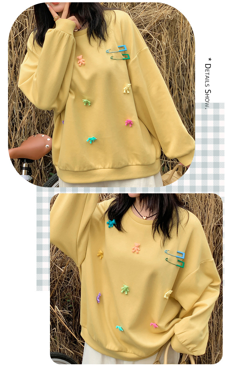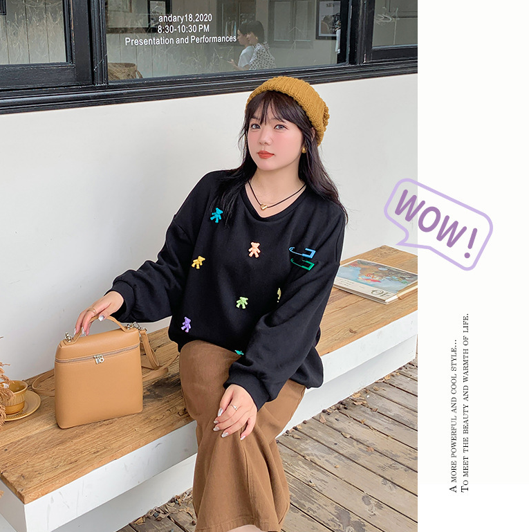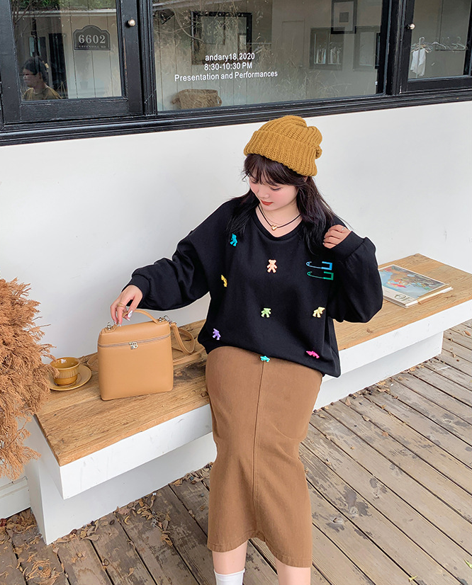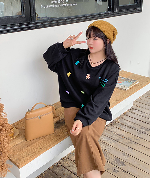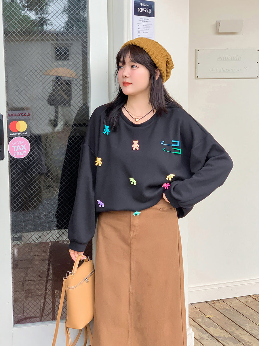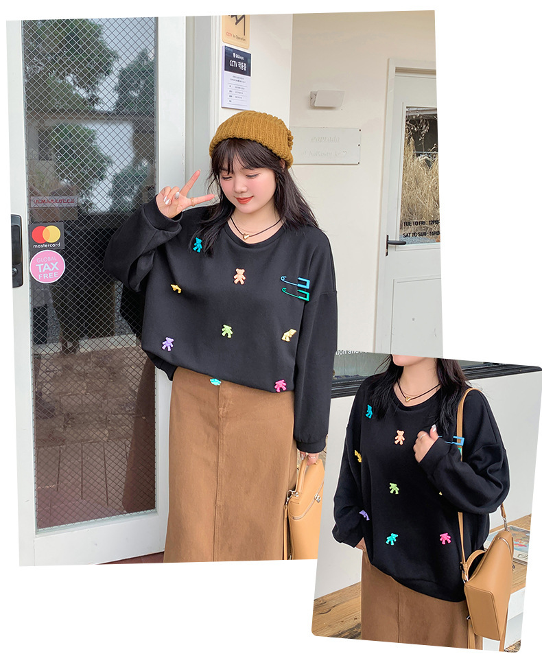 大きいサイズ レディース ベアー飾りルーズスウェットシャツトレーナー LL 3L 4L 5L