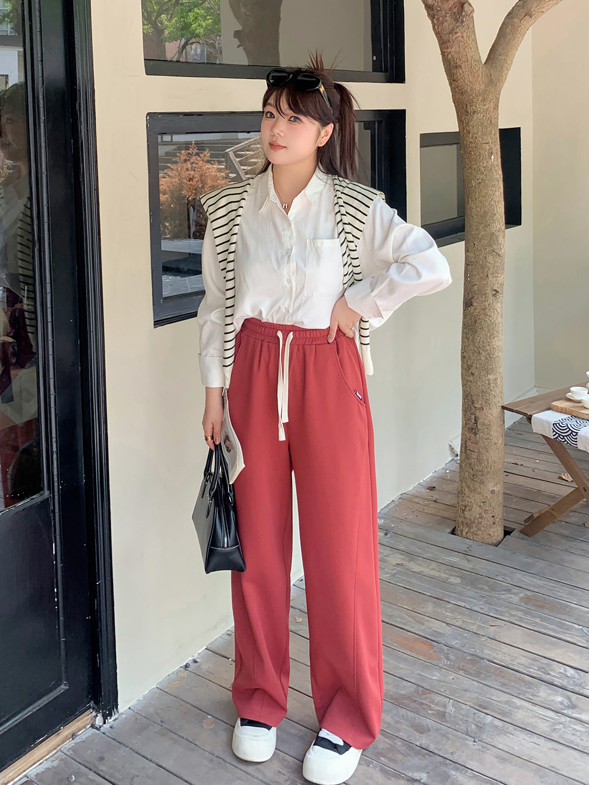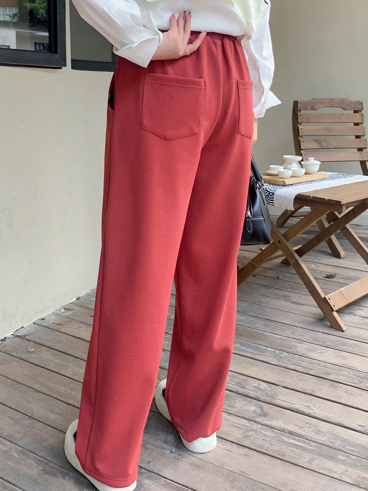 大きいサイズ レディース ハイウエストニットカジュアルストレートパンツ LL 3L 4L 5L