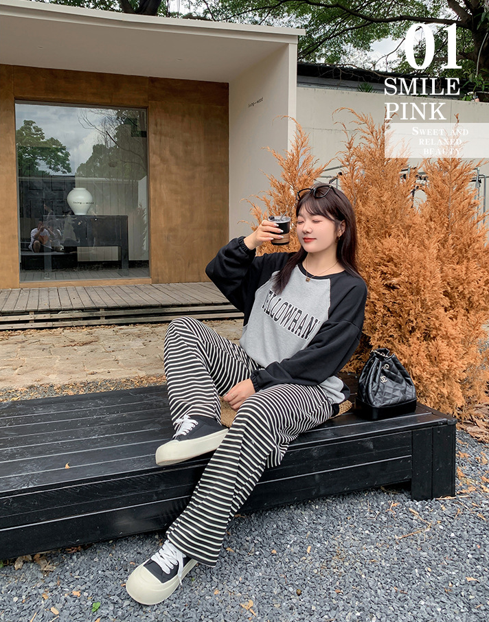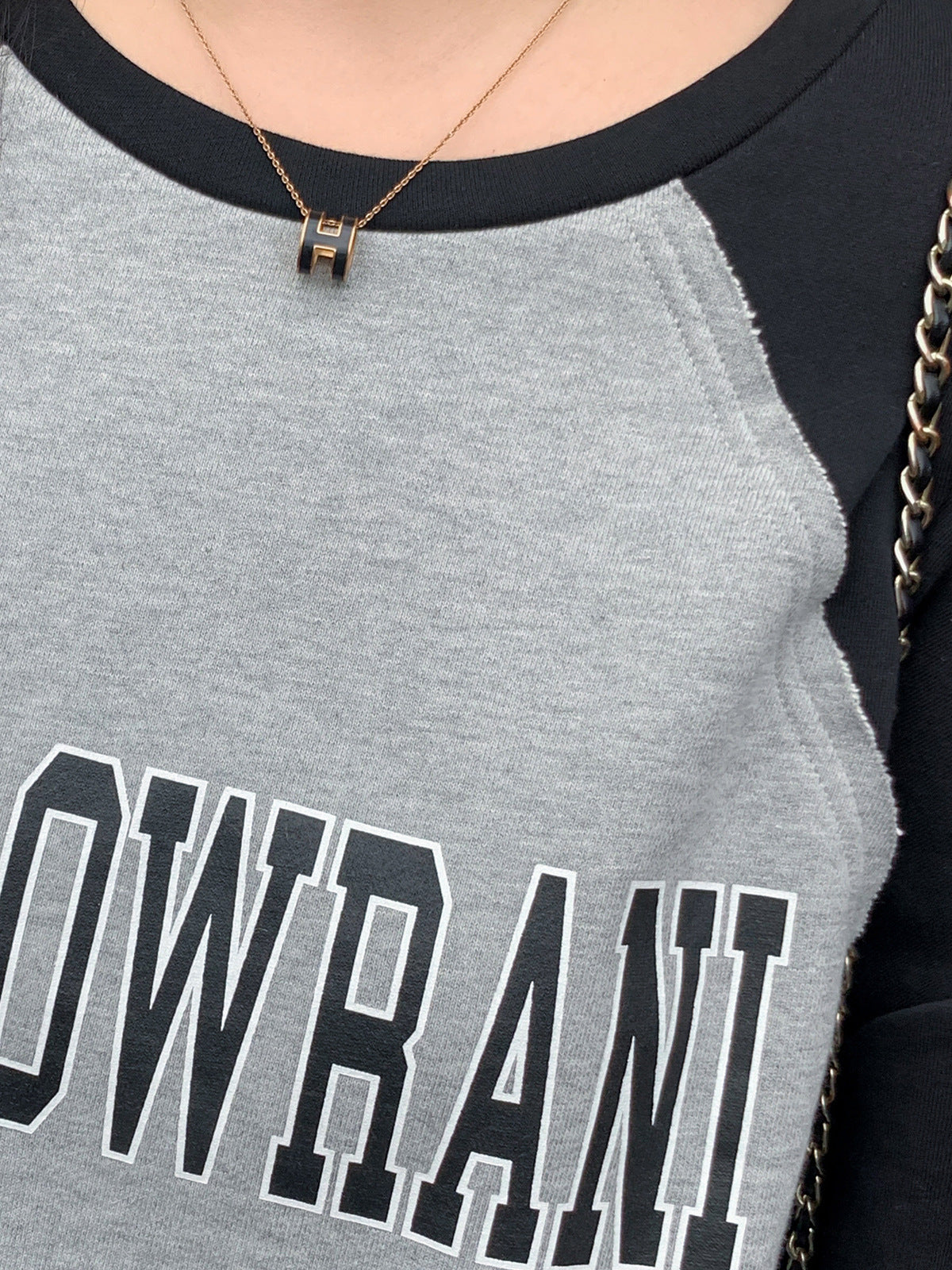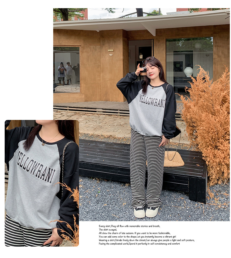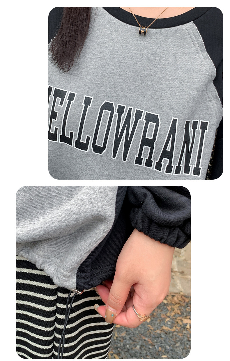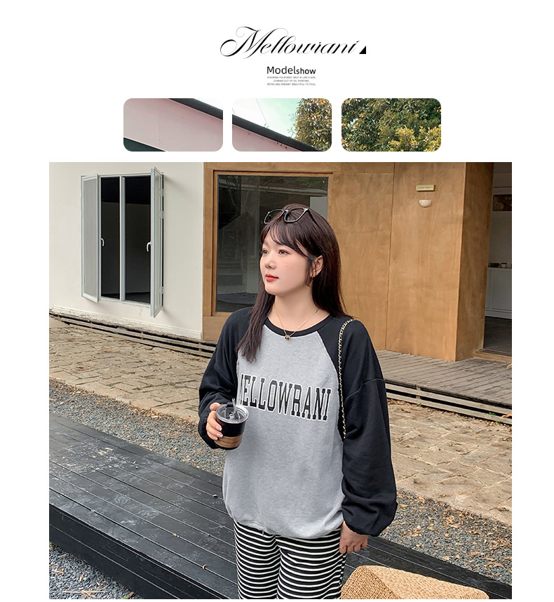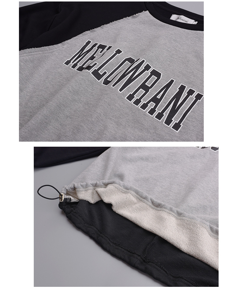 袖切替えのカラーブロックスウェットTシャツは、通気性があり柔らかくて伸縮性のある 素材です。ラウンドネックで首が詰まりすぎないデザインです。ラグランスリーブがルーズフィットでありながらも女性らしい雰囲気を演出します。袖口には伸縮性のあるバンドが付いています。