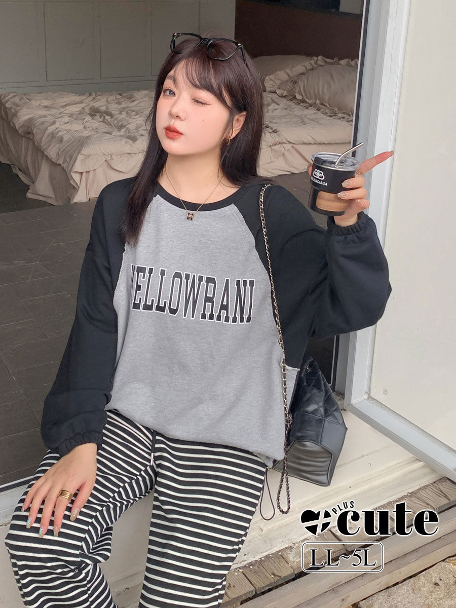 大きいサイズ レディース アメリカンラグランスリーブレタープリントスウェット LL 3L 4L 5L