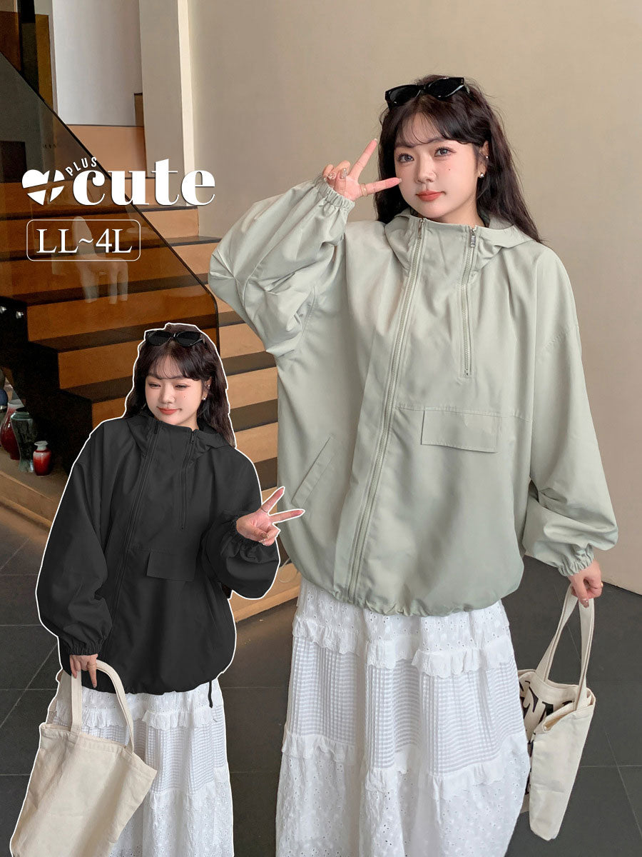 大きいサイズ レディース ダブルジッパーフード付きカジュアルジャケット LL 3L 4L