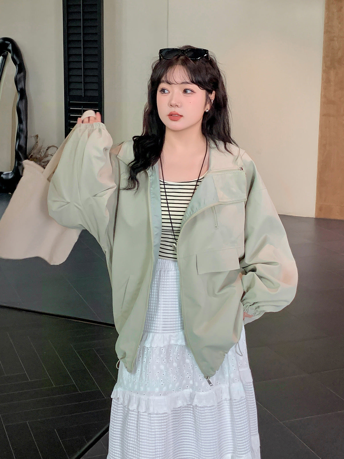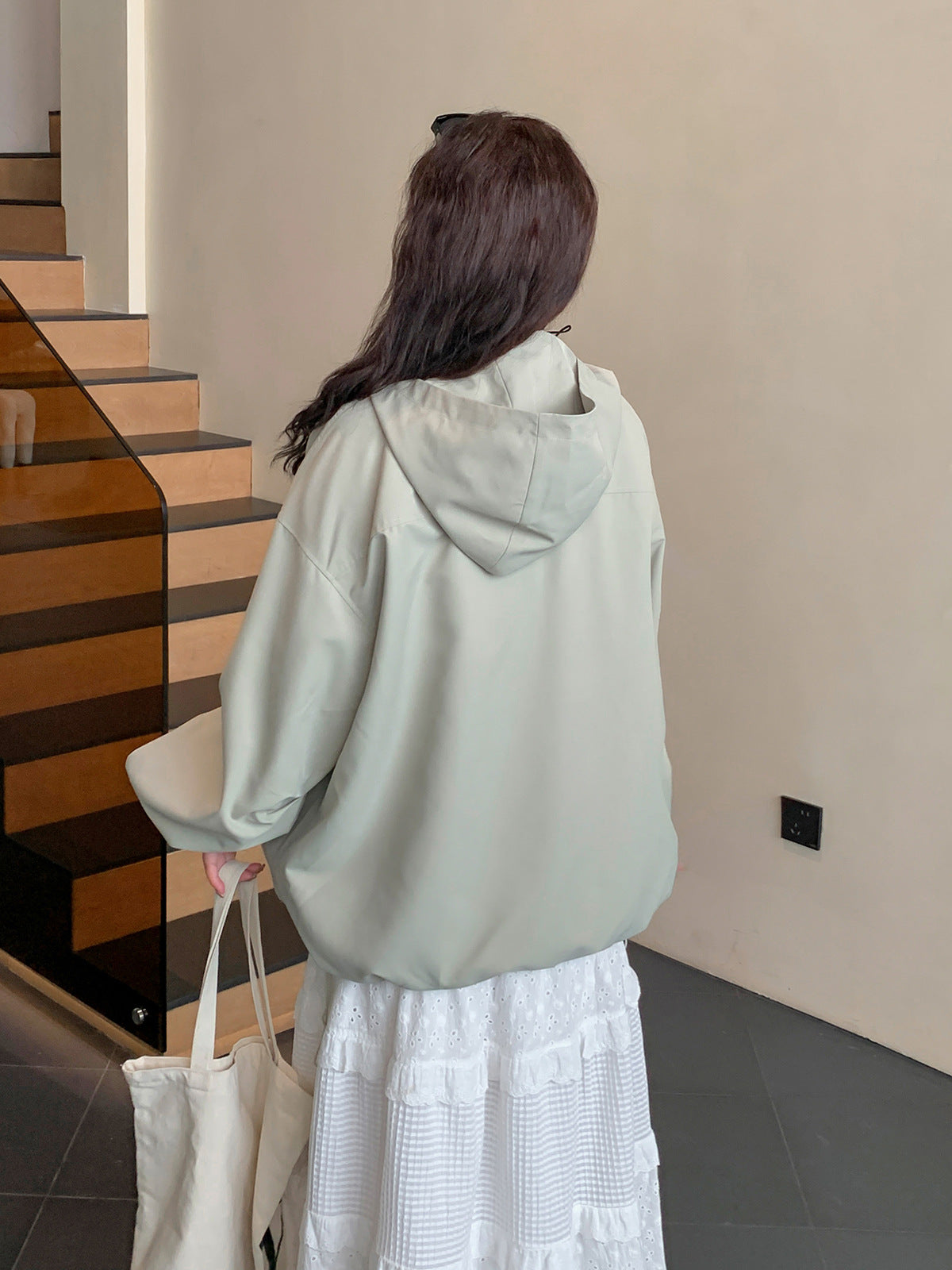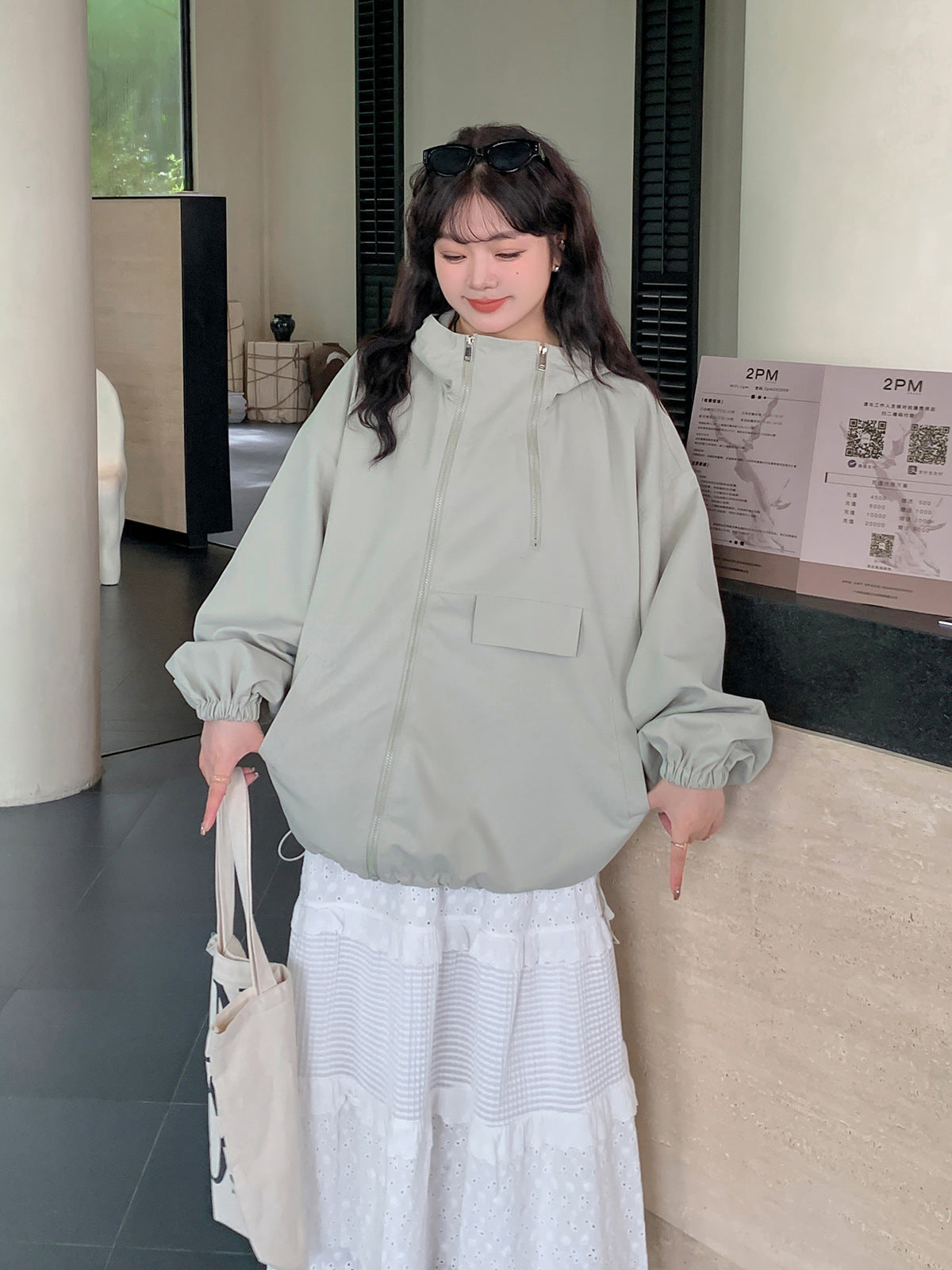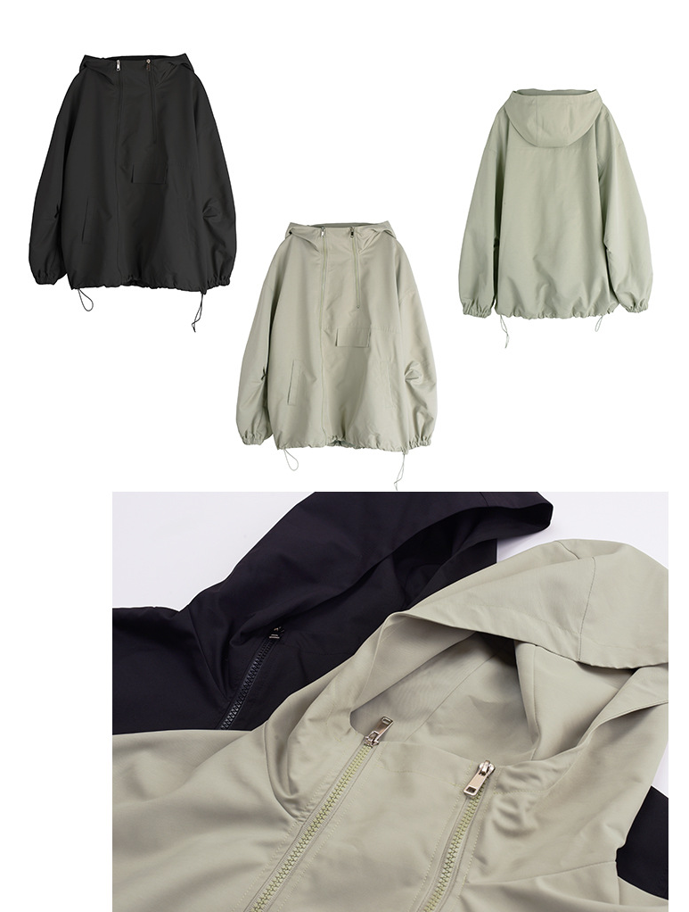 オーバーサイズのカジュアルジャケットは、アシンメトリーのダブルジッパーデザインがオシャレなアイテムです。フード付きでカジュアルスタイルに最適です。肩落ちのルーズフィットなデザインなので、メンズライクになりすぎないところがポイント☆季節の変わり目にピッタリなこのアウターはおススメの一品です。