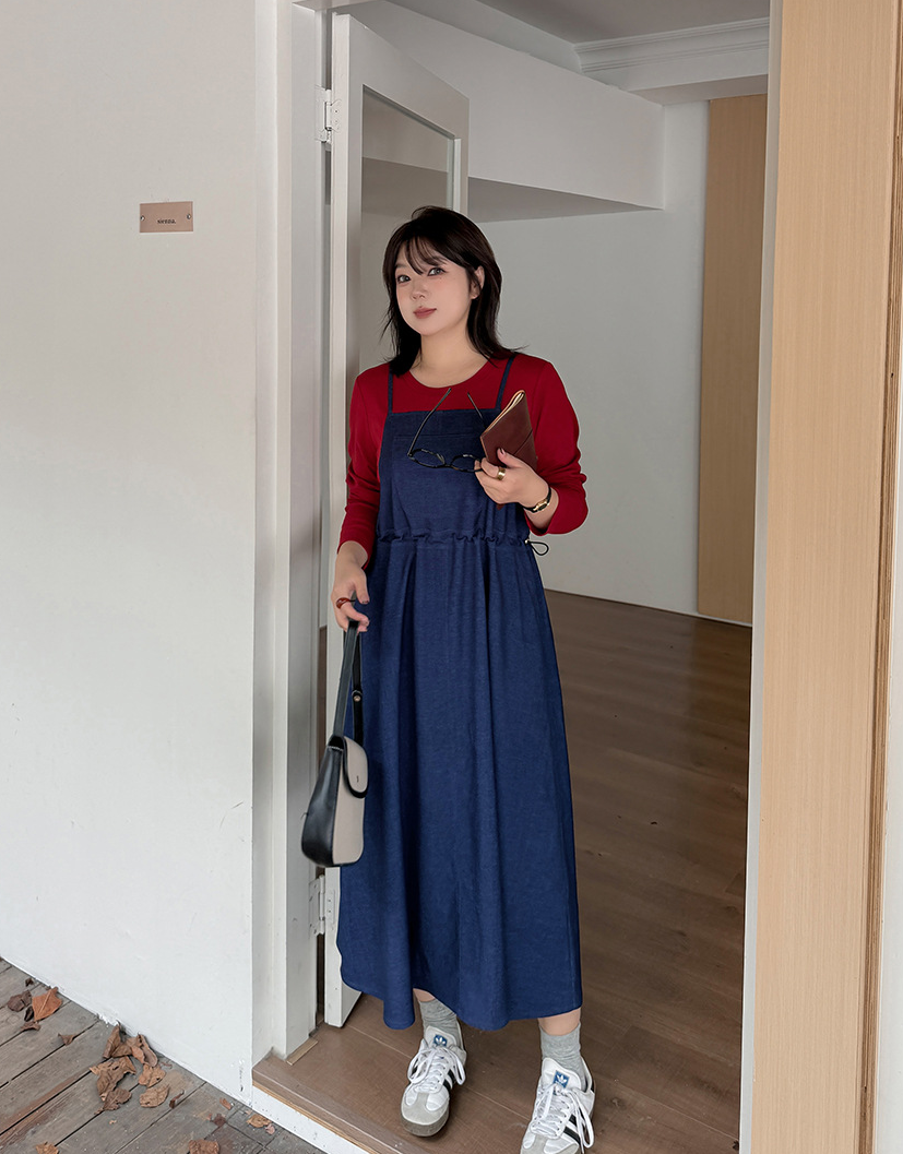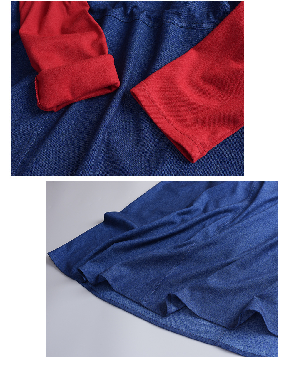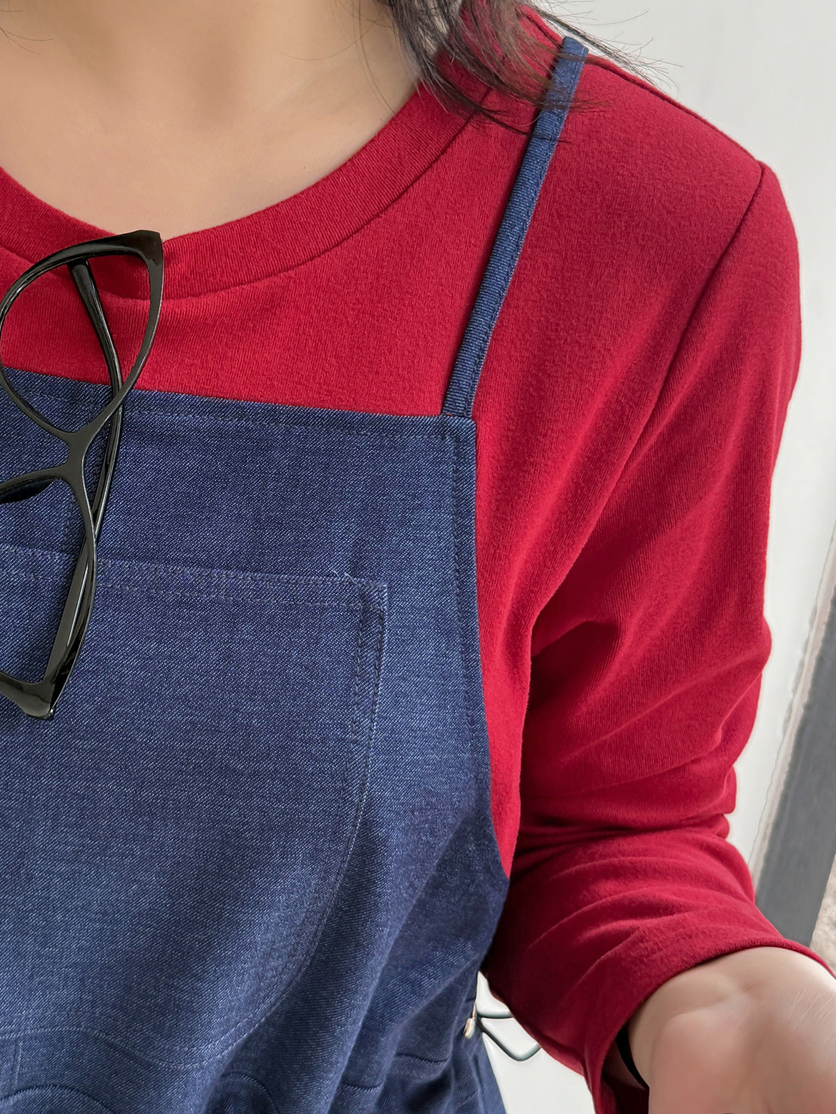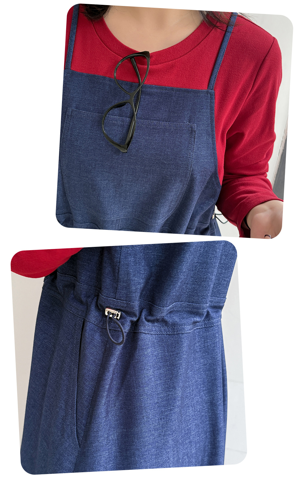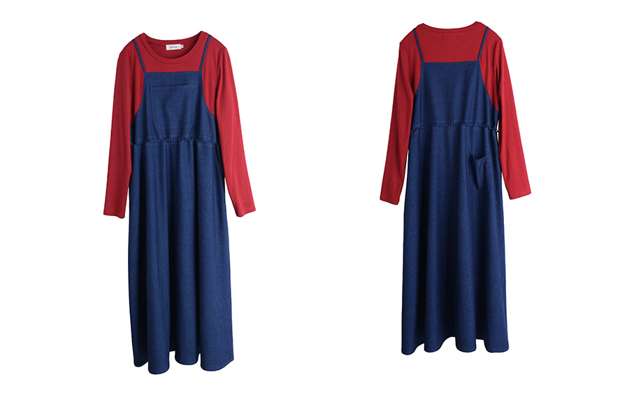 フェイクツーピースワンピースは、柔らかいニット生地+イミテーションデニムで作られています。弾力性、通気性に優れ快適な着心地です。ラウンドネックで、デニムジャンパースカートの胸とお尻部分にポケット付きです。ウエスト部分は、伸縮性調節バックルデザインで調整可能です。年齢を感じさせないカジュアルスタイルで、軽やかで毎日使えるファッショナブルなワンピースを是非お試しください。