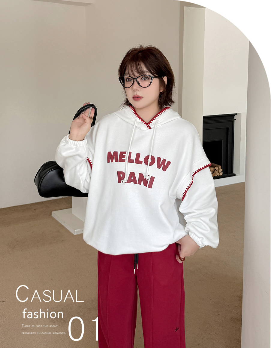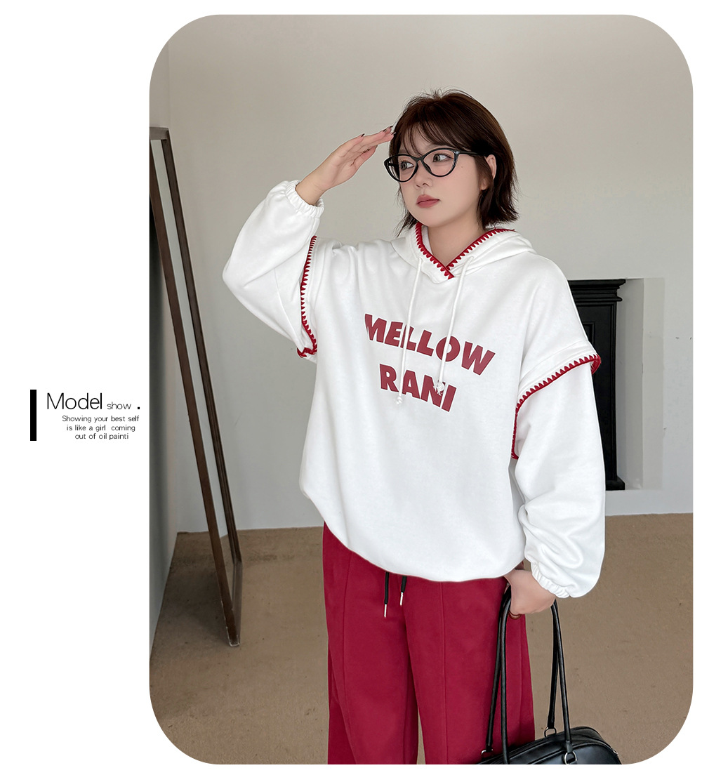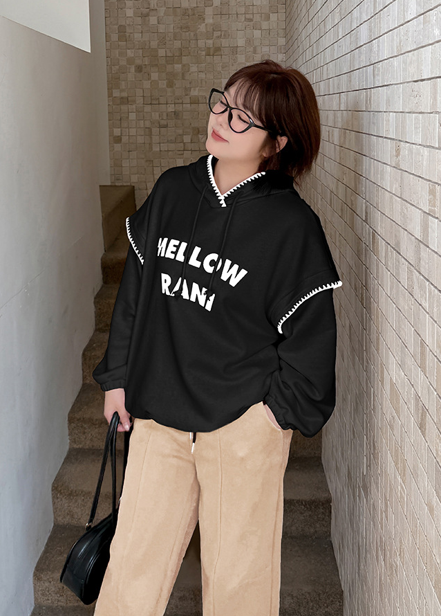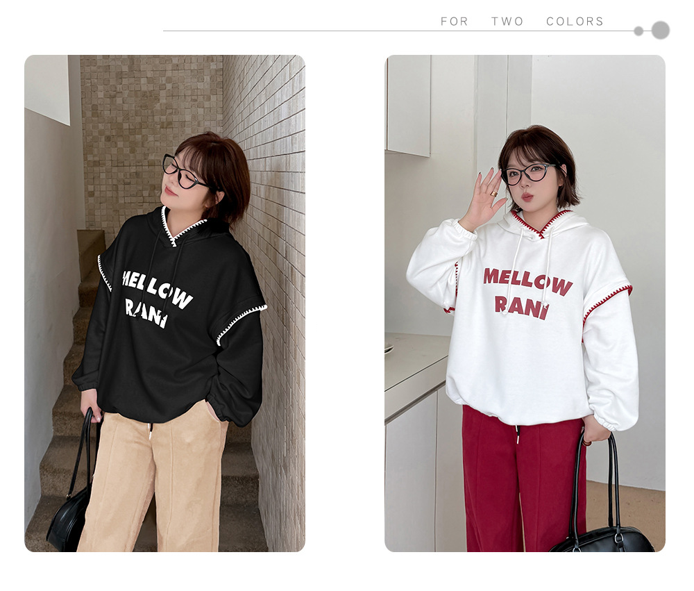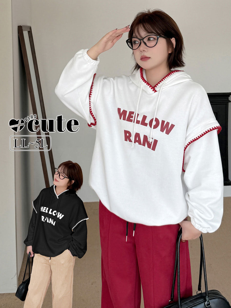 大きいサイズ レディース フード付きコントラストステッチスウェットシャツパーカー LL 3L 4L 5L