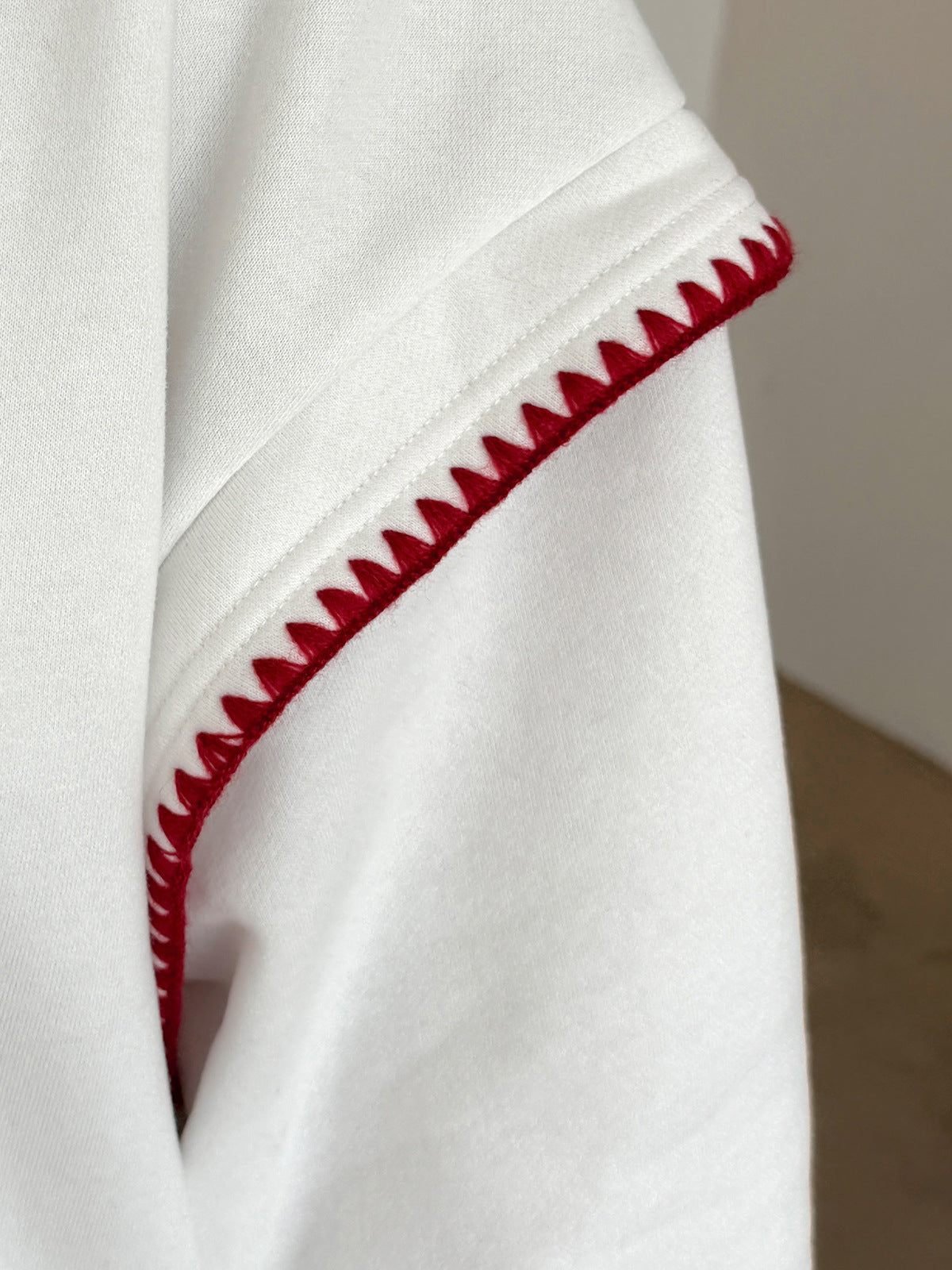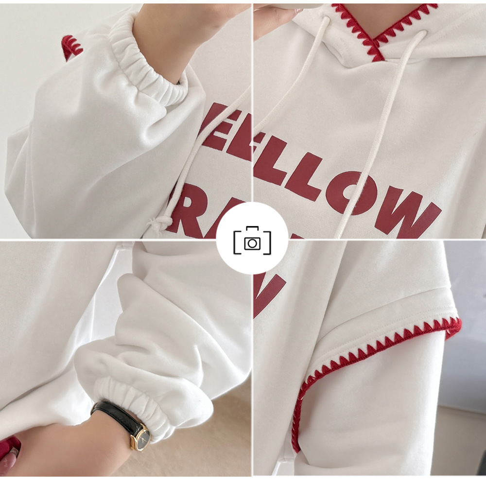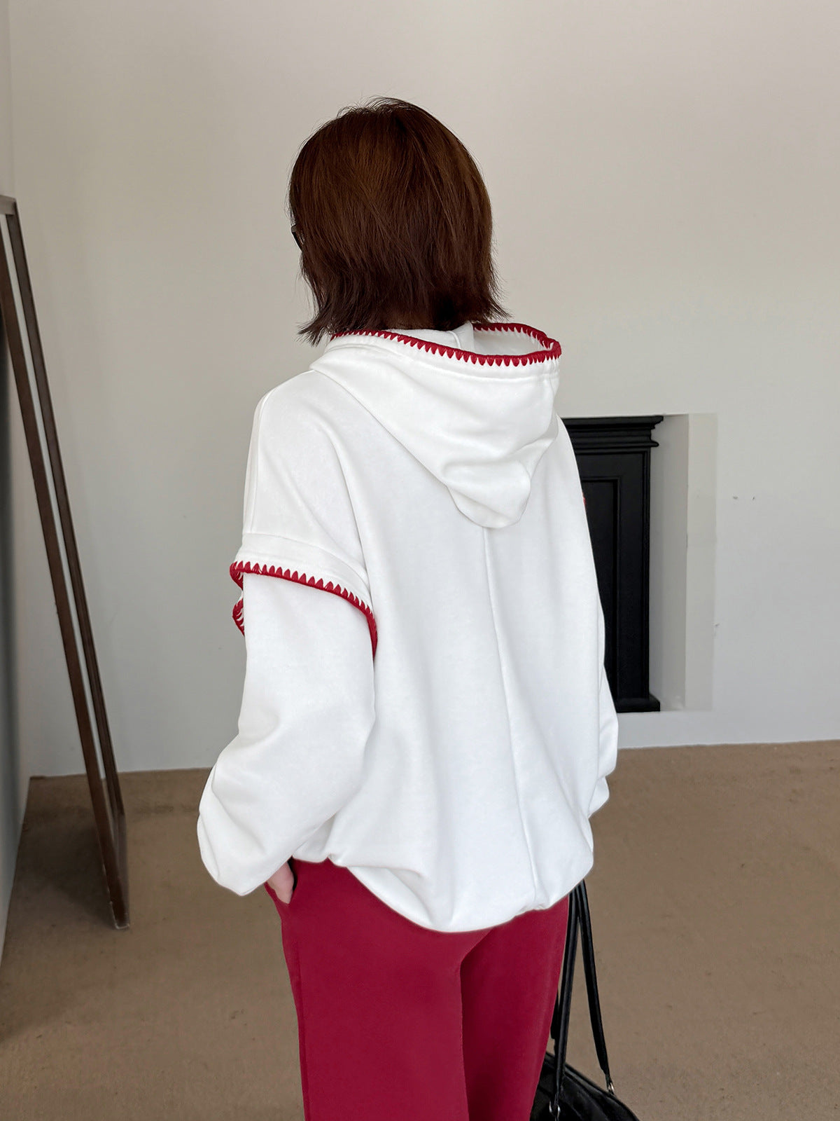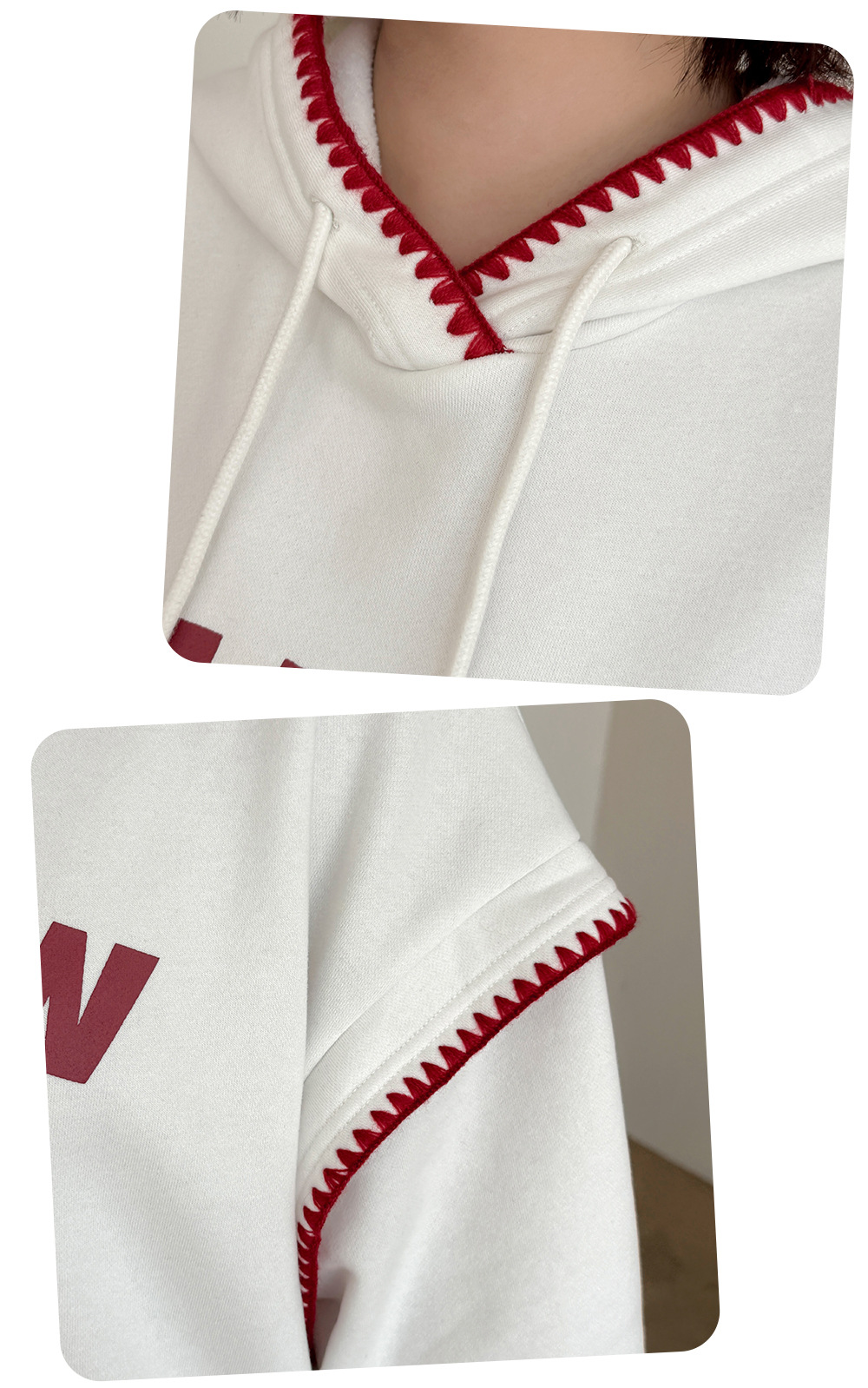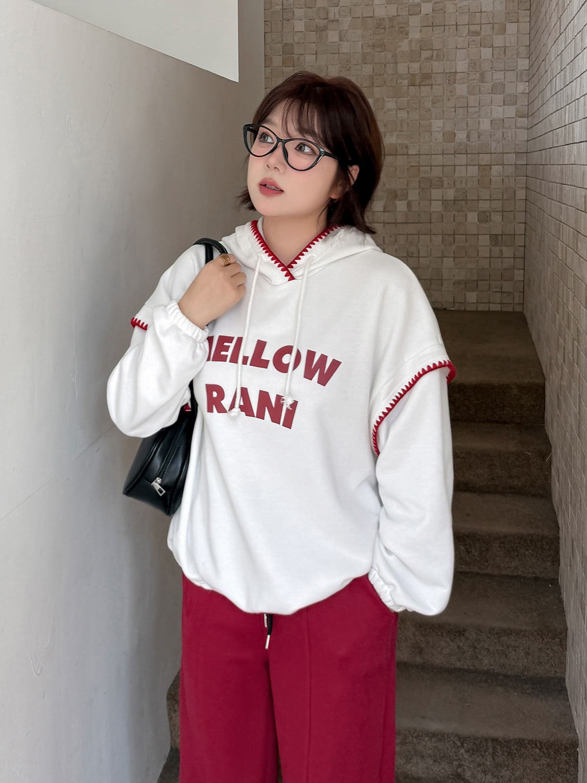 フード付きスウェットシャツは、ふわふわとした柔らかな肌触りの大きなテリー起毛素材で作られており、季節の変わり目にぴったりのアイテムです。フードの縁と肩のラインには、コントラストカラーのステッチが特徴的なデザインです。フロントにロゴプリントが施され、袖口は伸縮性があります。ドロップショルダーで、ゆったりと快適な着心地です。レトロなスポーツスタイルの雰囲気を持ち、合わせやすいカジュアルなトップスアイテムです。