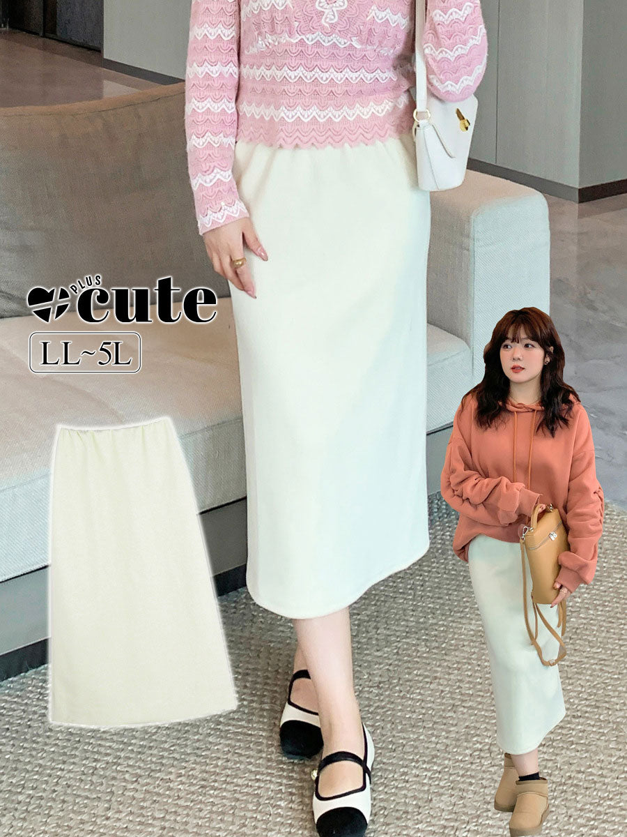 大きいサイズ レディース ストレートチューブミルキーホワイトロングスカート LL 3L 4L 5L