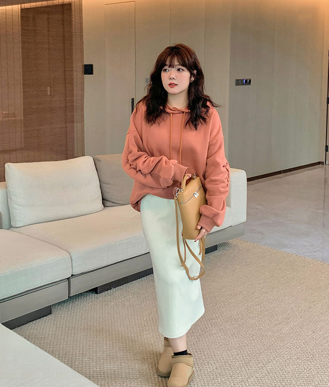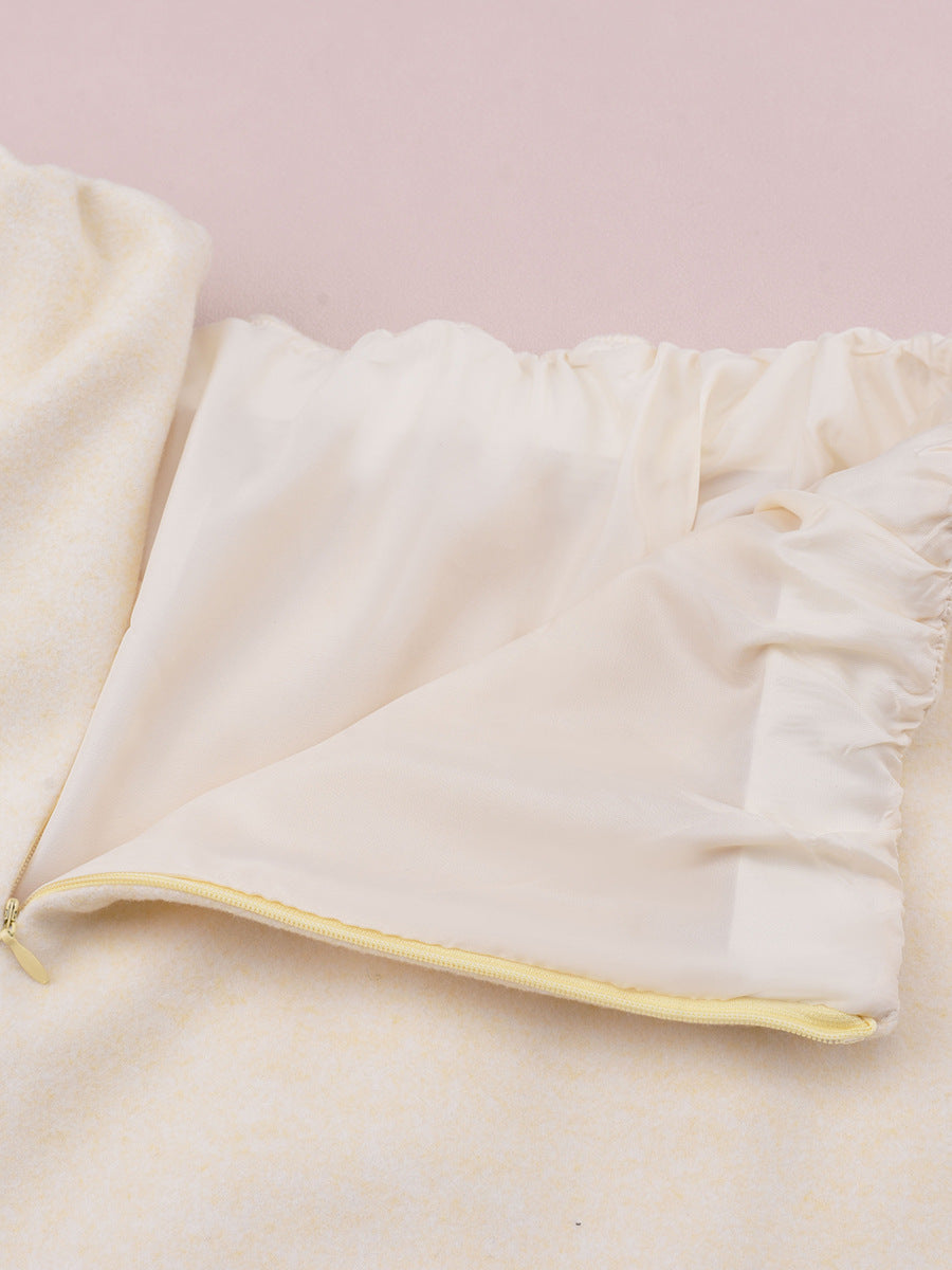 シンプルで上品なストレートチューブデザインのウール風スカート。体型を美しく見せてくれます。ウエストはゴム仕様で、後ろには隠しファスナーが付いているので着脱も楽々。裾にはスリットが入っているので歩きやすく快適です。繊細で柔らかなウール風素材は暖かく、肌にも優しい着心地です。カラーは温かみのあるミルキーホワイトで、いろいろなアイテムに合わせやすいです!