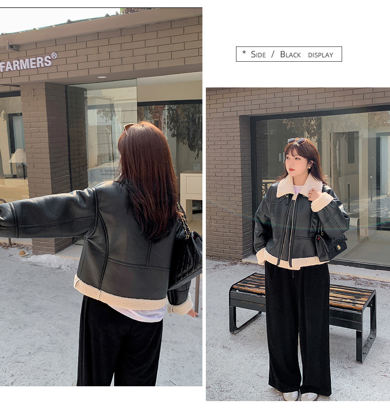 大きいサイズ レディース フリースラペルクラシックPUレザーライダースジャケット LL 3L 4L 5L
