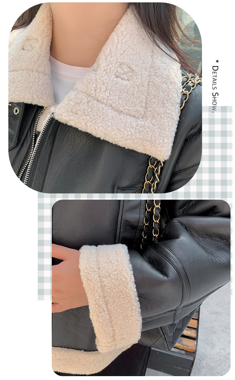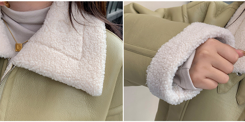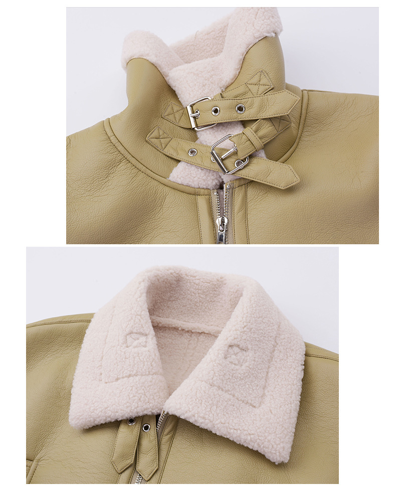 上質な光沢のあるPU複合ポーラーフリースを使用した、ゆったりとしたフィット感のライダースジャケットです。裏地は暖かく柔らかな肌触りで、表地は質感のあるPU生地を使用しています。職人の手仕事による丁寧な仕上がりです。クラシックなスタイルで、体型を美しく見せてくれるスタイルです。ラペルカラーのネックラインにはレザーとメタルの留め具が施され、襟を立て着用できます。サイドにはポケット付き、袖口と裾にはフリース生地が施されています。フロントセンターにはメタルジッパーが付いています。ゆったりとしたドロップショルダーのフィット感は暖かくスタイリッシュで、どんな体型にもマッチします。本物のファーフリージャケットをぜひお試しください!
