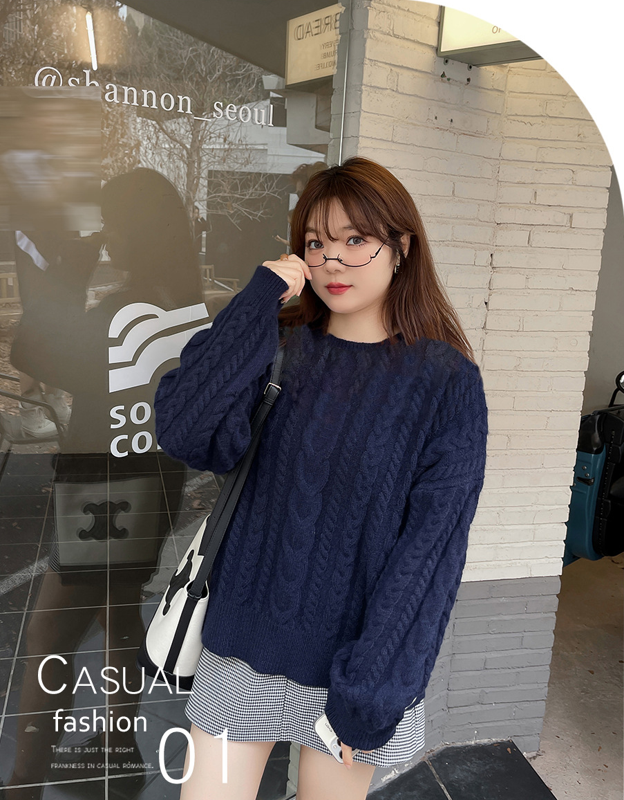 ベーシックなカレッジスタイルのセーターは、柔らかくキュートなスクールガールスタイルです。ゆったりとしたフィット感、贅沢な手編みの暖かさを醸し出した素材で作られています。ベルベットのような柔らかい手触りで、全身ケーブル編みを採用し、レイヤー感のある質感で伸縮性も高く、着脱もスムーズにできます。シンプルなラウンドネック、インディゴとミルクコーヒー、2つの安定したアースカラーのデザインです。リラックスな着用感、暖かくて、美しいカラーのセーターをぜひお試しください。
