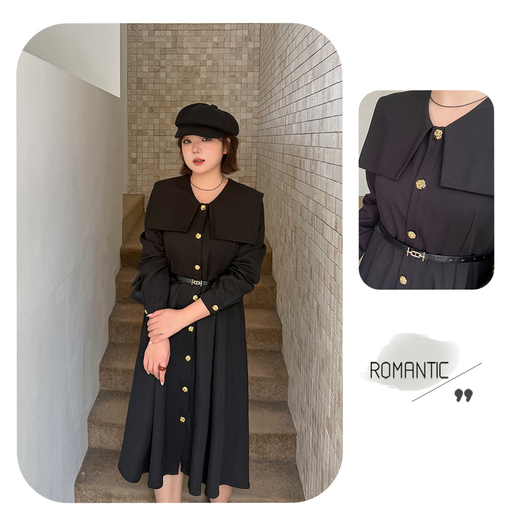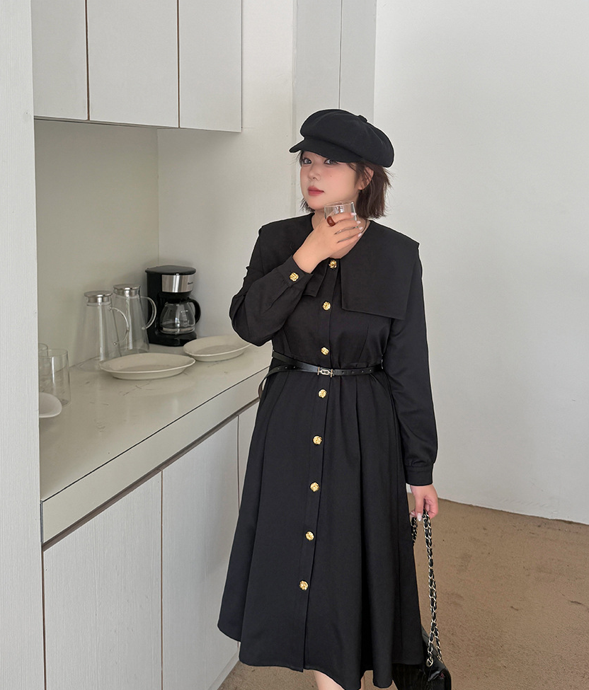 大きいサイズ レディース ビックラペルボタンダウンブラックワンピース(ベルト別売) LL 3L 4L 5L