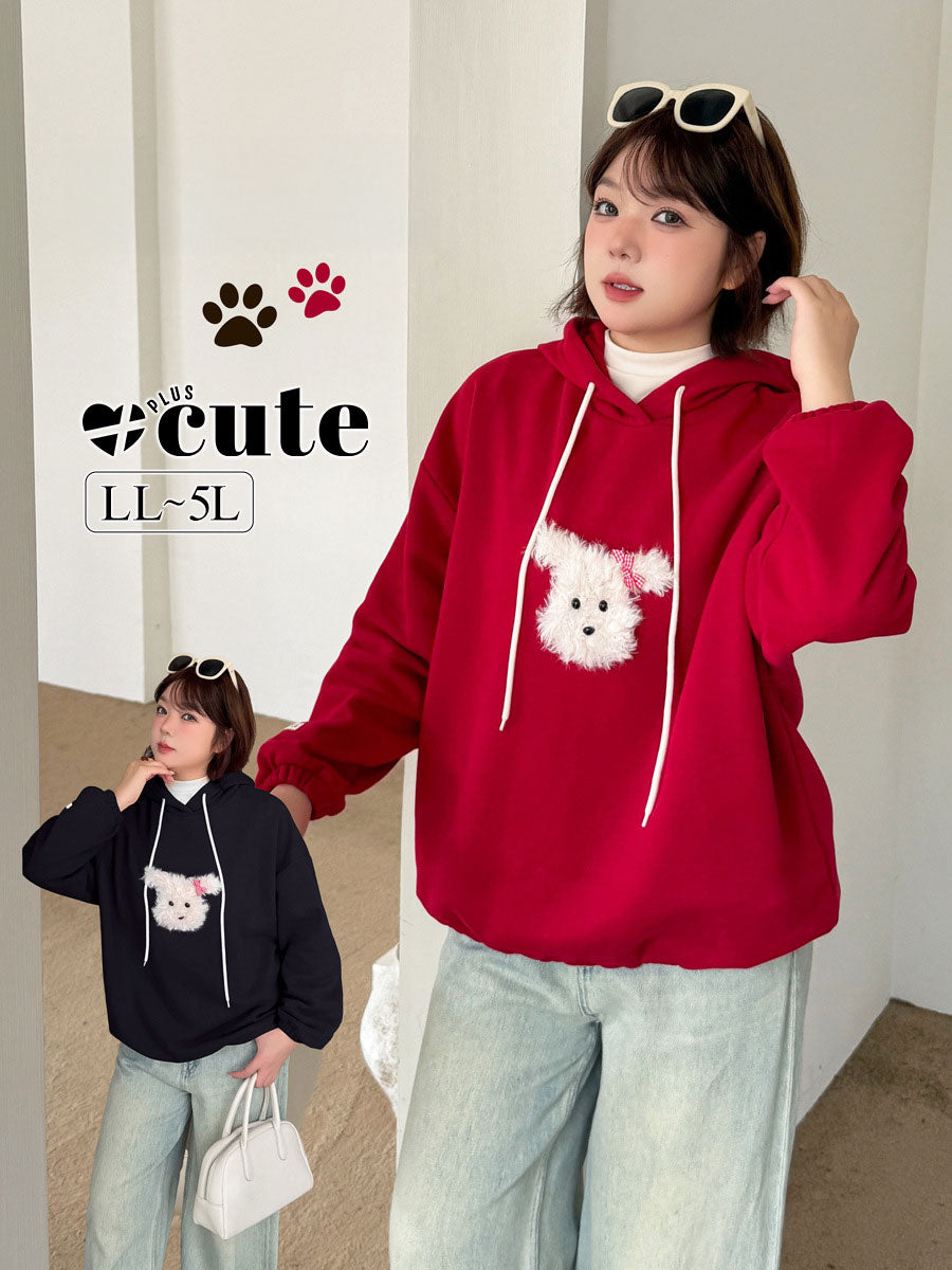 大きいサイズ レディース ふわふわ小犬厚手ニットスウェットパーカー LL 3L 4L 5L