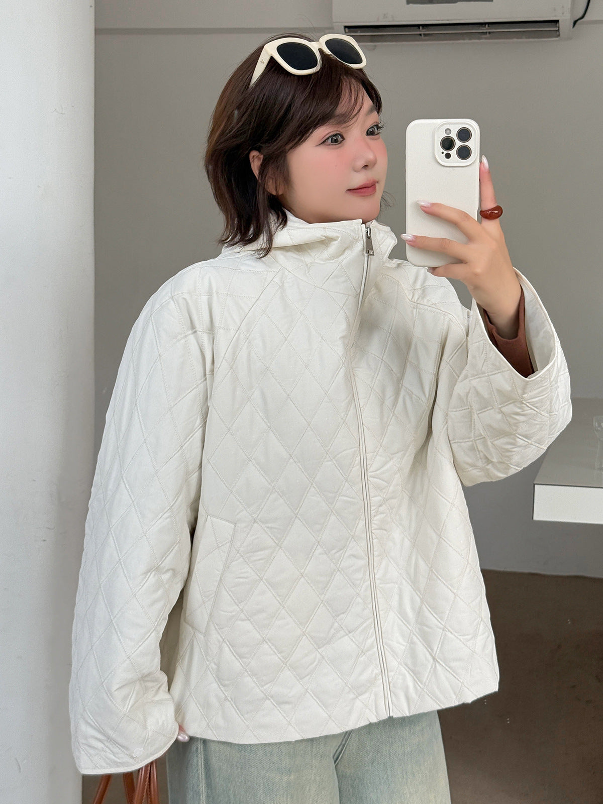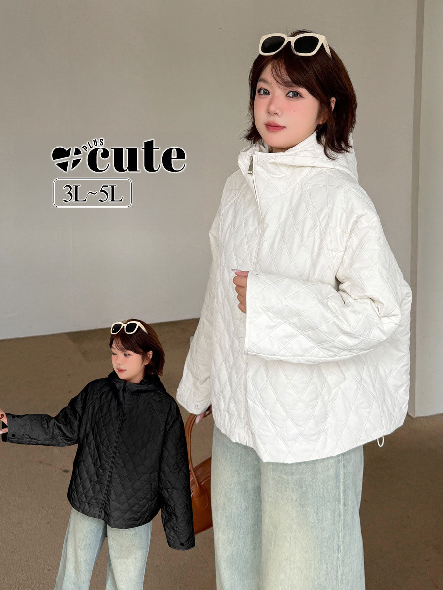 大きいサイズ レディース 軽量フード付きラメクロスステッチキルティングジャケット 3L 4L 5L