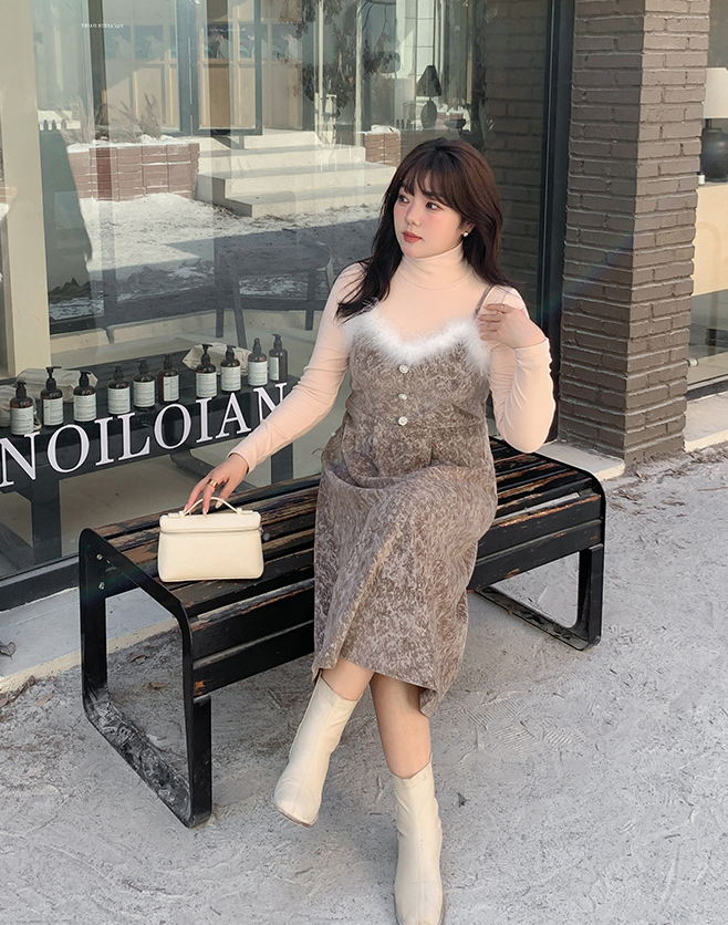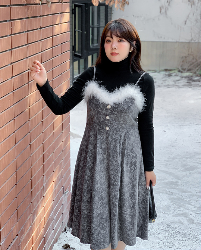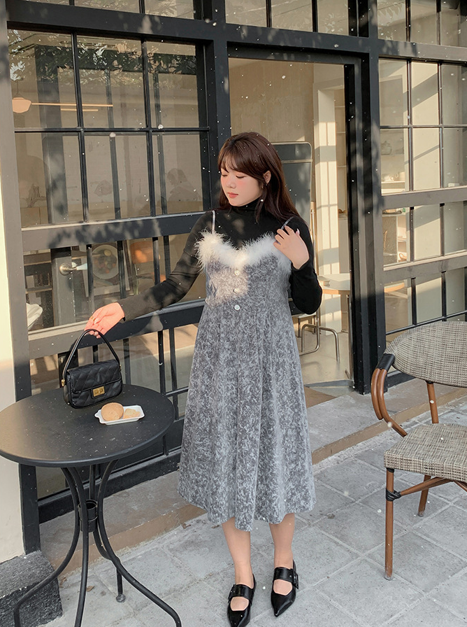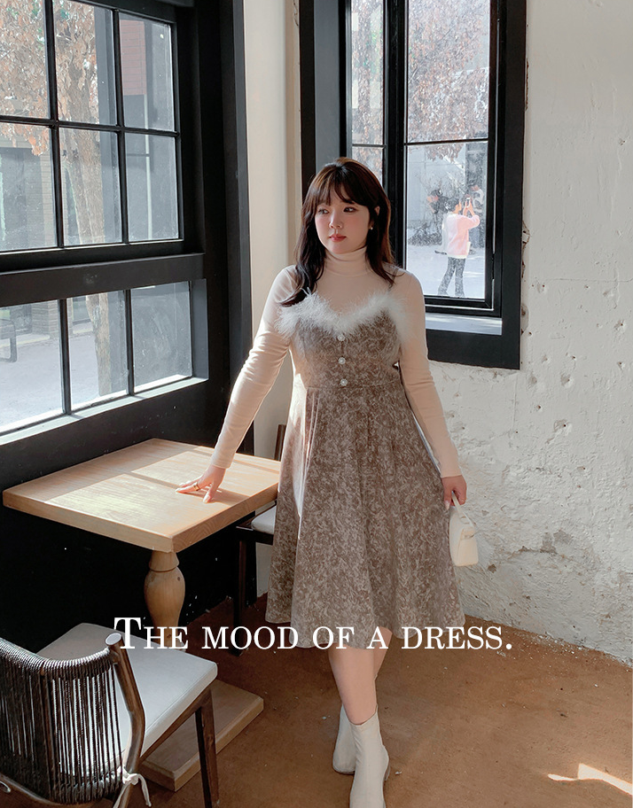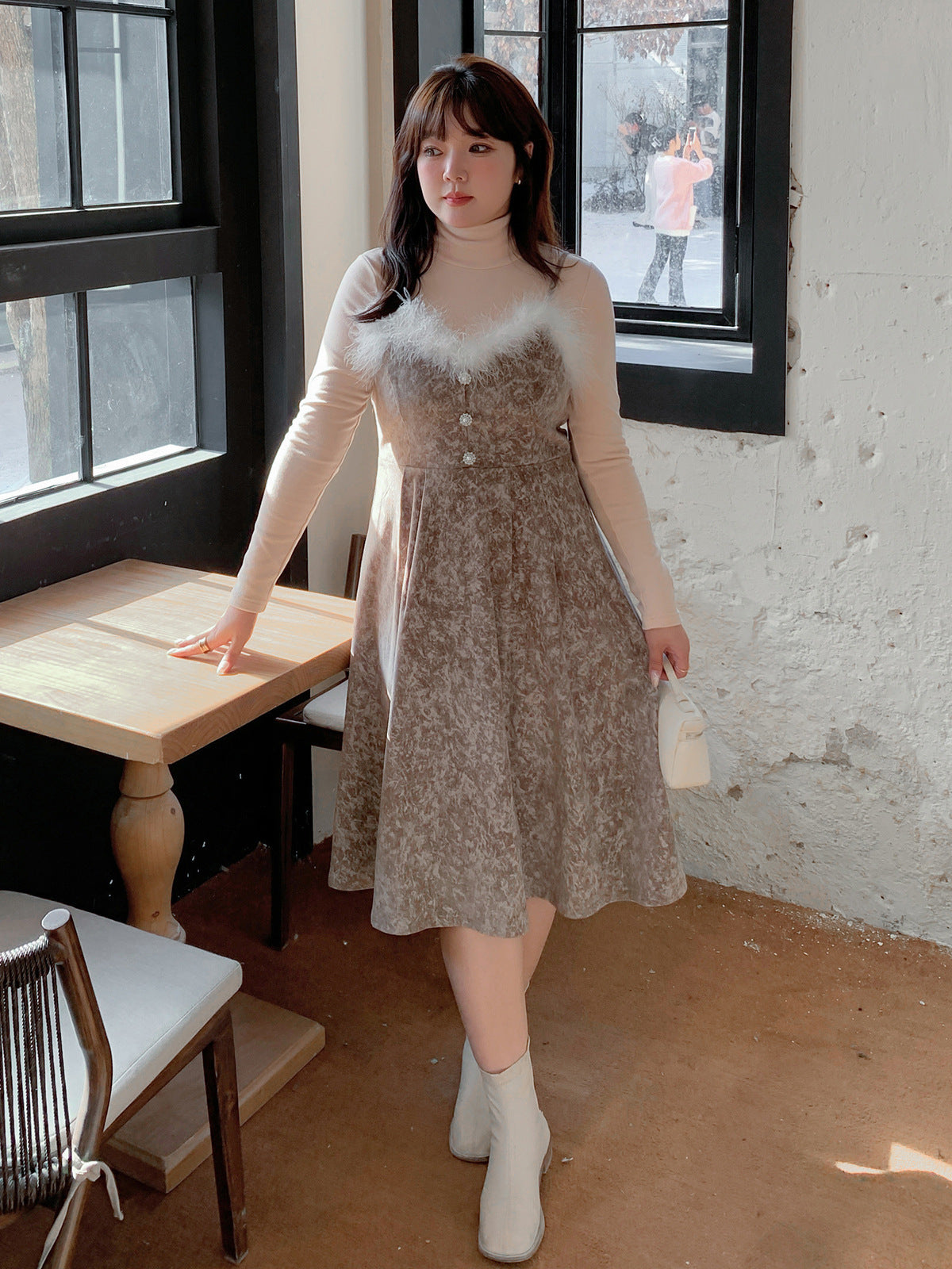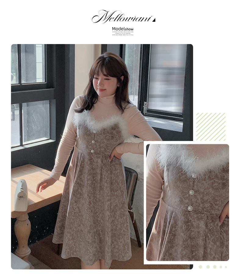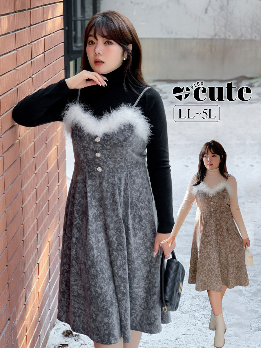 大きいサイズ レディース ファーベルベットスリップワンピースヴィンテージプリント LL 3L 4L 5L