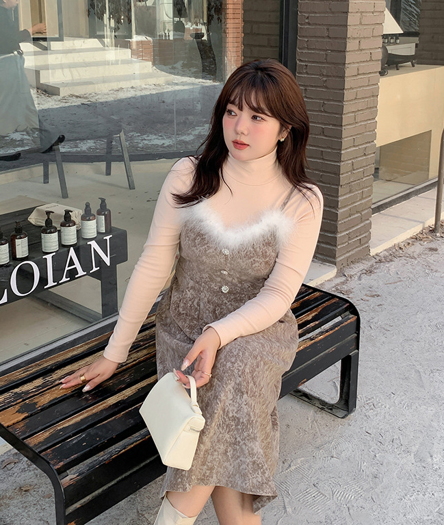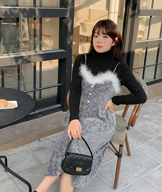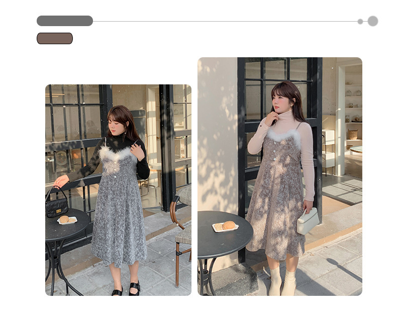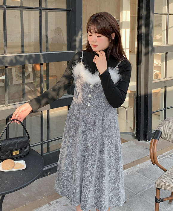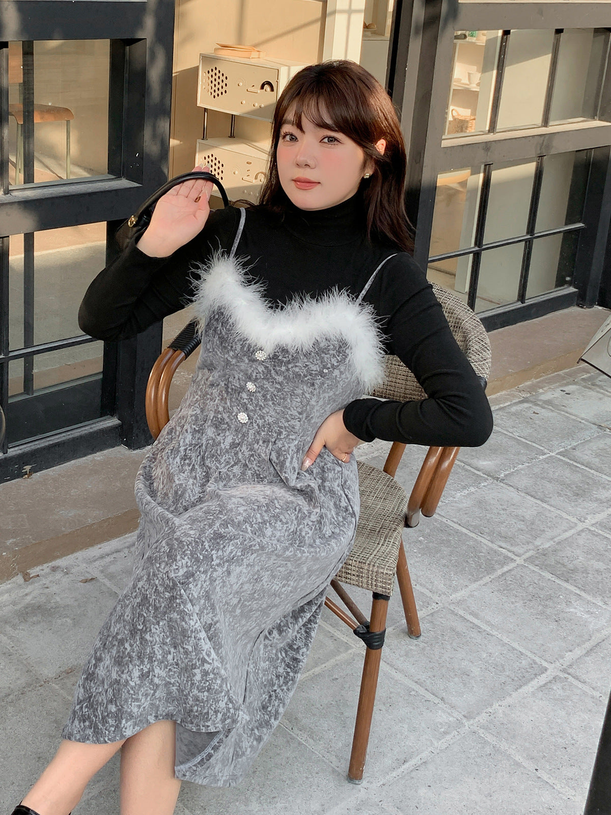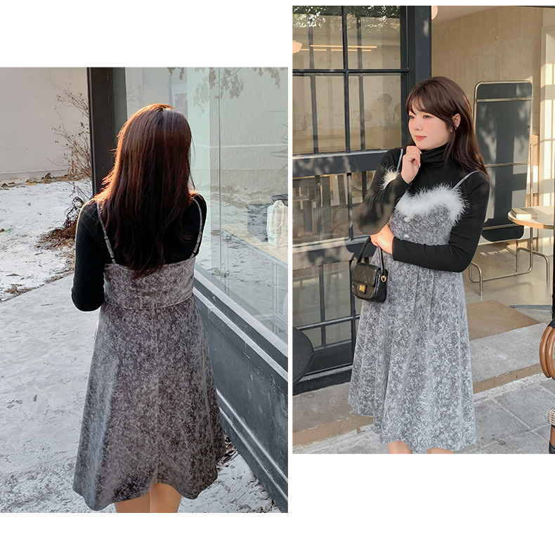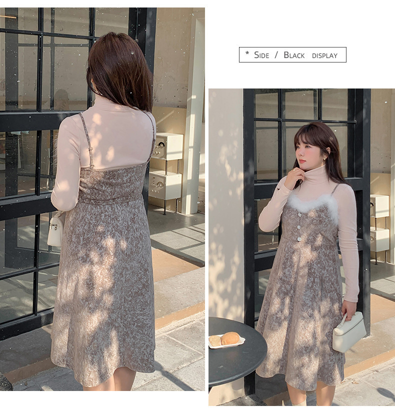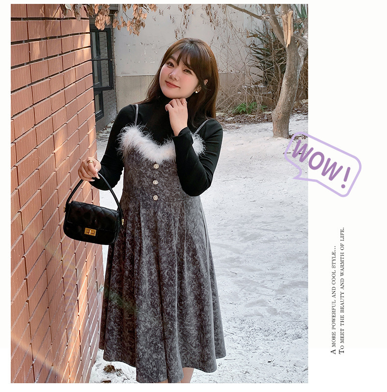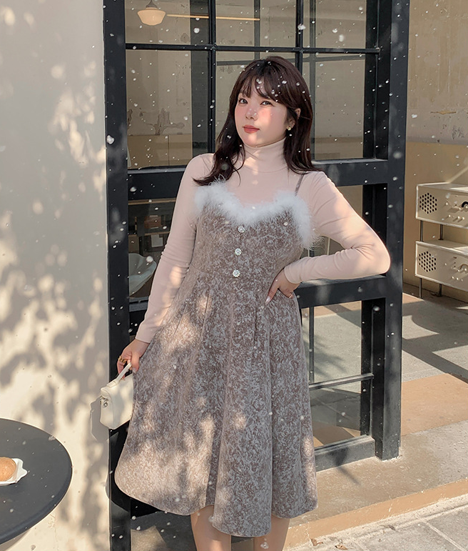 大きいサイズ レディース ファーベルベットスリップワンピースヴィンテージプリント LL 3L 4L 5L
