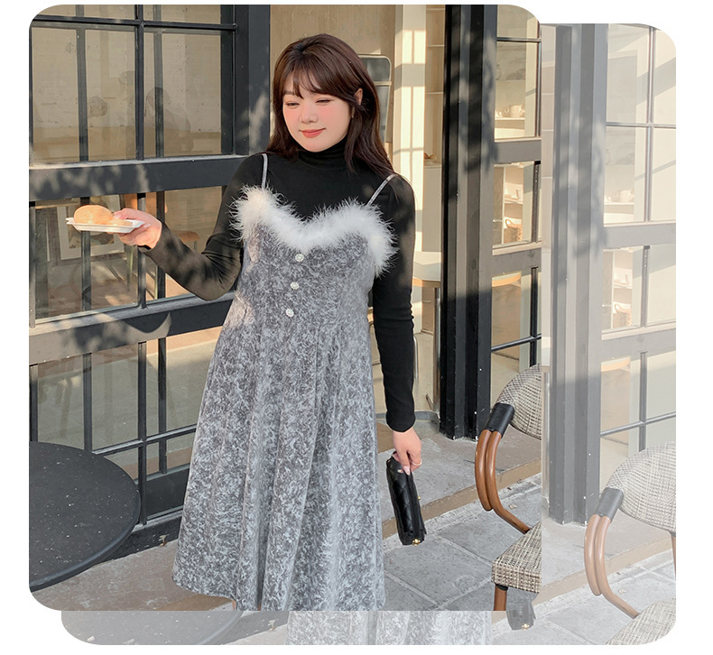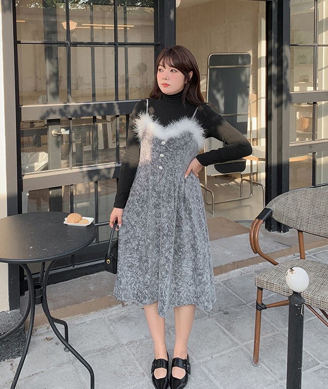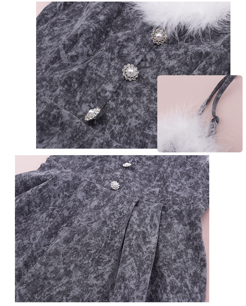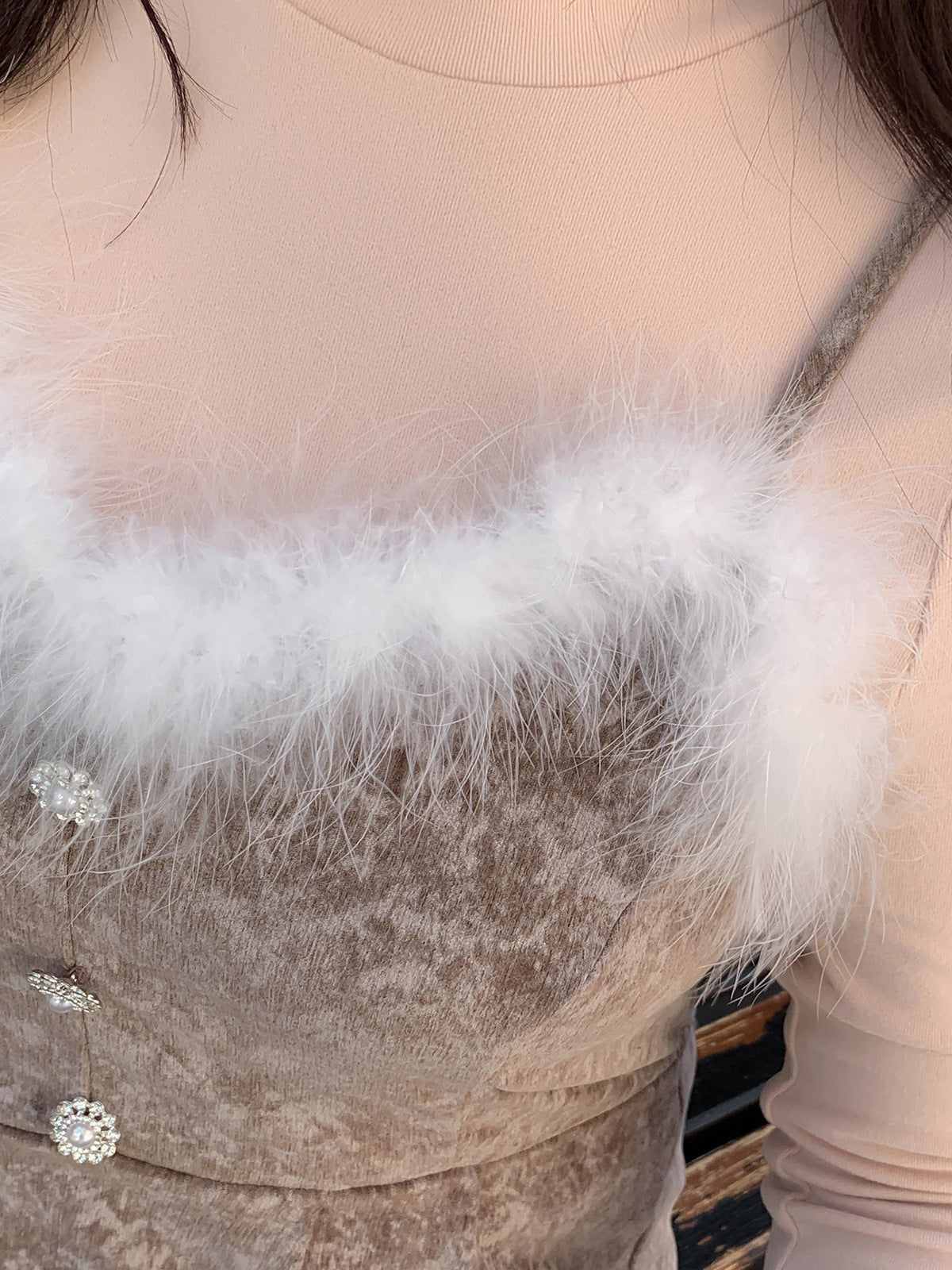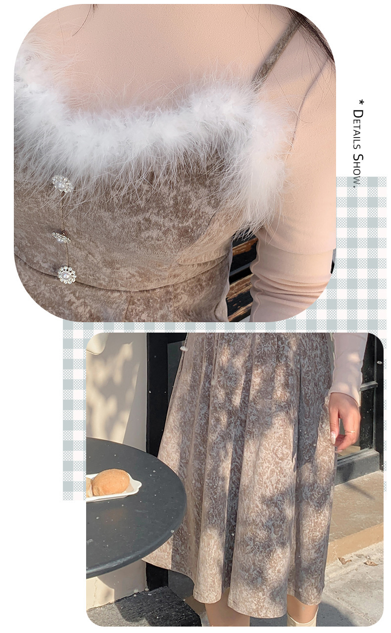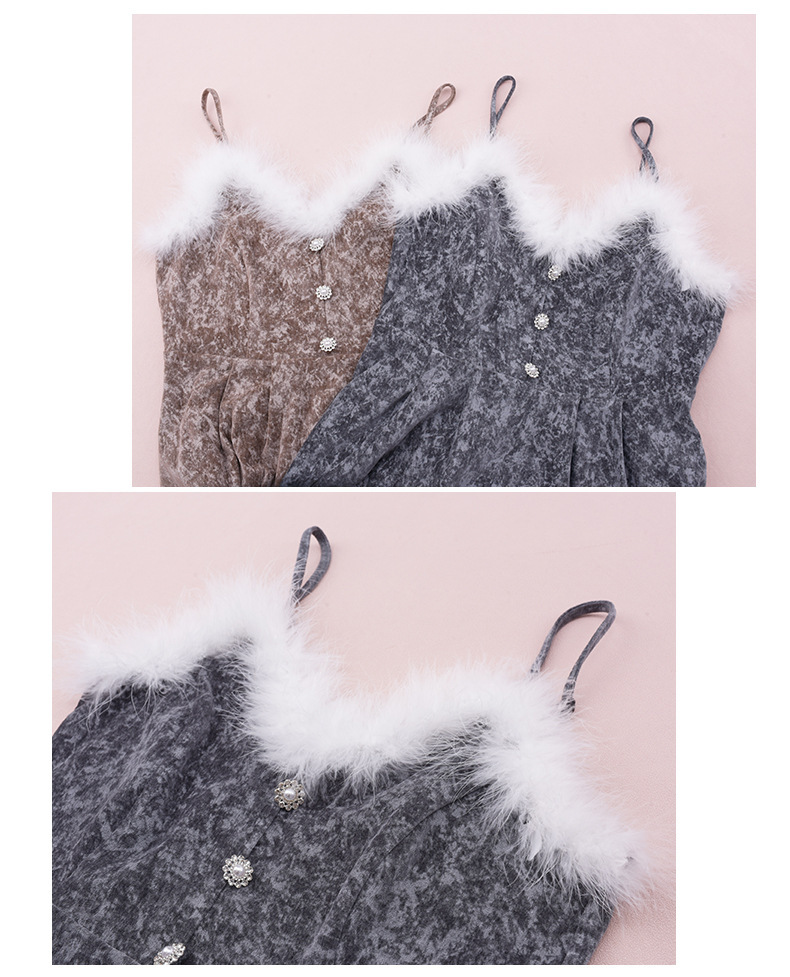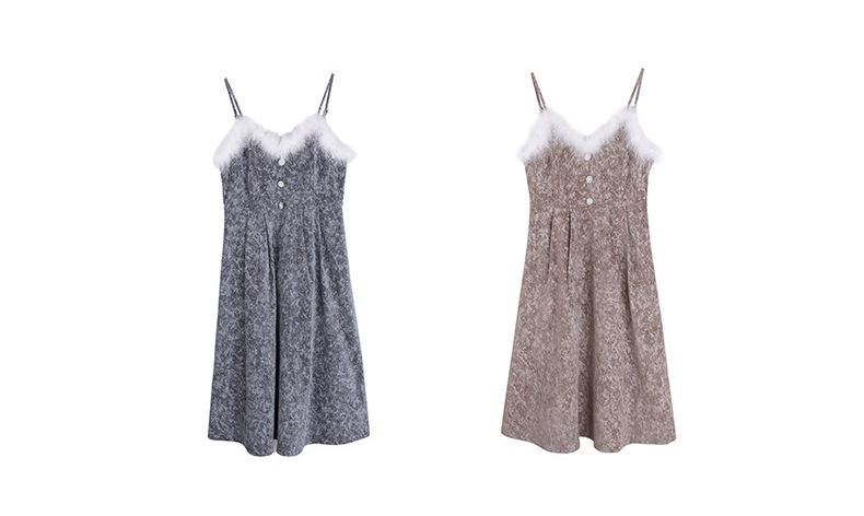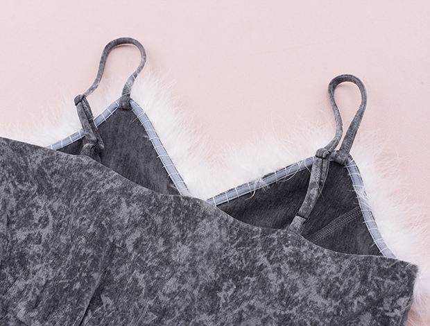 こちらのスリップワンピースは、細部までとても丁寧に仕上げられています。柔らかく上質なスノーフレークベルベット生地にヴィンテージプリントの風合いを添え、まだら模様でどこか抜け感のある、アーティスティックな雰囲気を醸し出しています。フロントには本物のダチョウの羽根をあしらい、まるで雲に包まれているような軽やかで柔らかな着心地を演出しています。肩紐は調節可能で、後ろはウエストゴム仕様のフレアスカートが、優しく穏やかな雰囲気を醸し出し、レイヤードの美しさを際立たせています。