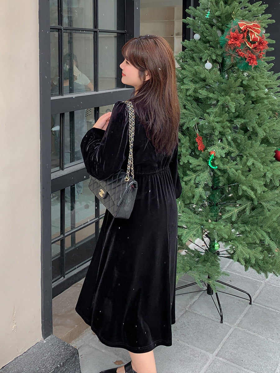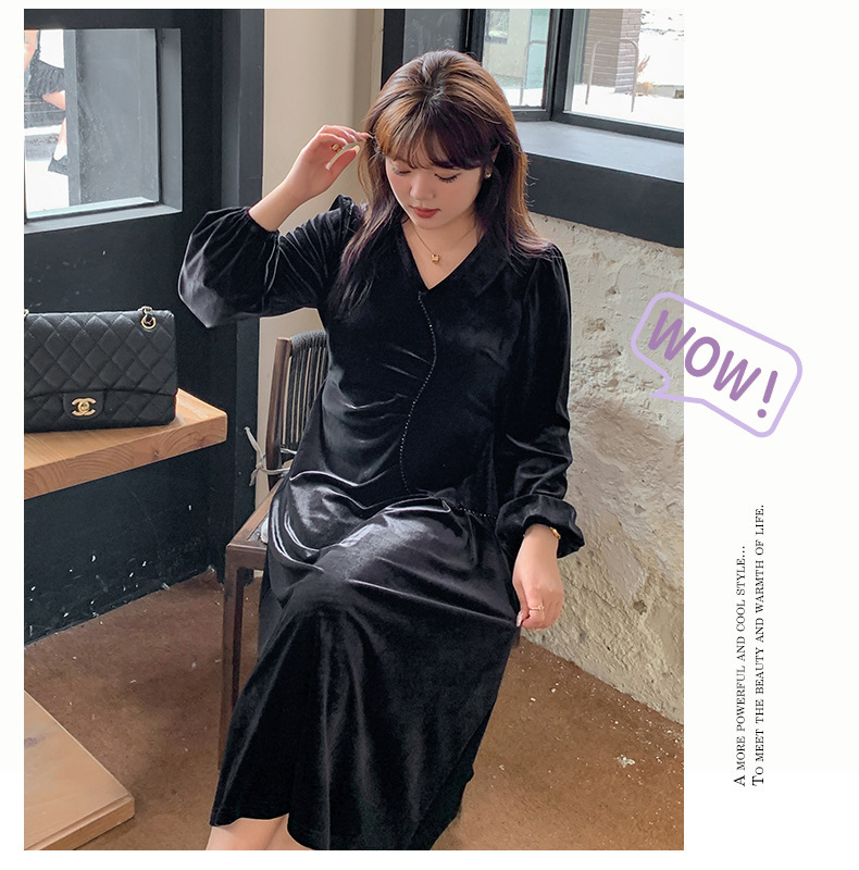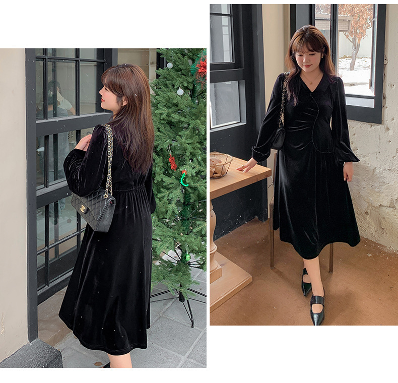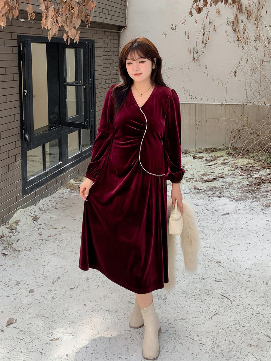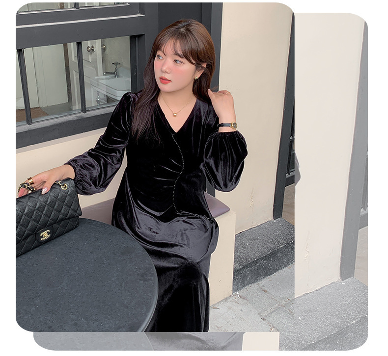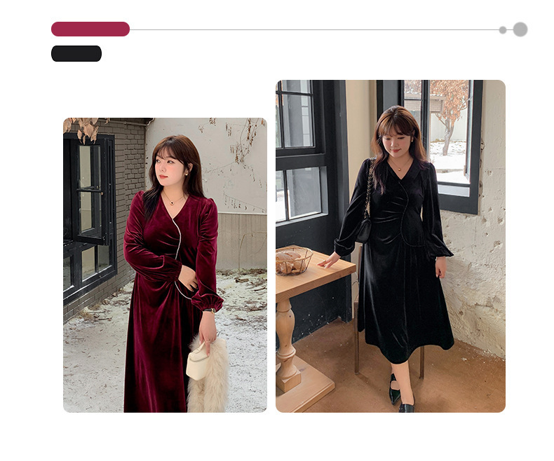大きいサイズ レディース Vネックラインストーン装飾エレガントベルベットワンピース LL 3L 4L 5L