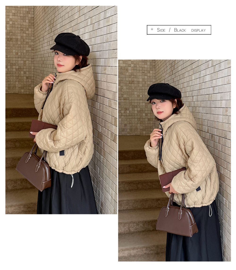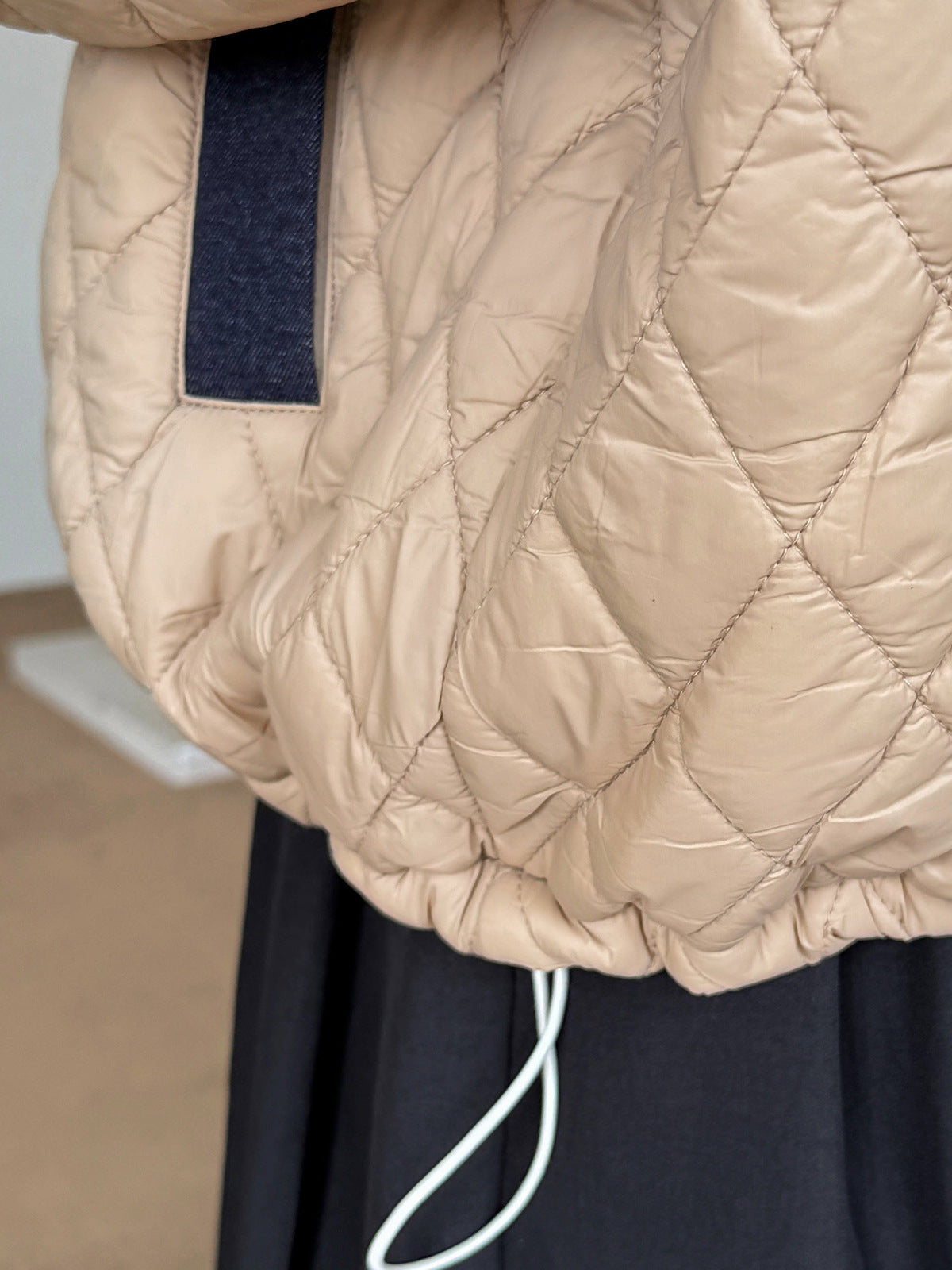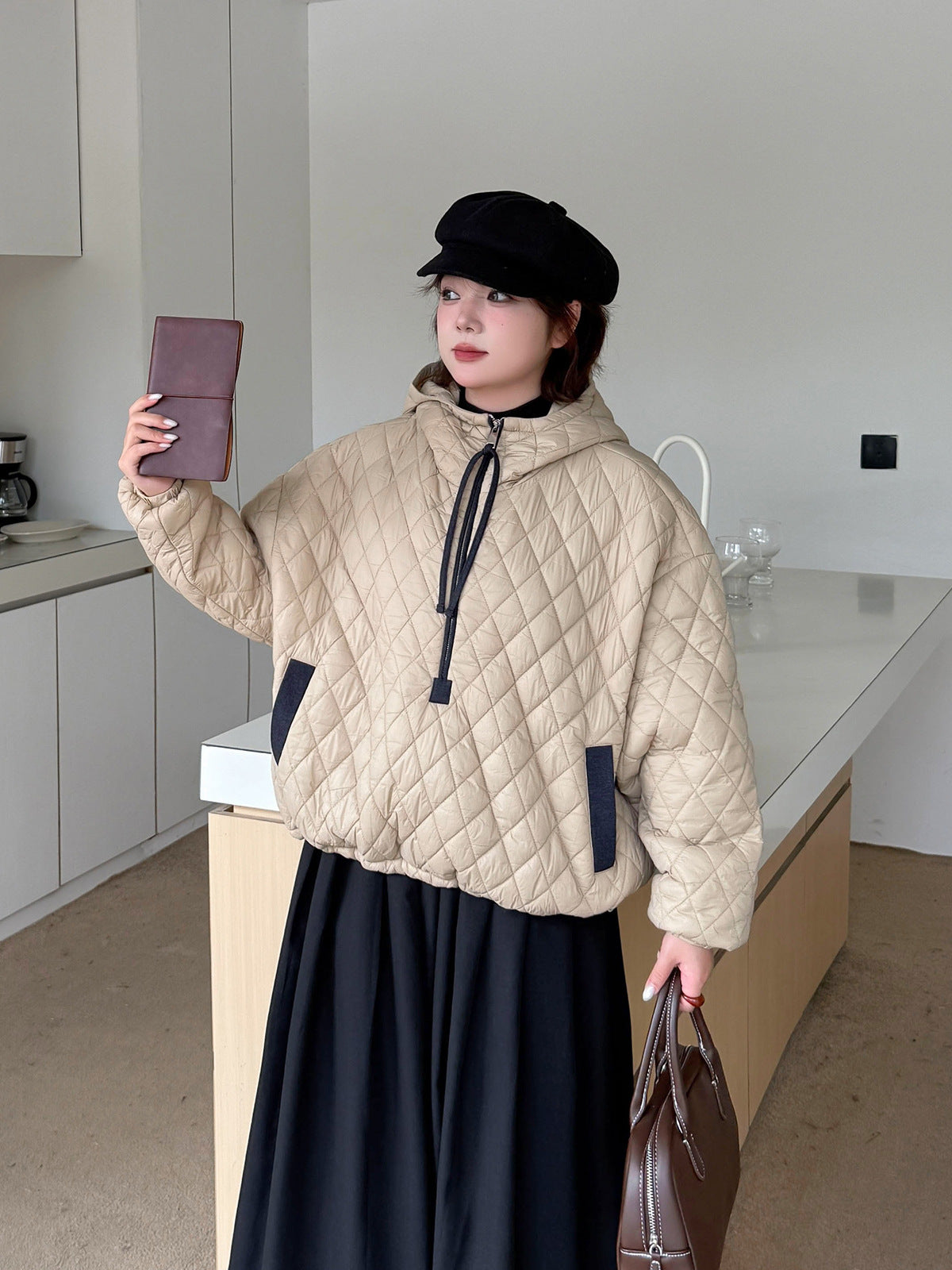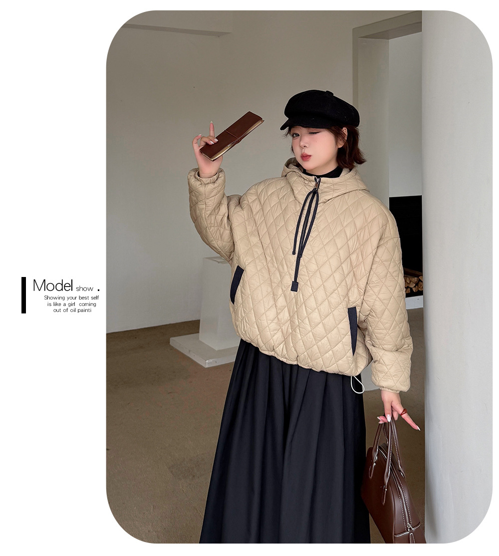 プルオーバースタイルのフード付きキルティングスウェットパーカーは、カジュアルなダウンジャケットとしても着用できます。織り込まれたキルティング生地は滑らかな肌触りで、軽くて暖かい着心地です。ネックラインにジッパーが付いたフード付きデザインで、フロントにポケットが2つ付いています。ゆったりとしたドロップショルダーデザインです。裾には伸縮性のあるドローストリングが付いており、裾周りを調節できます。インナーとしても単体でも着用可能で、軽やかでスタイリッシュな毎日を演出します。