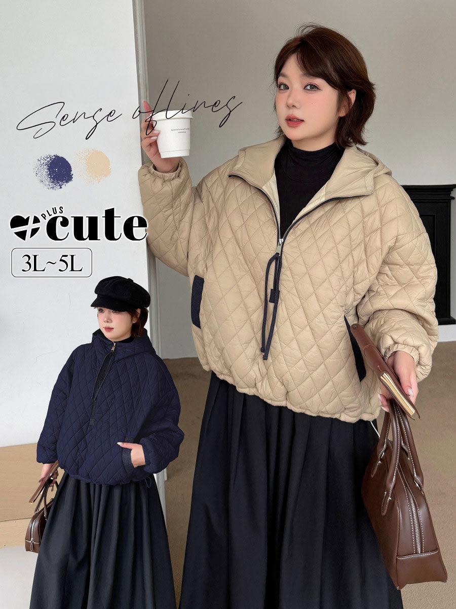 大きいサイズ レディース プルオーバーフード付きキルティングスウェットパーカー 3L 4L 5L