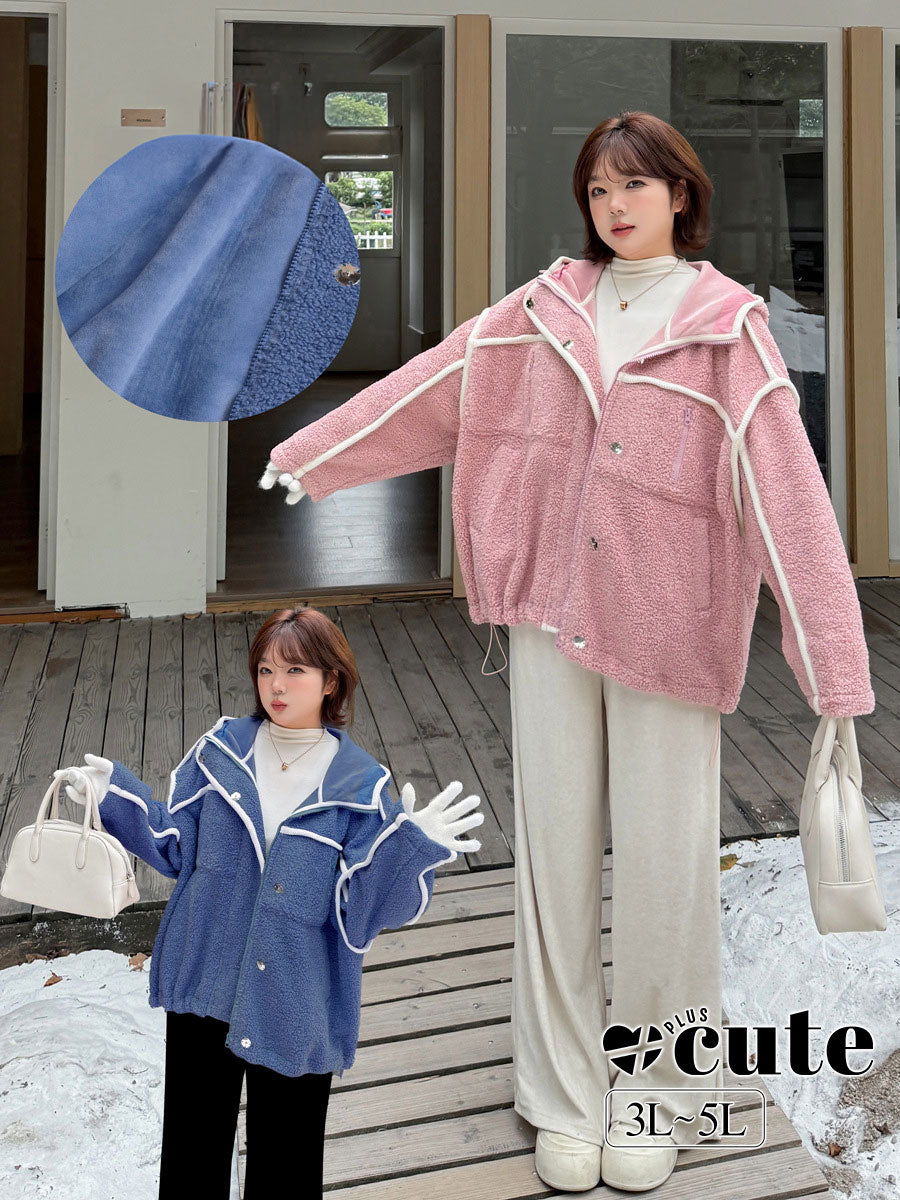 大きいサイズ レディース パイピングデザインボアフリースジャケット 3L 4L 5L