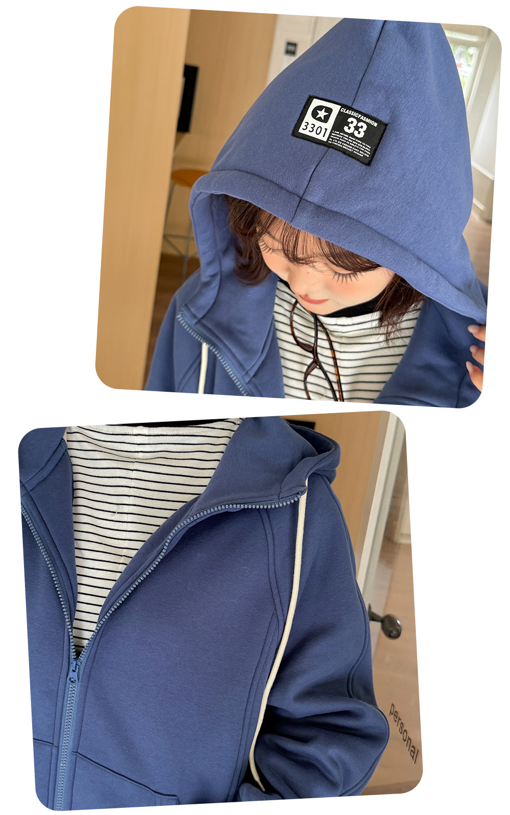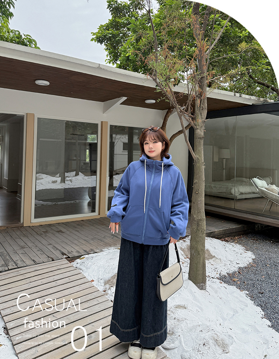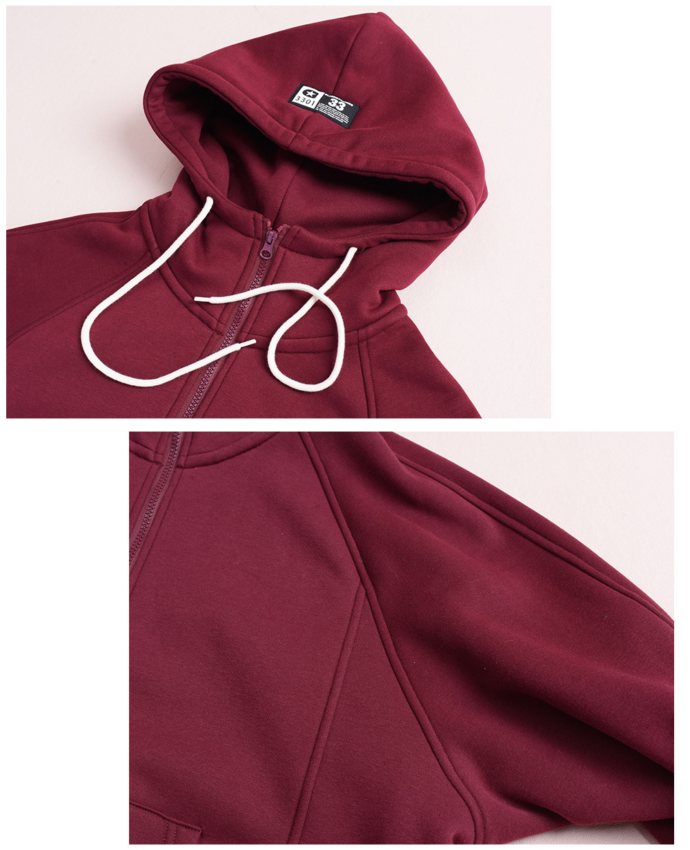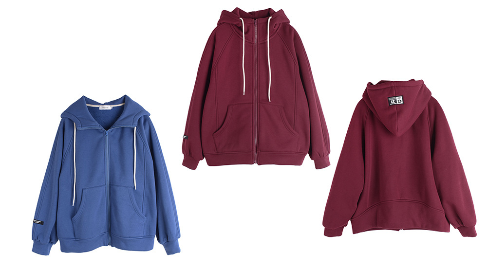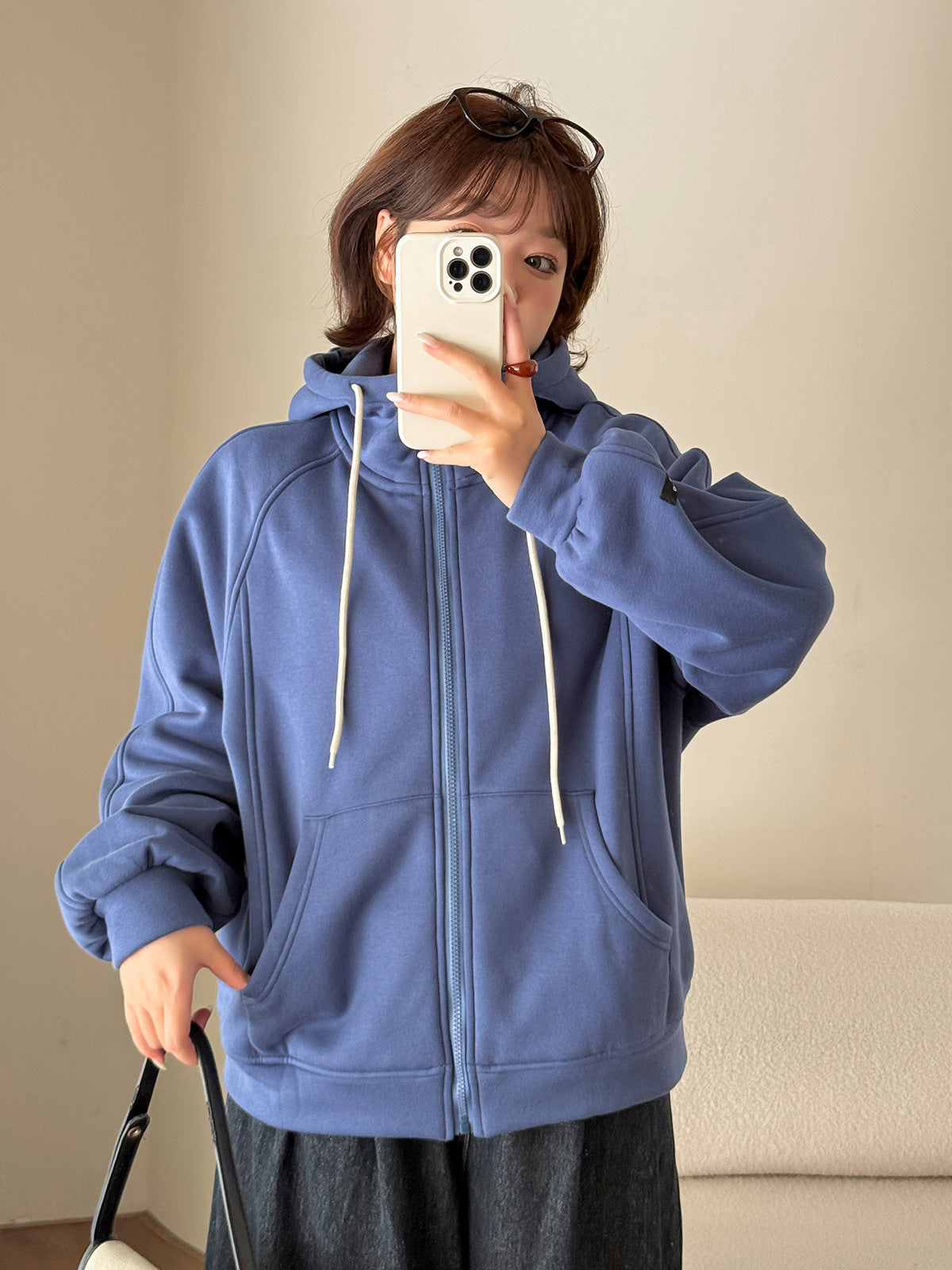 フード付きニットスウェットパーカーは、インナーとしてもアウターとしても着用可能な実用的なアイテムです。生地は厚手のフリース裏地が付いたニットコットンフリースです。ドローストリング付きのフード付きデザインです。シンプルでフードにタグが付いたデザインです。前面にジッパーと2つの大きなポケットが付いています。ゆったりとしたラグラン長袖で、後ろの裾は不規則なカーブを描くカットデザイン。ゆったりとした快適なフィット感、暖かさをキープします。冬に向けた実用的なアイテムです。