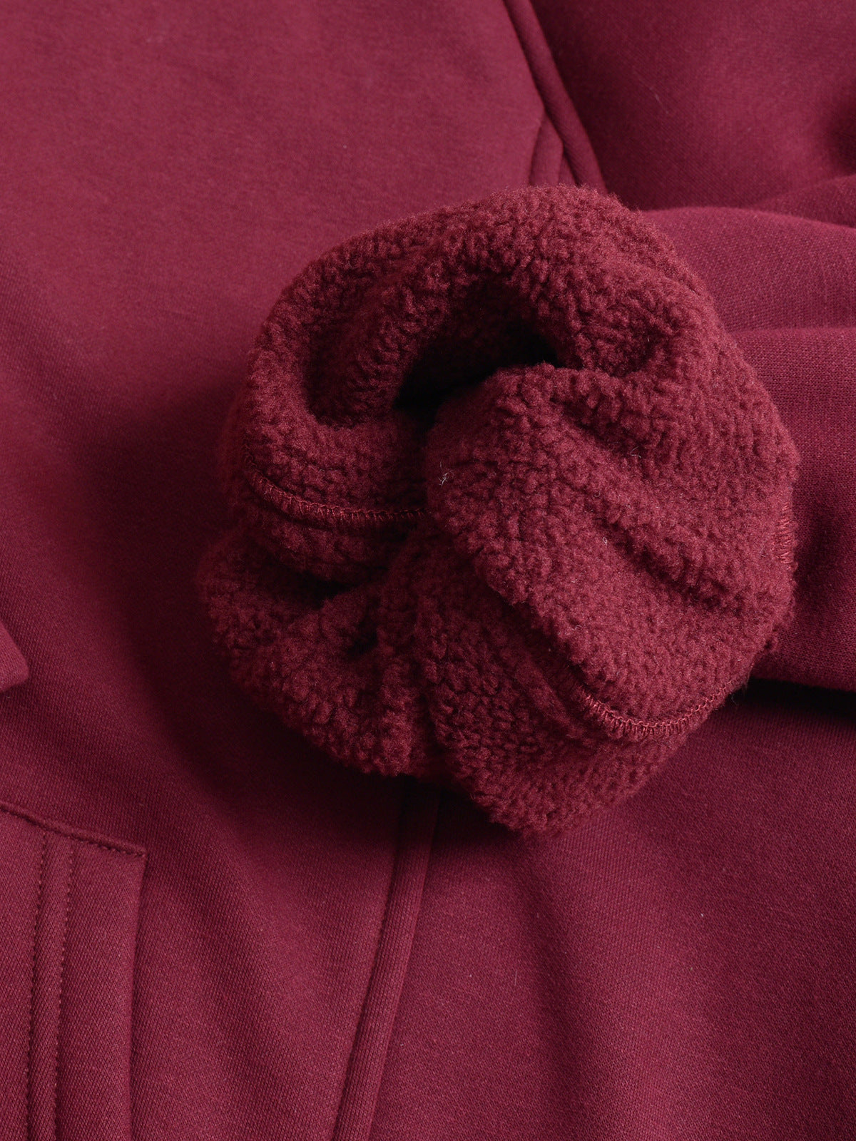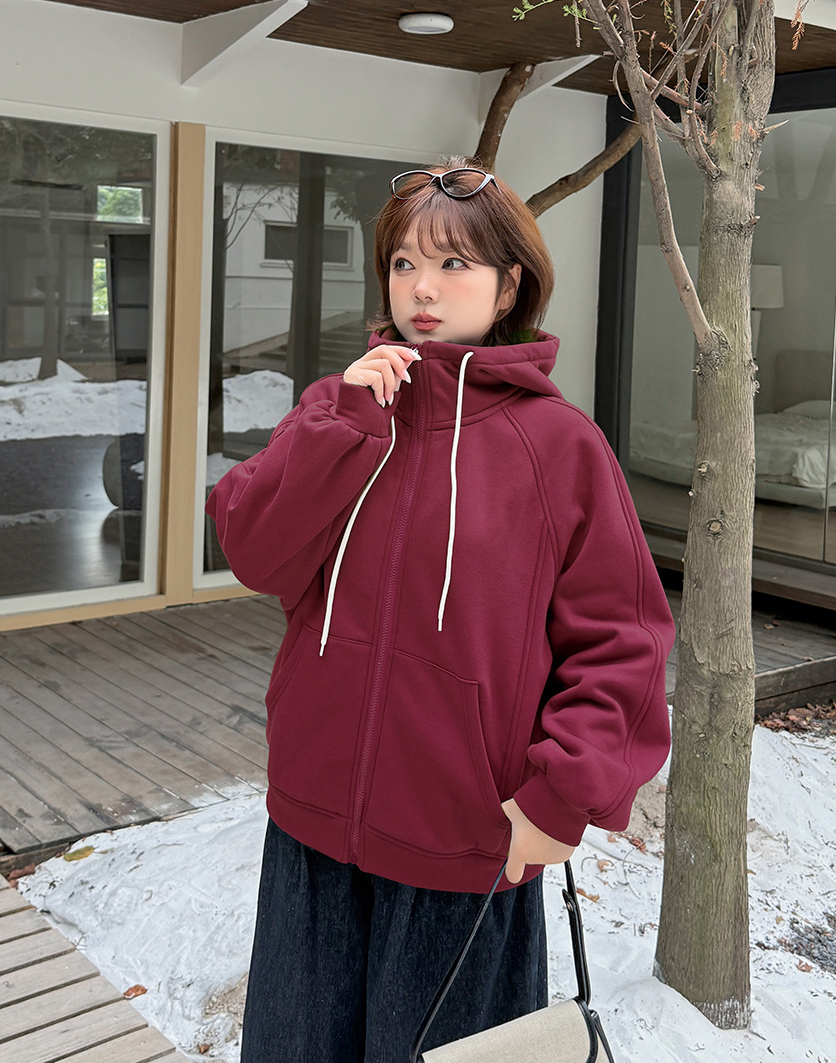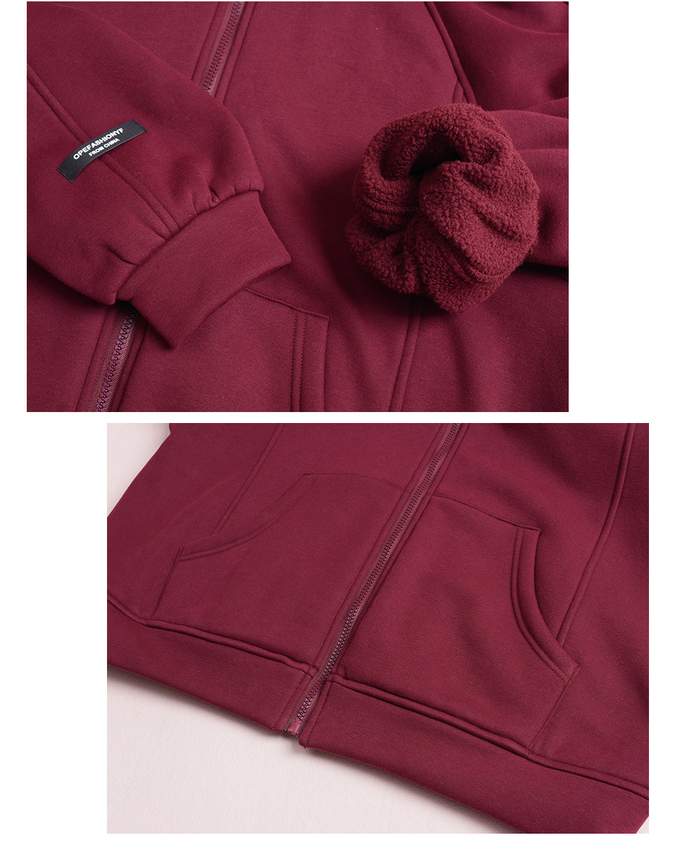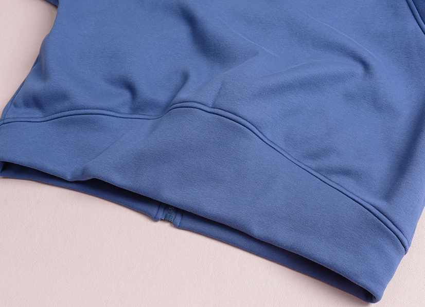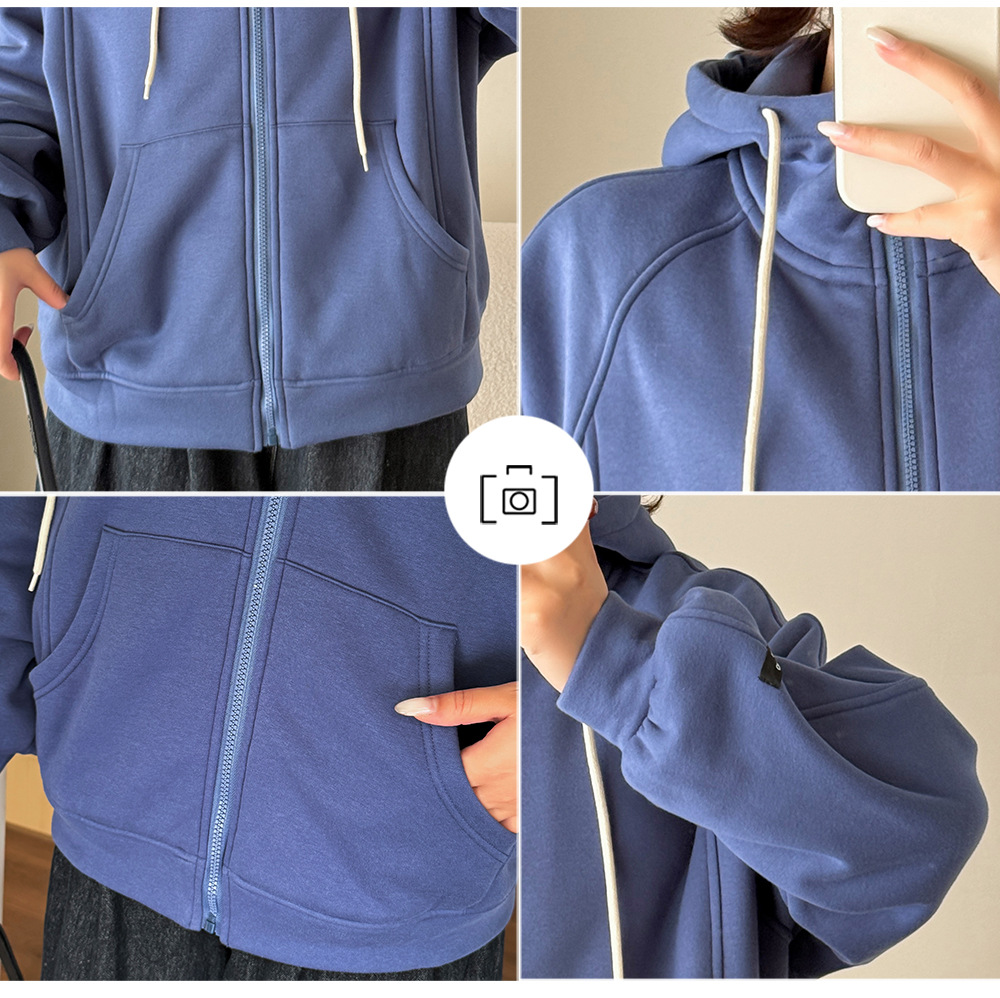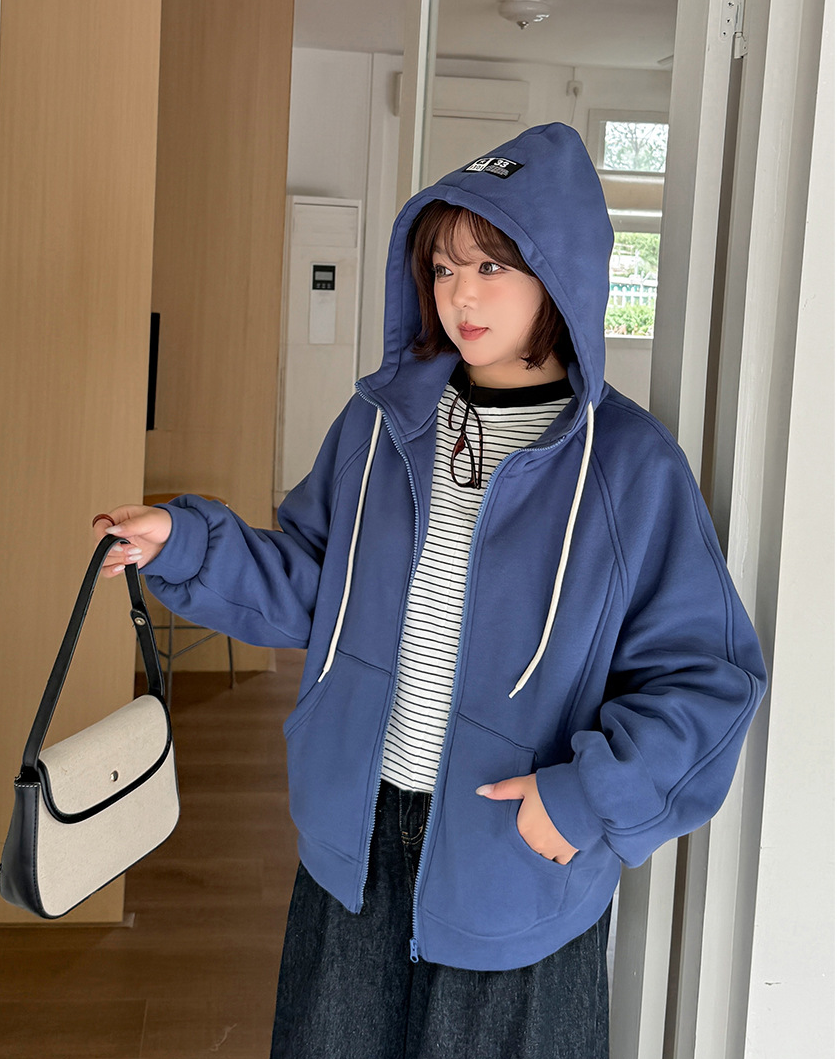 フード付きニットスウェットパーカーは、インナーとしてもアウターとしても着用可能な実用的なアイテムです。生地は厚手のフリース裏地が付いたニットコットンフリースです。ドローストリング付きのフード付きデザインです。シンプルでフードにタグが付いたデザインです。前面にジッパーと2つの大きなポケットが付いています。ゆったりとしたラグラン長袖で、後ろの裾は不規則なカーブを描くカットデザイン。ゆったりとした快適なフィット感、暖かさをキープします。冬に向けた実用的なアイテムです。