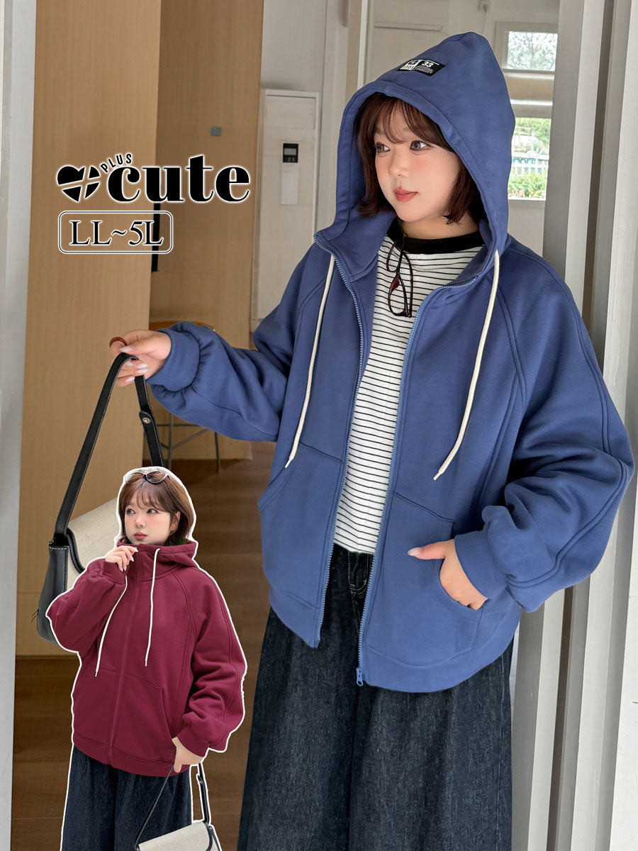 大きいサイズ レディース フードタグ付き裏地フリースニットスウェットパーカー LL 3L 4L 5L